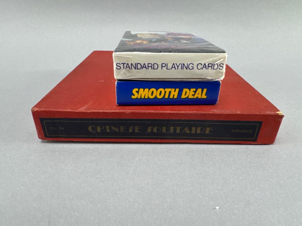 CONDITION: Game components appear in fair condition with signs of age and slight wear to box edges. Playing card decks are sealed in original packaging.