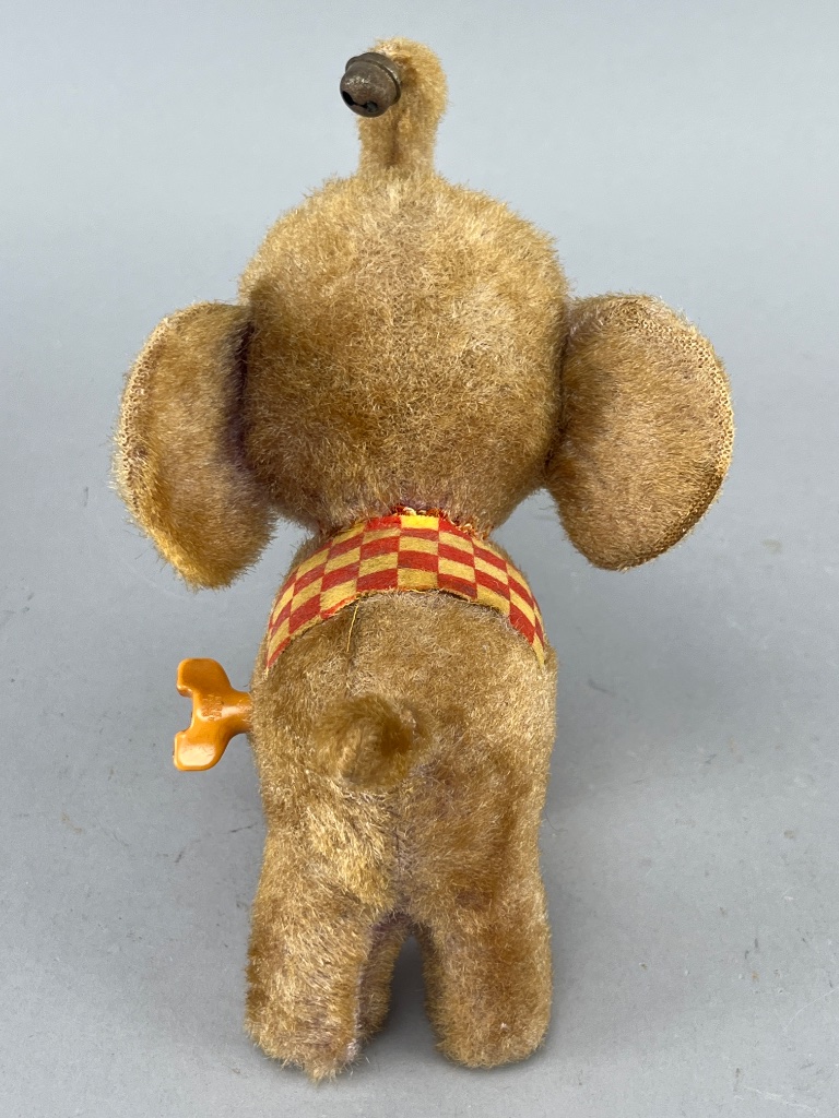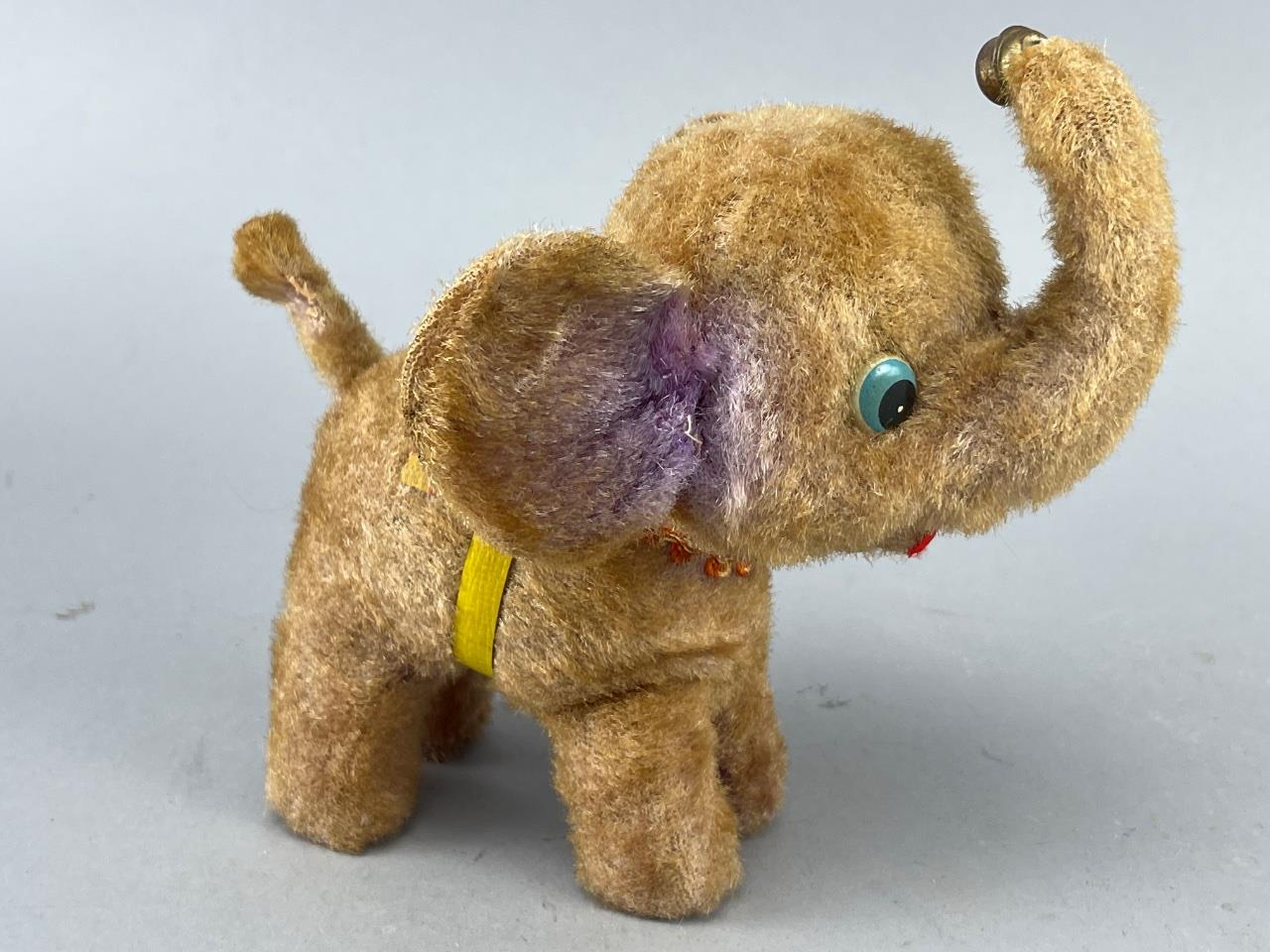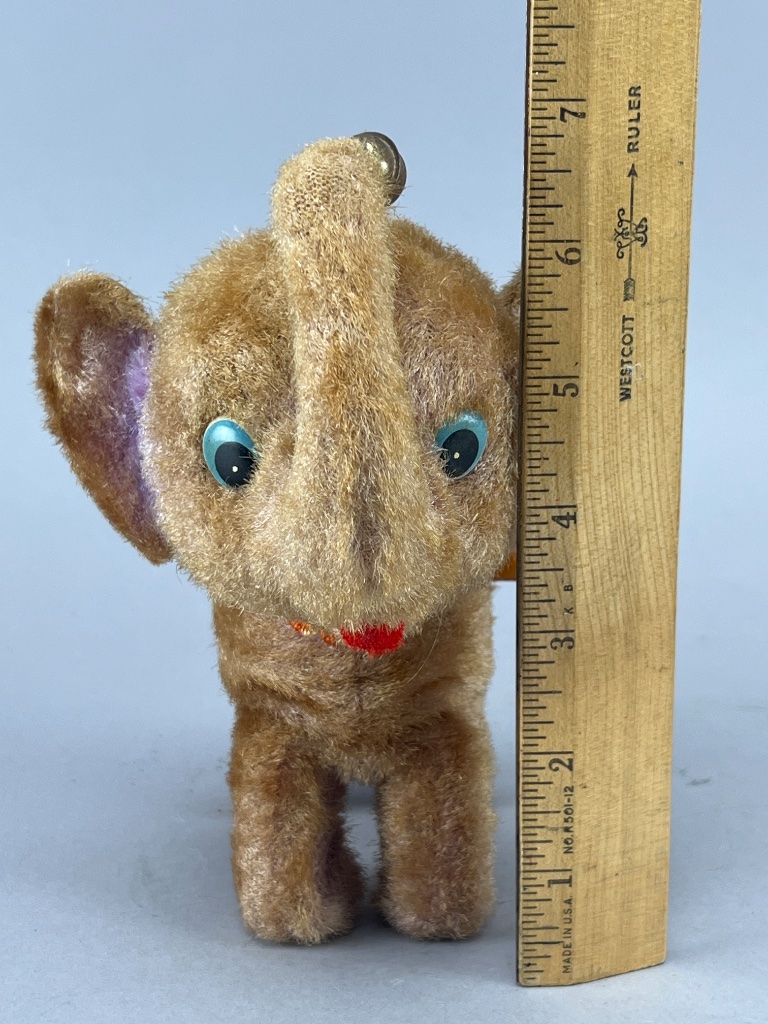 Vintage Plush Wind-Up Elephant Toy, 7"