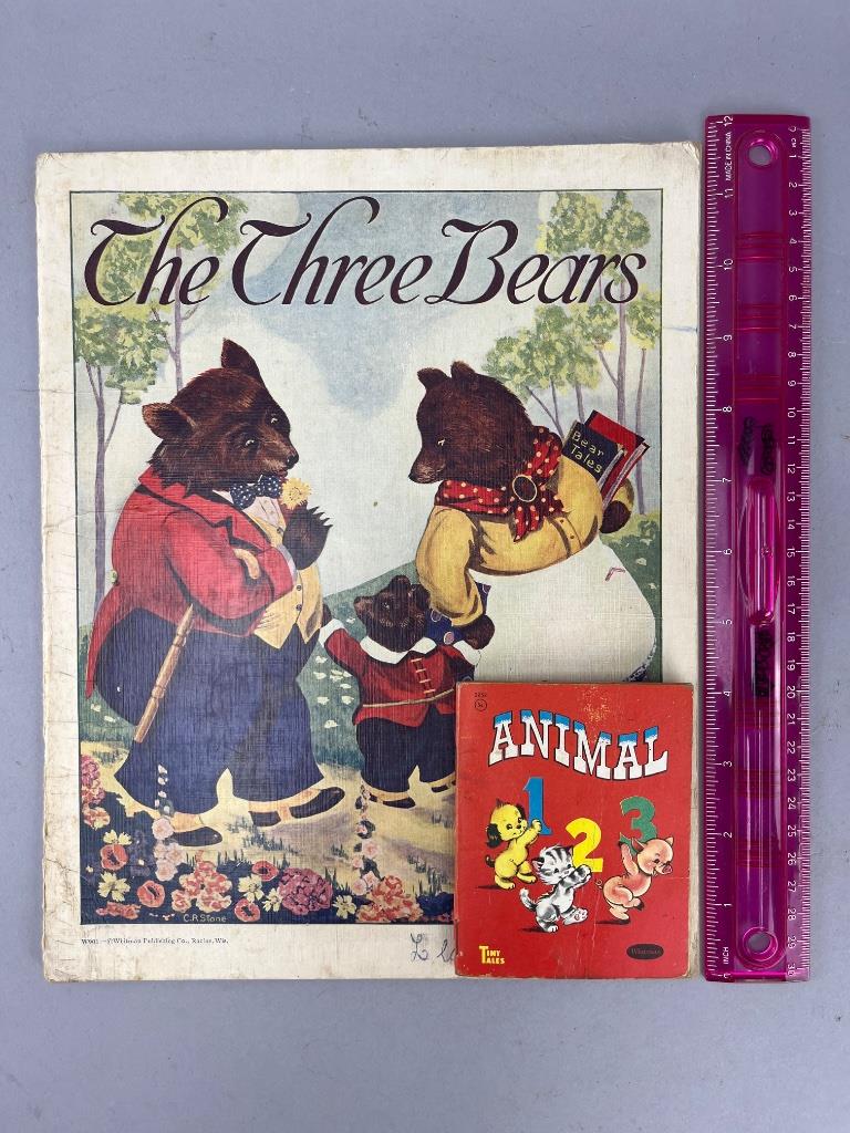CONDITION: ‘The Three Bears’ shows wear consistent with age, including visible edge wear and creasing. ‘Animal 1 2 3’ has cover wear, including scuffs and minor surface scratches. Both books appear structurally intact with vibrant illustrations.