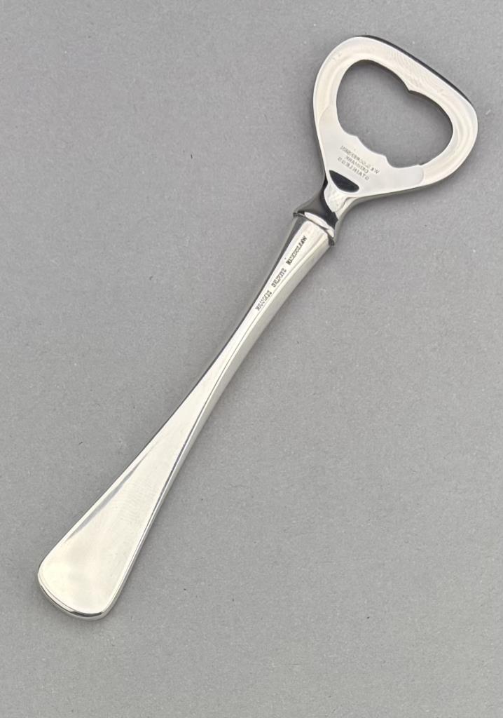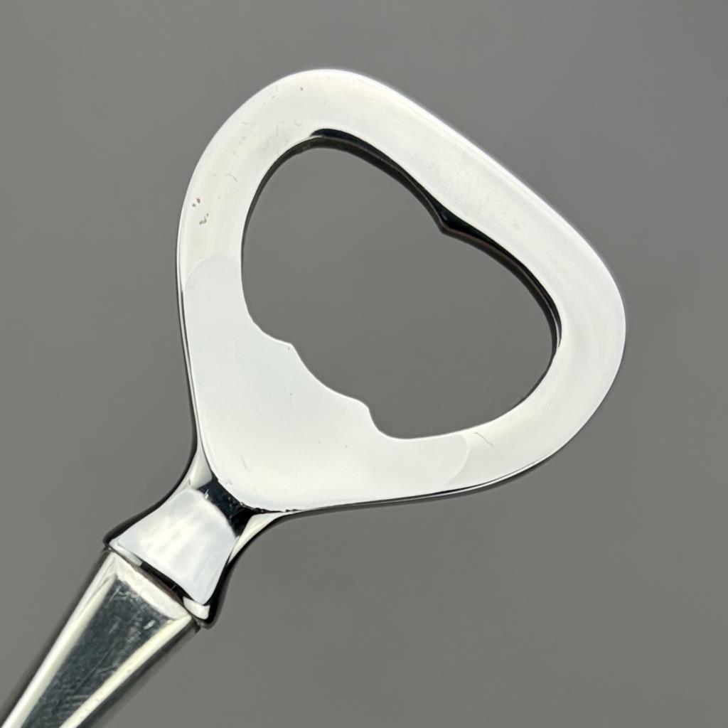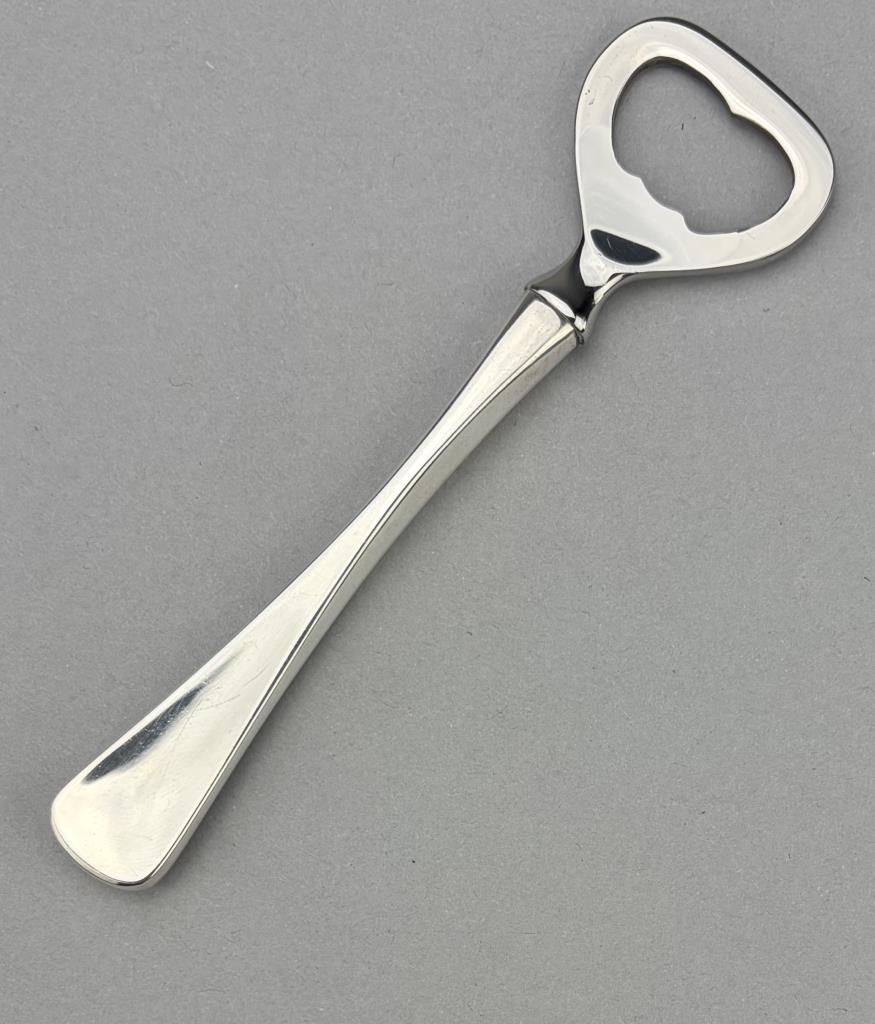 W&S Sørensen (also known as Horsens Sølvvarefabrik) (Denmark), Mid-Century Modern Scandinavian design, hollow sterling silver and stainless steel bottle opener, in the “Patricia” pattern, 5-1/2″.