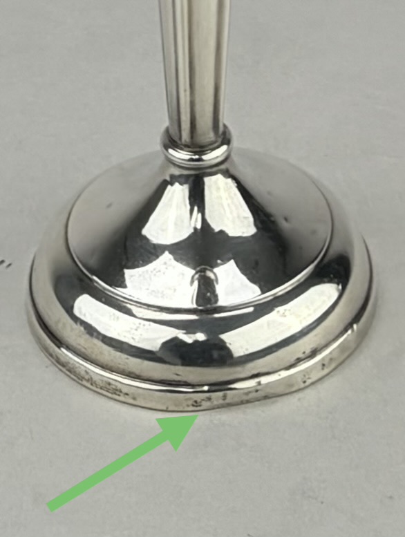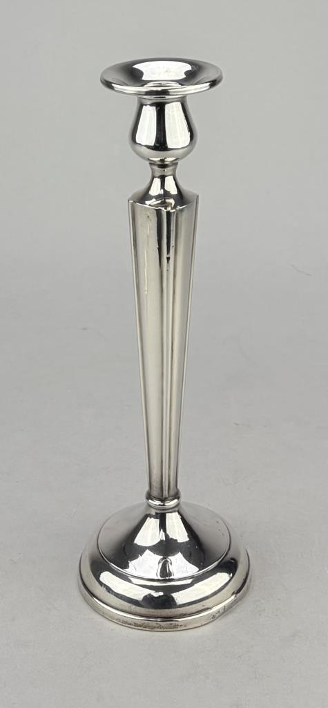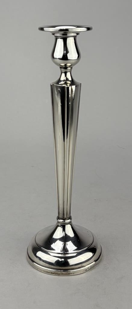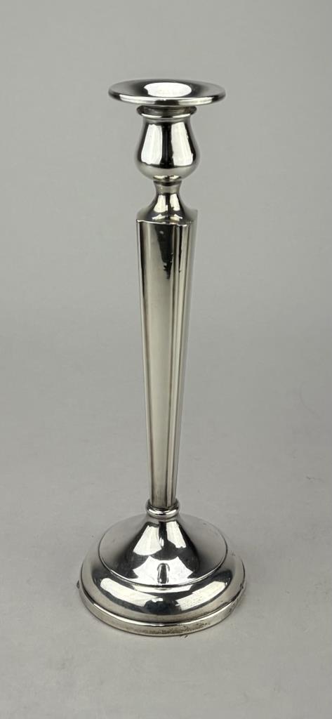 Attributed to International Silver Company (Meriden, Connecticut), single weighted sterling silver candlestick with removable solid sterling nozzle, made for the John Wanamaker Store (Philadelphia, Pennsylvania), early to mid 20th Century, 10-1/4″ (H).