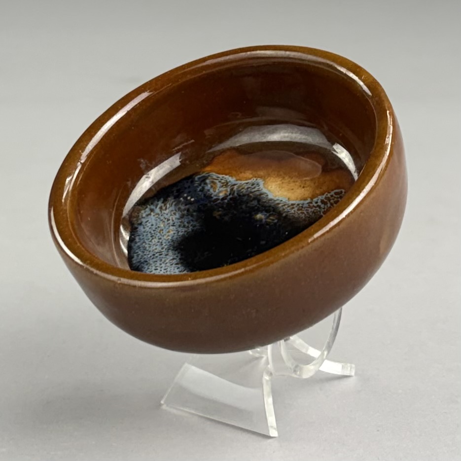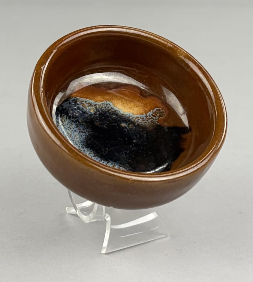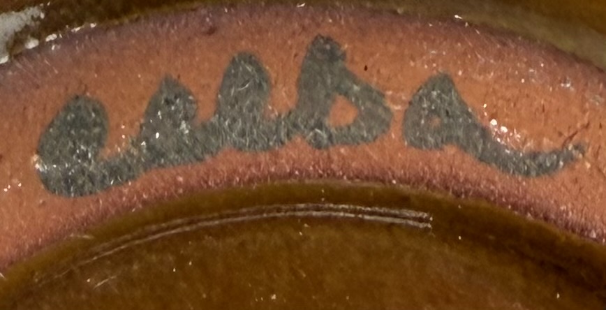 Mid Century Modern Cuban studio art pottery small slip decorated redware bowl, signed on bottom “Cuba”, circa 1960s / 1970s, 3-3/8″ (DIA).