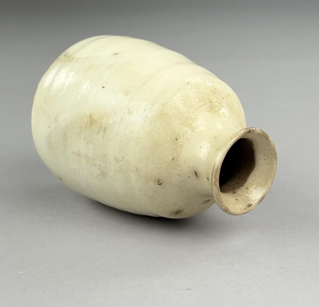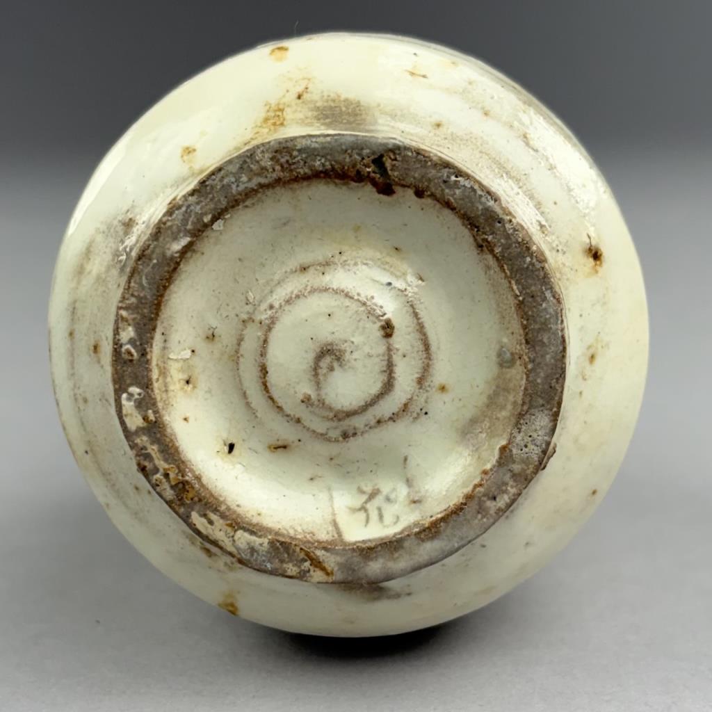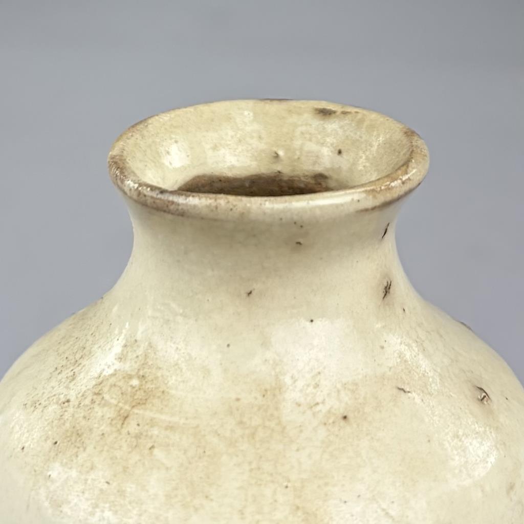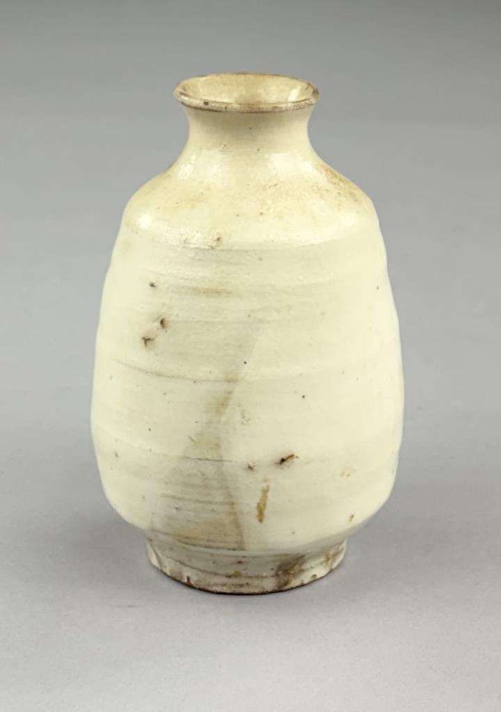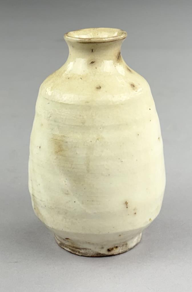 Japanese Tokkuri, or sake bottle, with white slip Kohiki style glaze, 4-1/2″ (H).