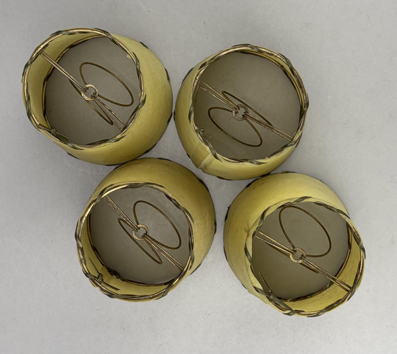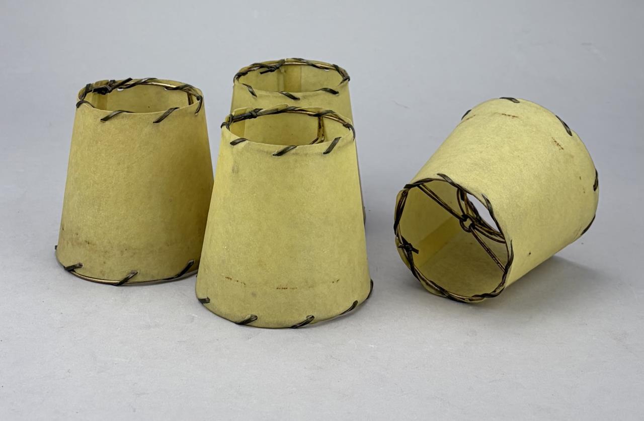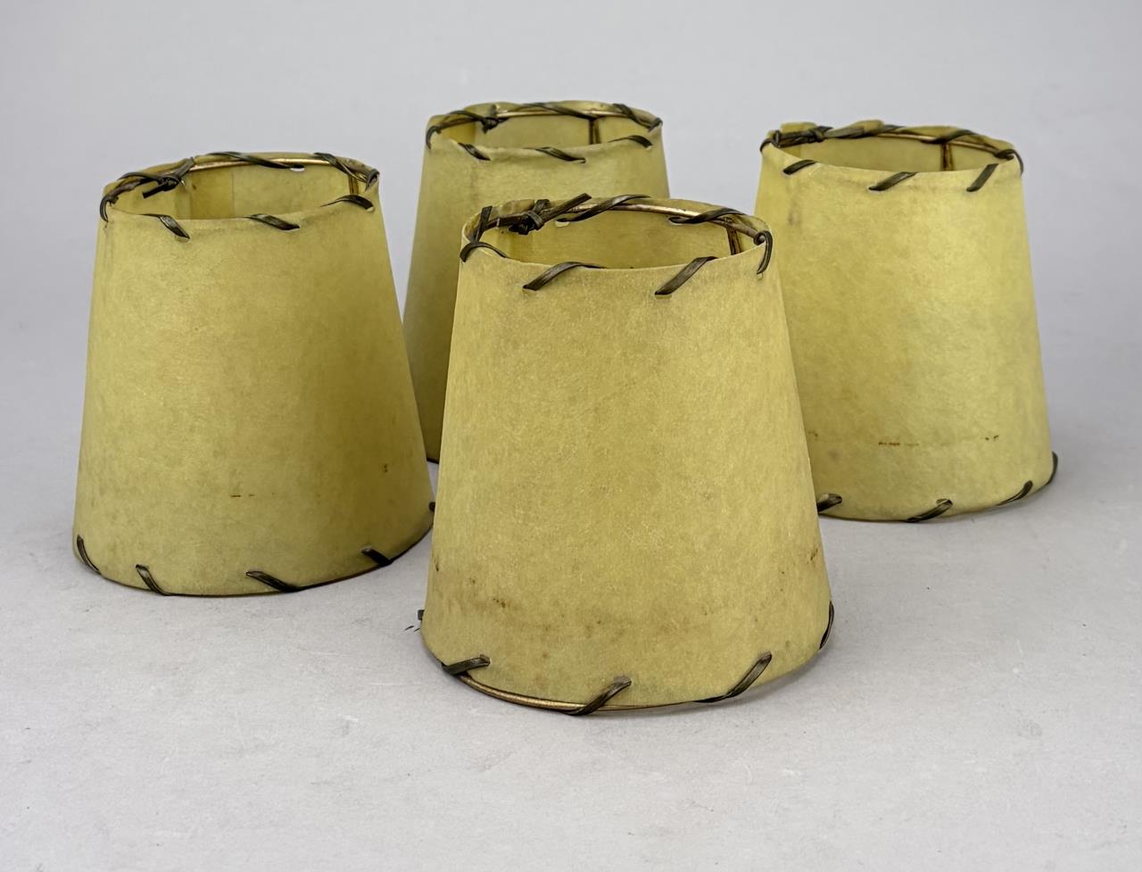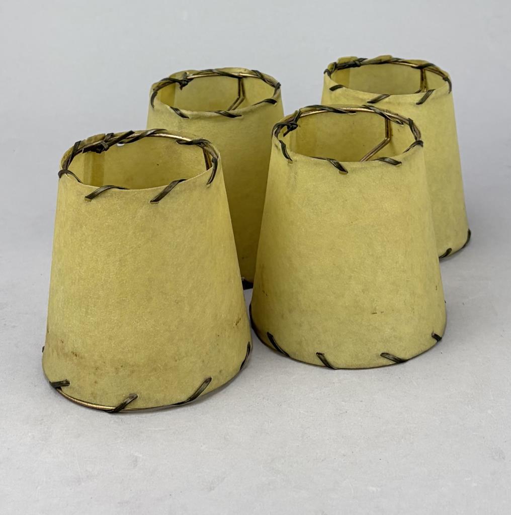 Set of four Mid Century Modern open stitched parchment bulb lamp shades, mid 20th Century, 4″ x 4″.