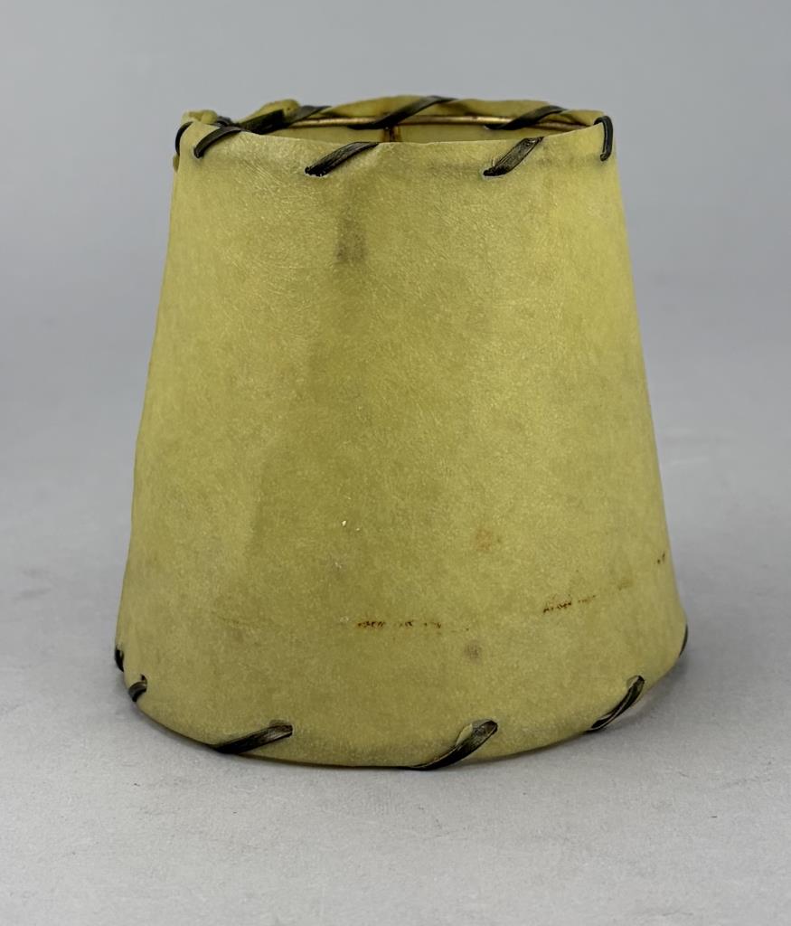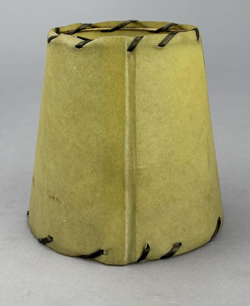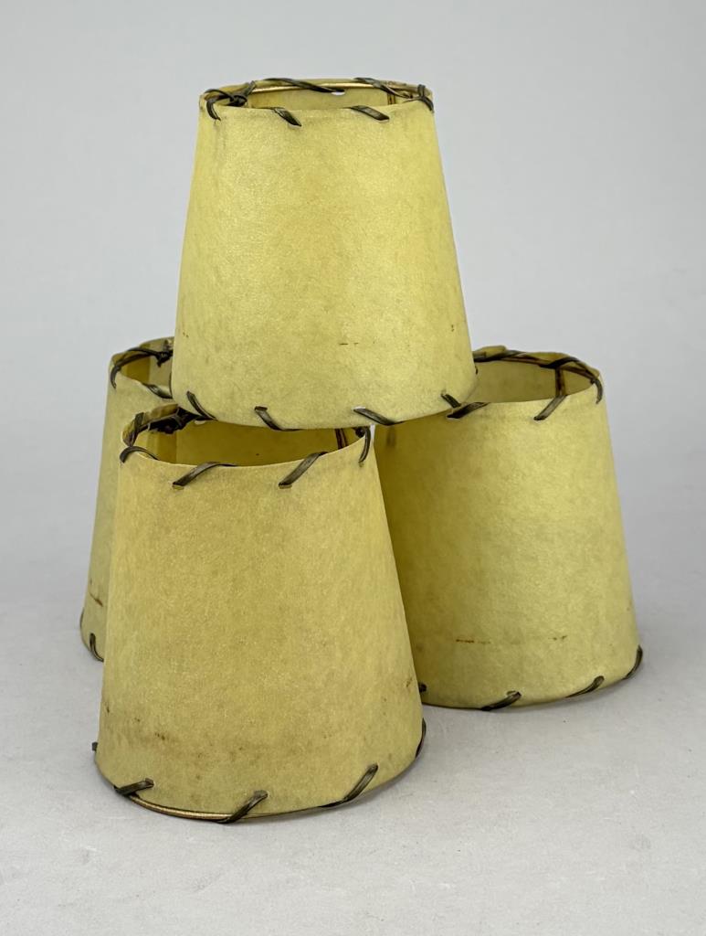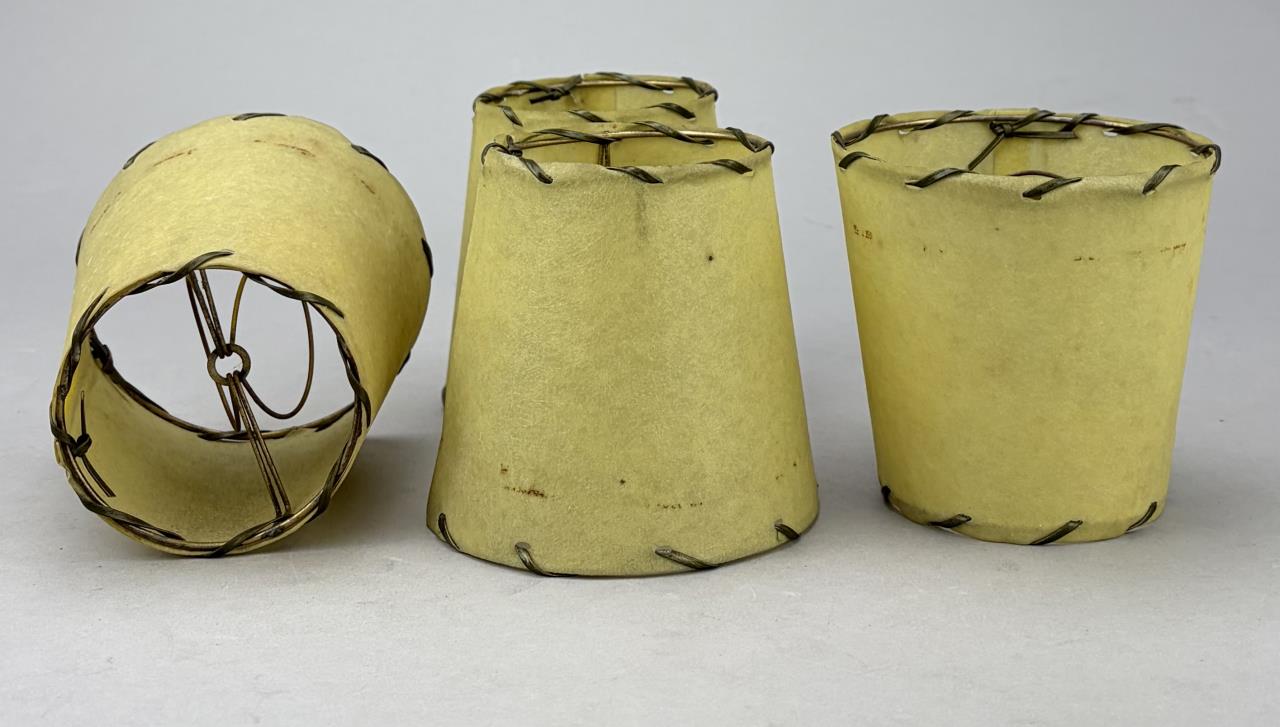 Set of four Mid Century Modern open stitched parchment bulb lamp shades, mid 20th Century, 4″ x 4″.