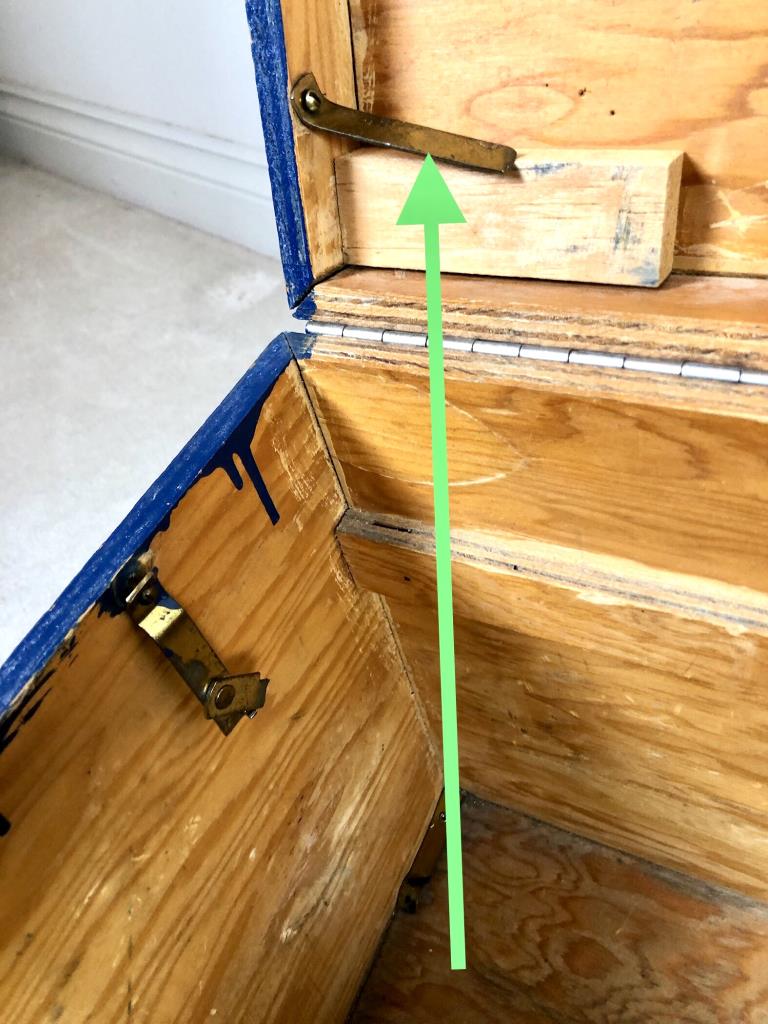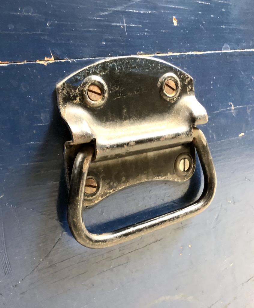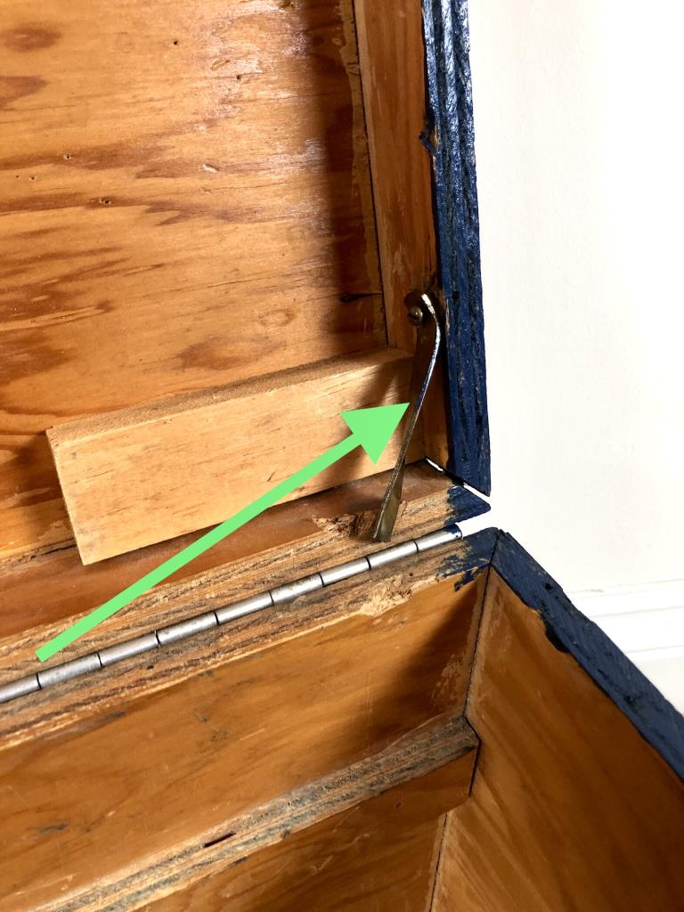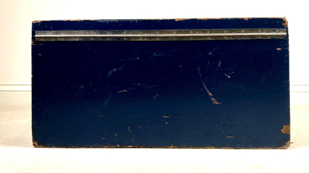 CONDITION: Lid stops on the inside are broken on both side, wear and losses to paint commensurate with age and use.
