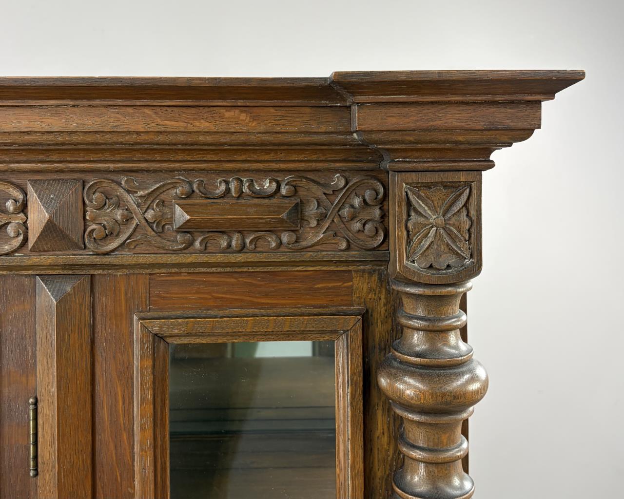 Elizabethan Revival Quartersawn Oak China Cabinet