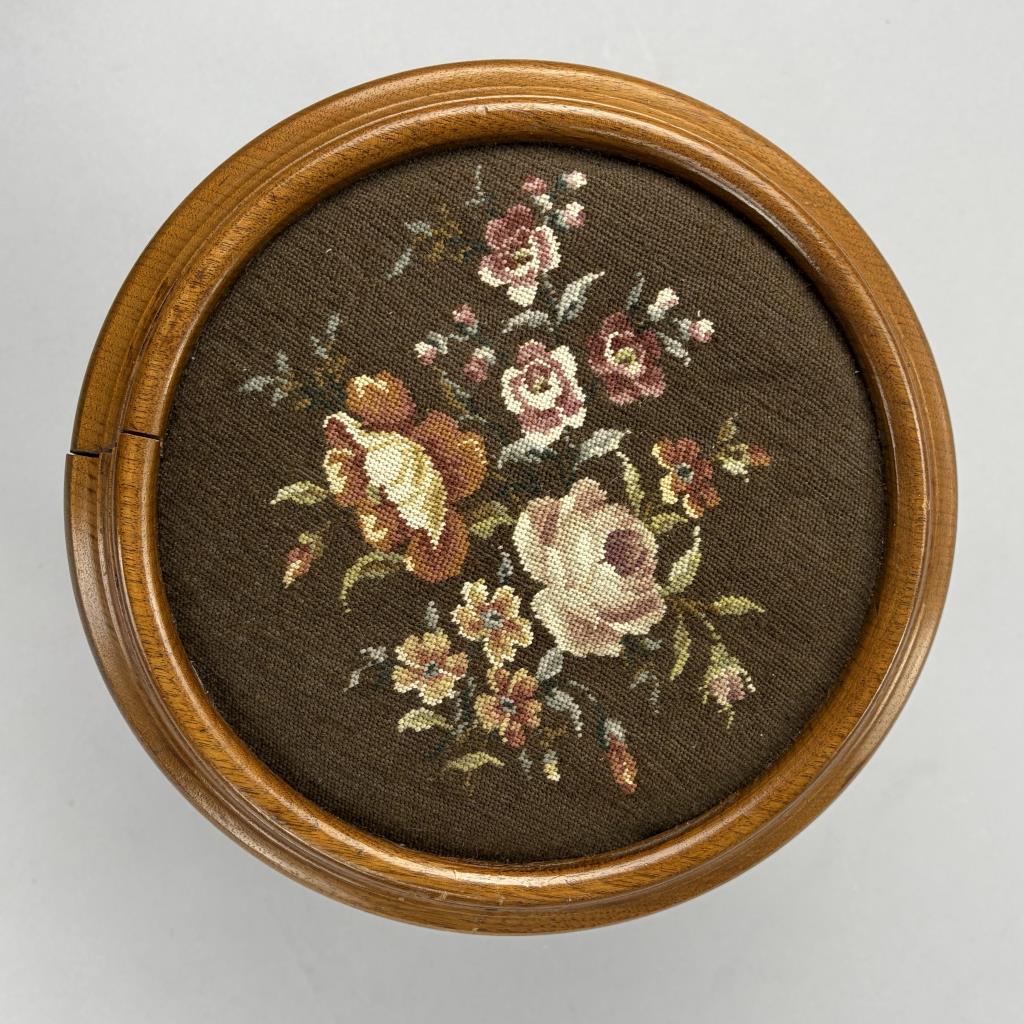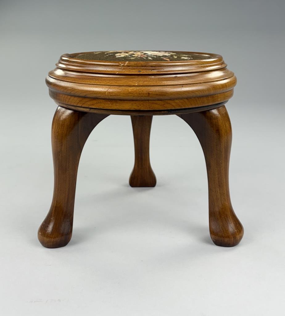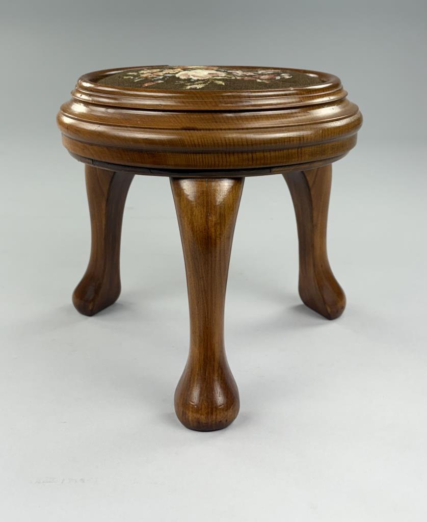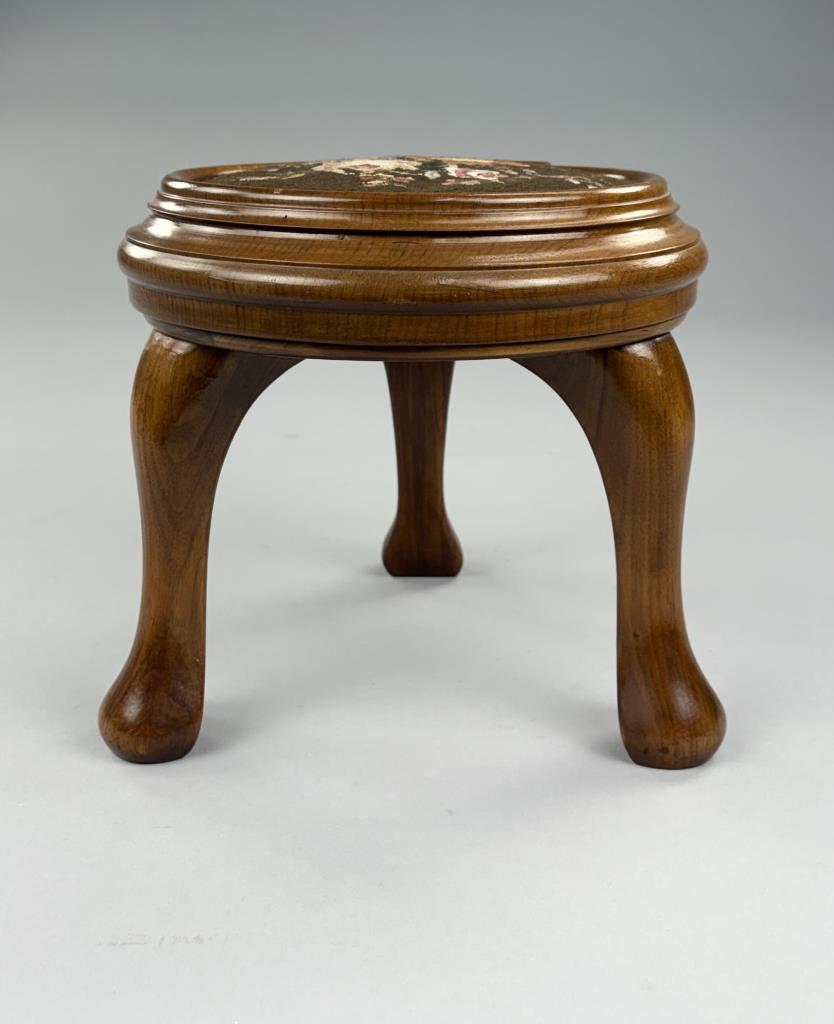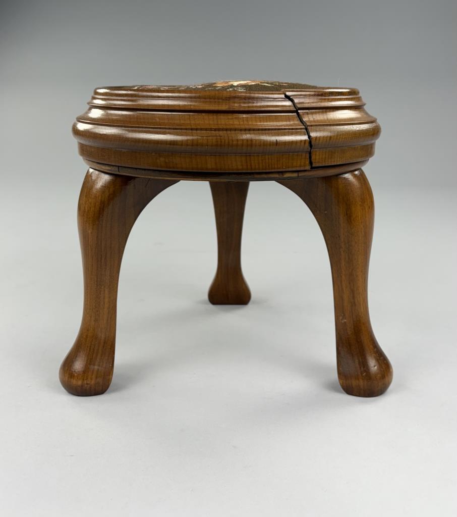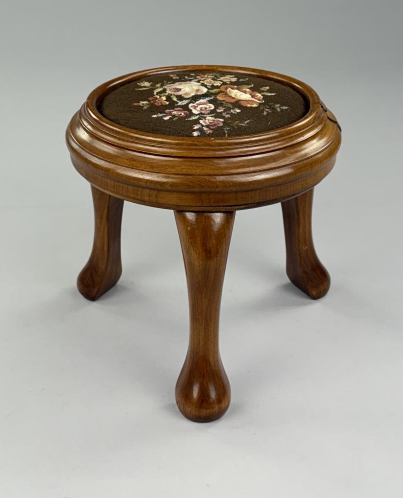 Queen Anne Style Round Petit Point Footstool