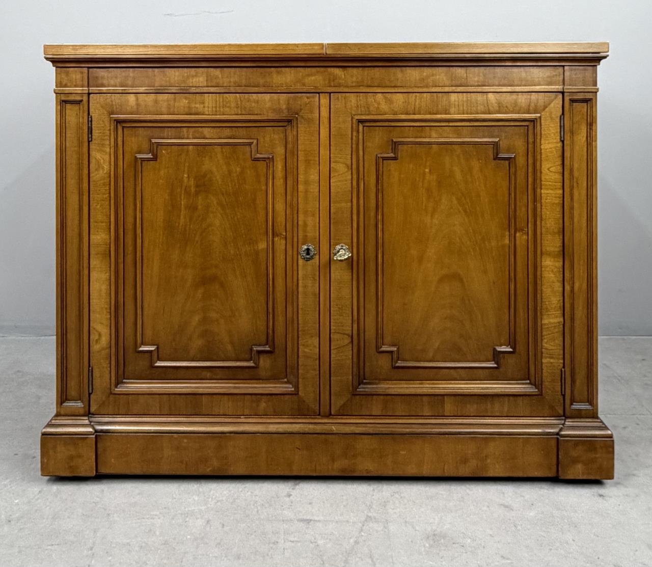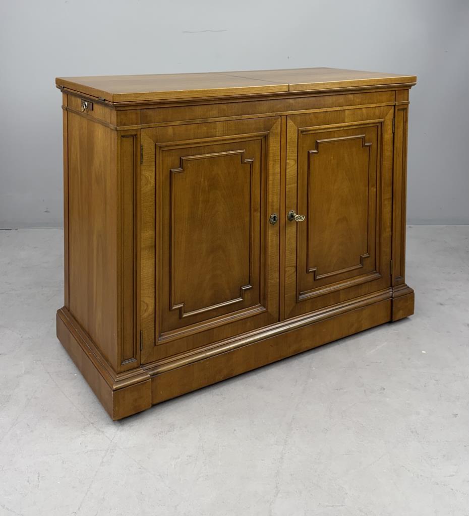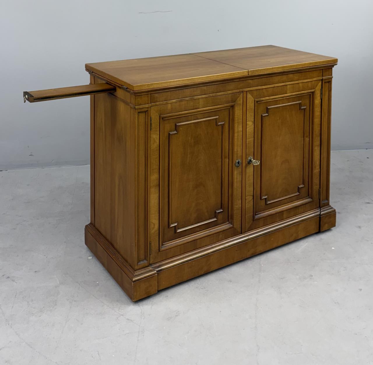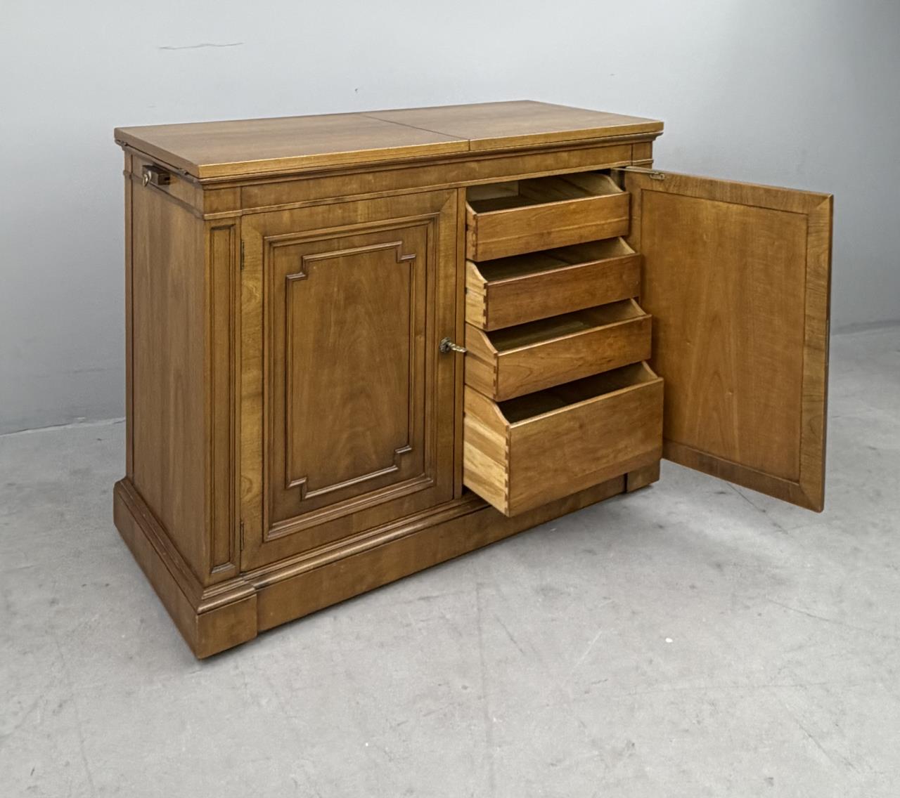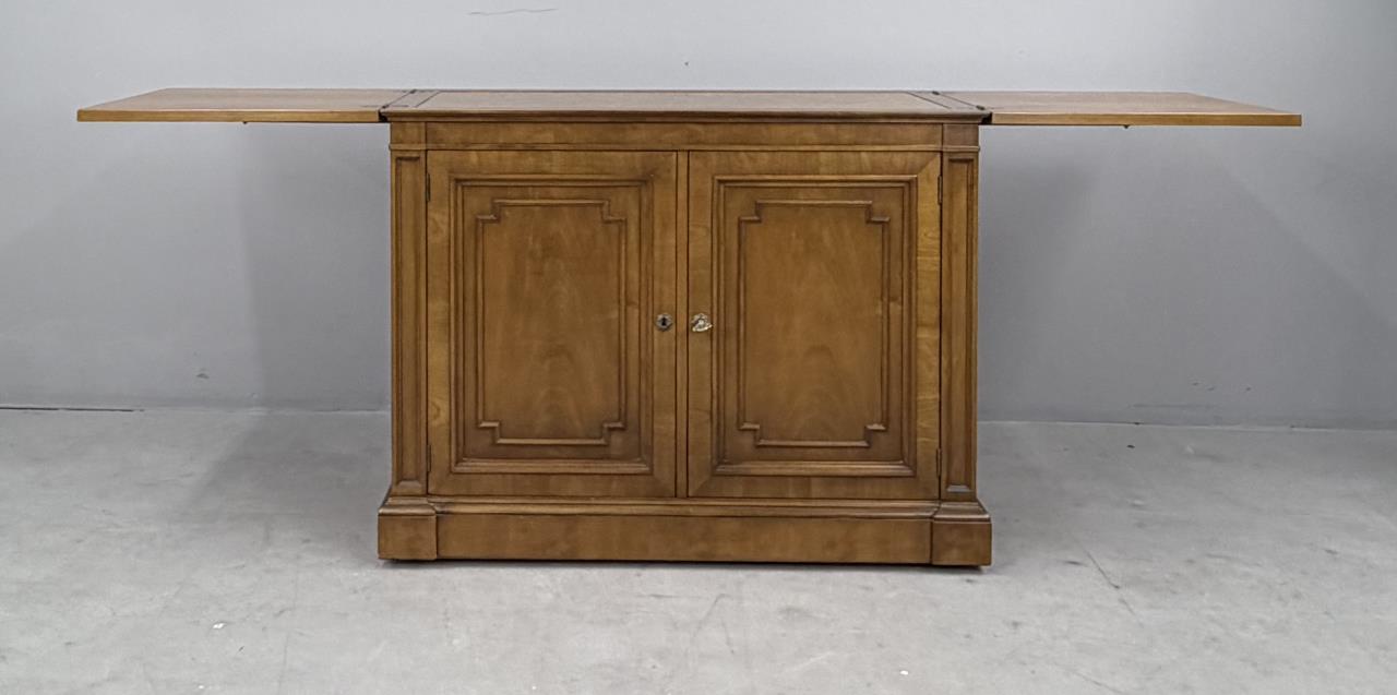 French Regency style flip-top server, cherry, circa 1960s / 1970s, attributed to Kindel Furniture Company (Grand Rapids, Michigan), from the Belvedere collection, approximately 18″ (D) x 40-1/2″ (W) x 31-1/2″ (H).