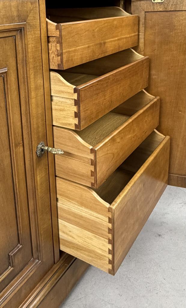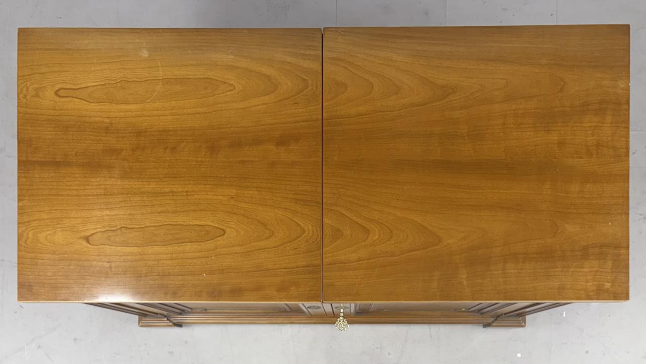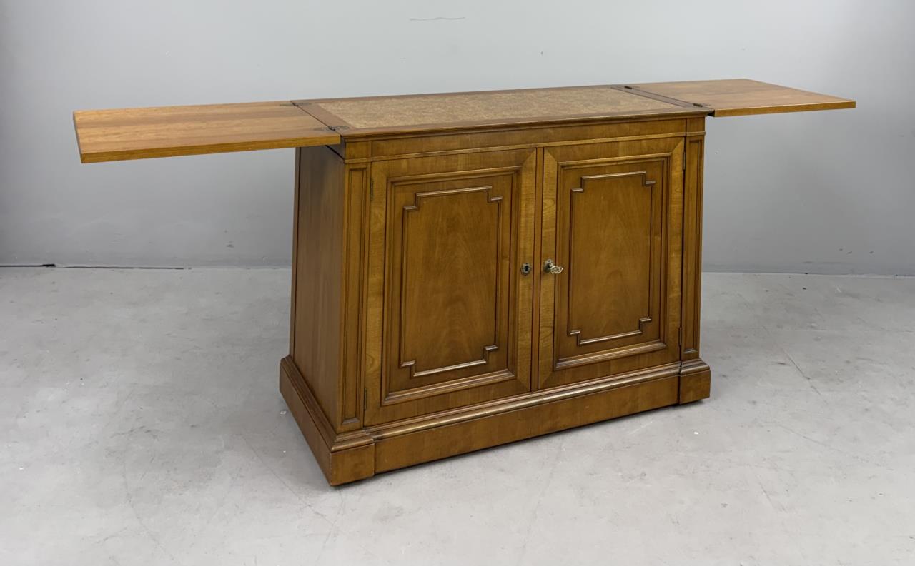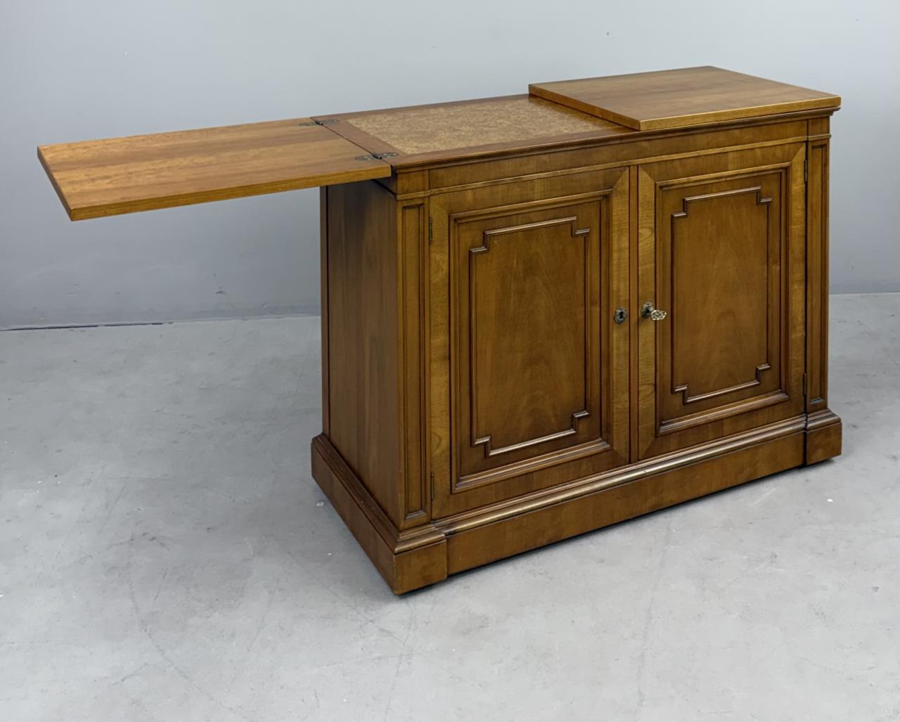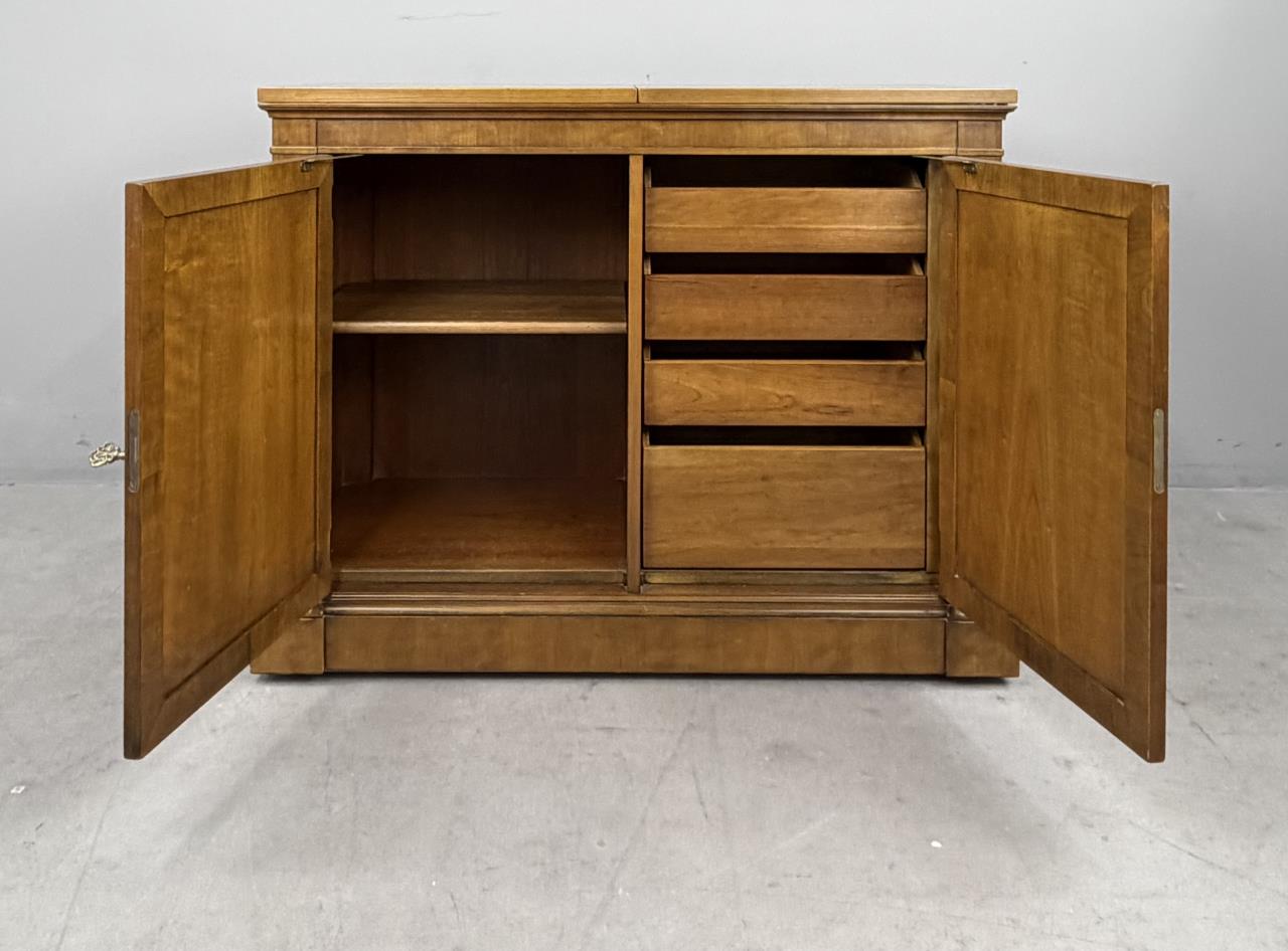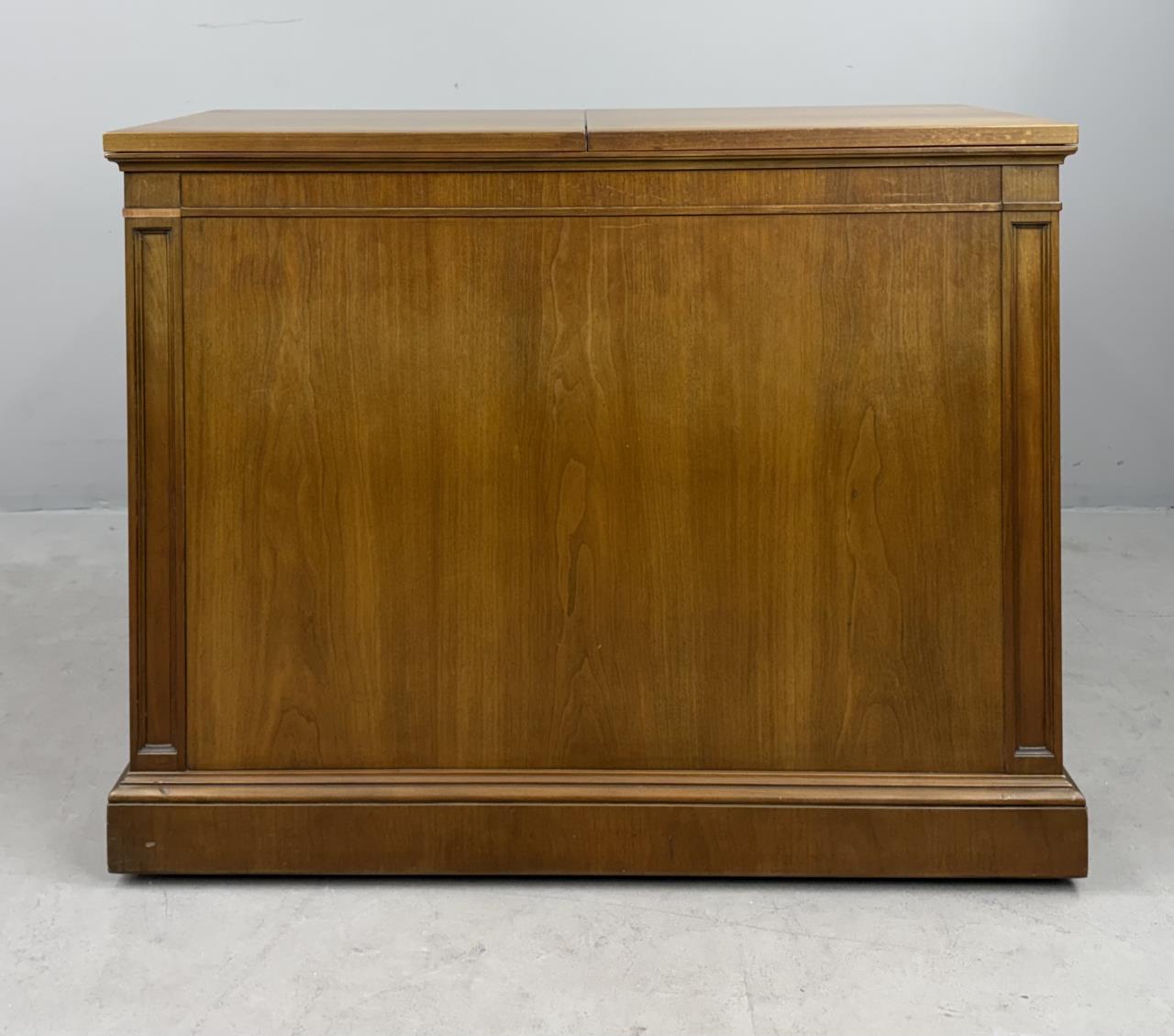 French Regency style flip-top server, cherry, circa 1960s / 1970s, attributed to Kindel Furniture Company (Grand Rapids, Michigan), from the Belvedere collection, approximately 18″ (D) x 40-1/2″ (W) x 31-1/2″ (H).
