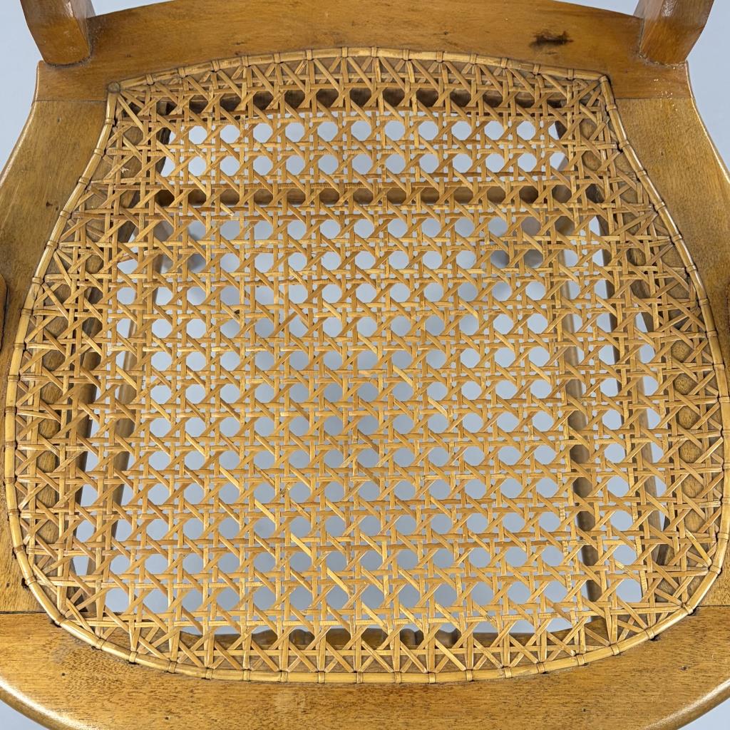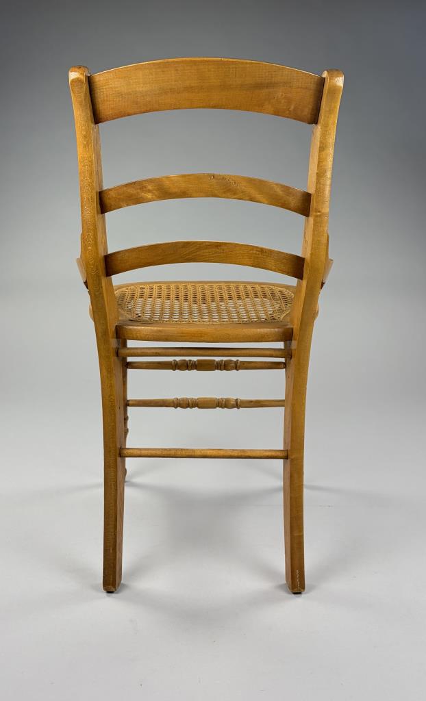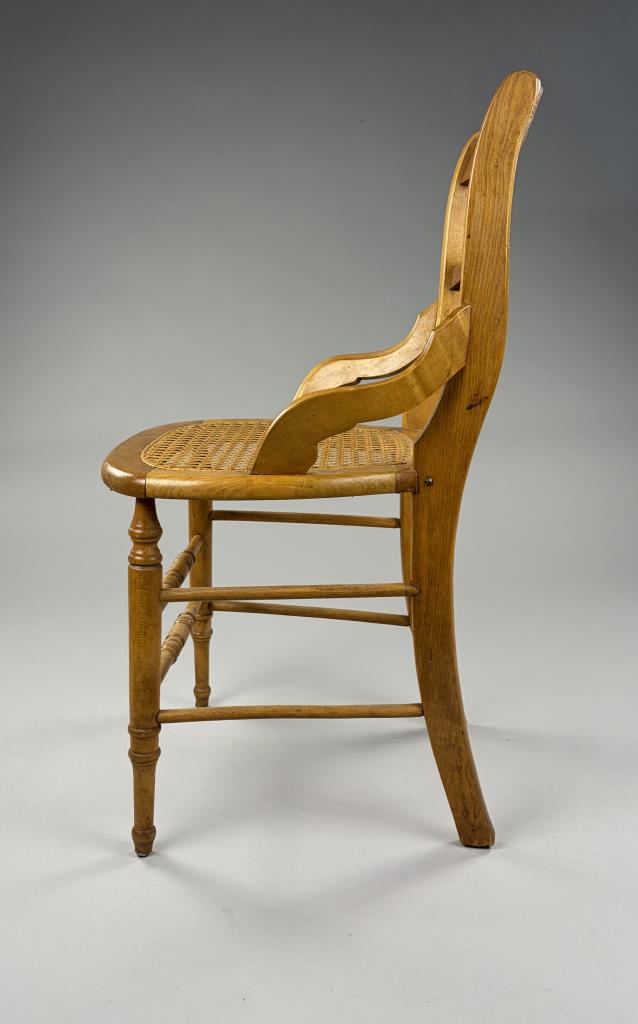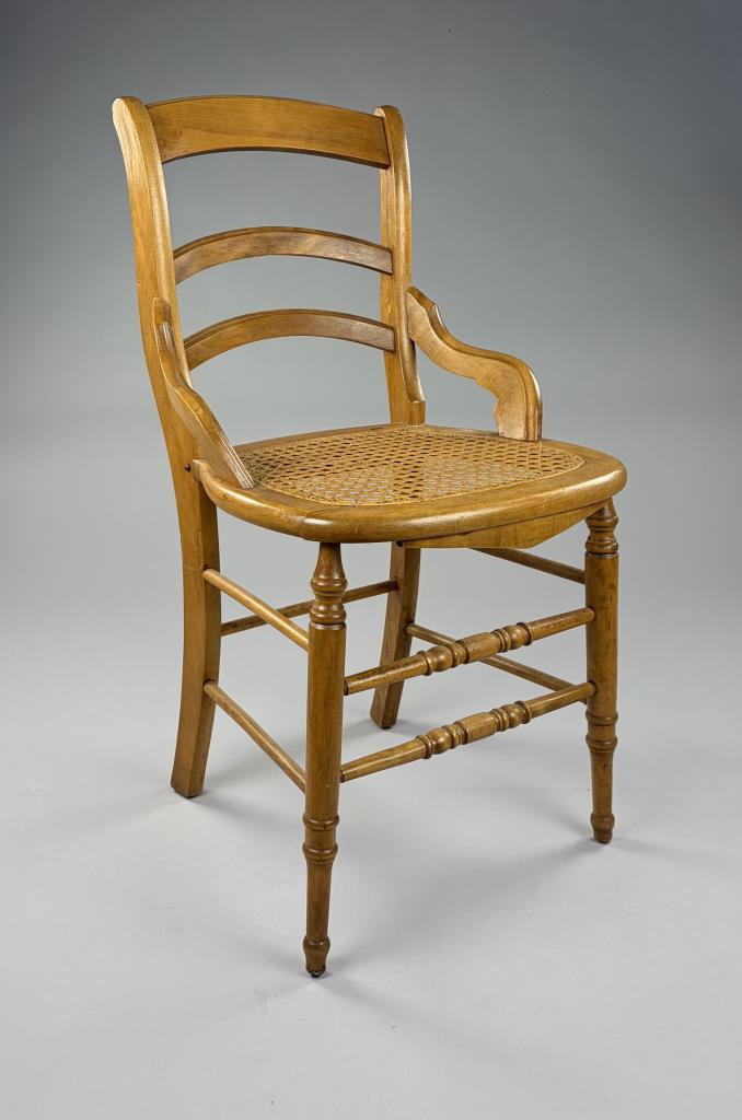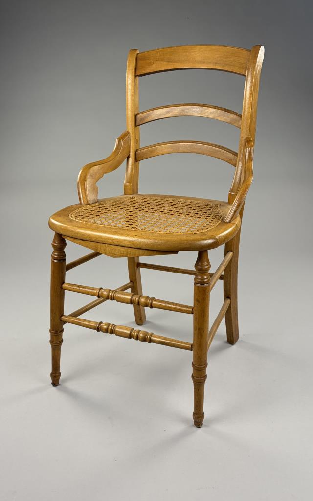 Victorian Era, ladderback side chair, with turned legs and stretchers, real caned seat, and hip-huggers, mixed woods, late 19th Century, 32-3/4″ (H).