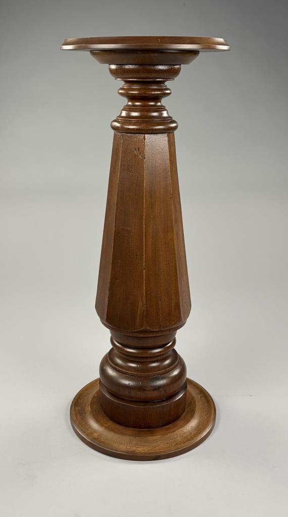 American Empire Revival statue pedestal or plant stand, with a faceted graduated column, early 20th Century, 13″ x 31-3/4″.