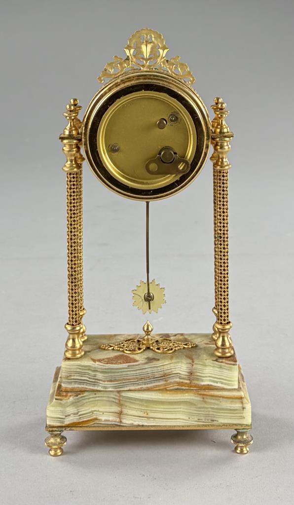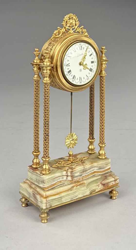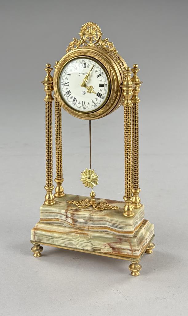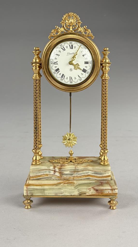 “Winette”, made by the firm of Gebrüder Wintermantel (Germany), boudoir column clock, gilt metal and onyx, circa 1970s, 10-1/2″ (H).