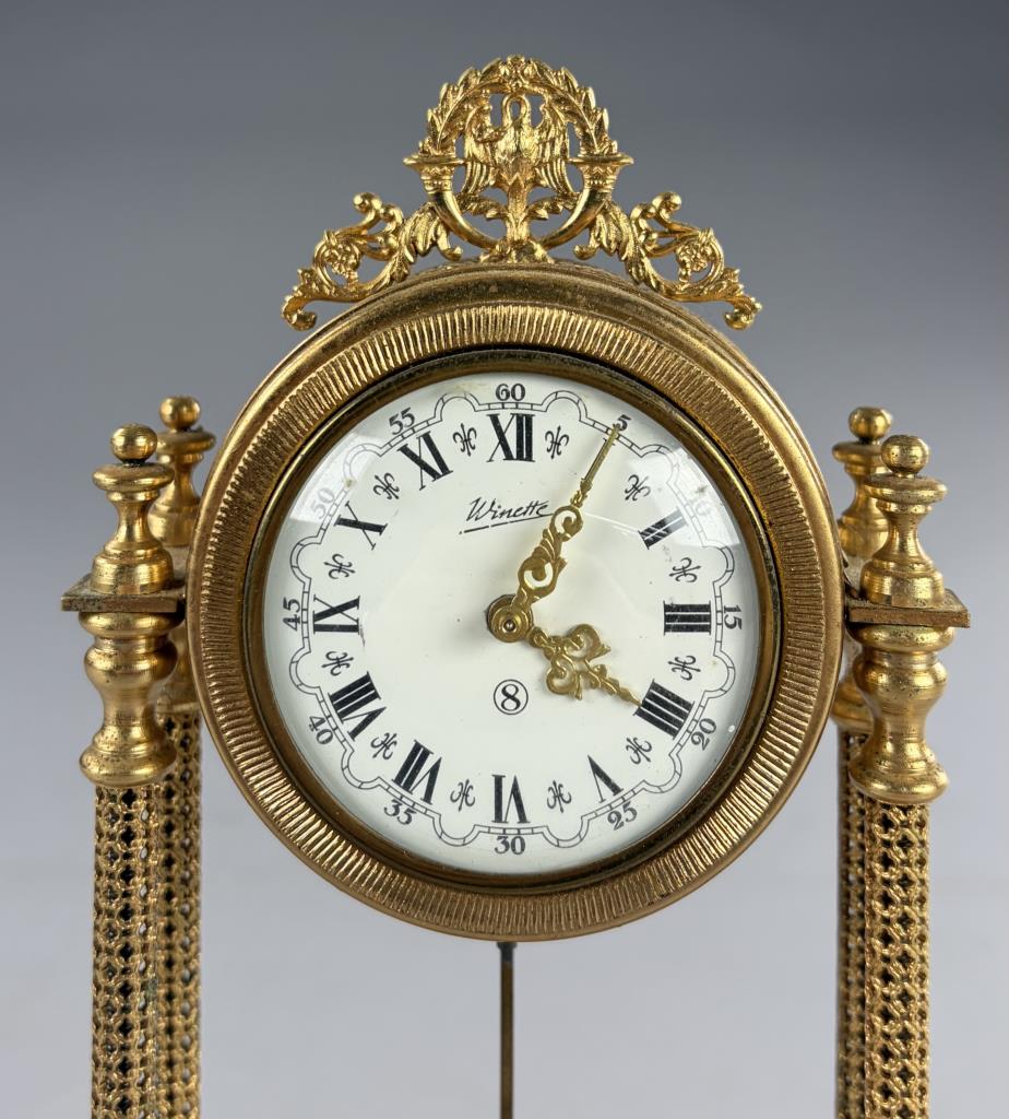 Winette Gilt Metal & Onyx Boudoir Column Clock