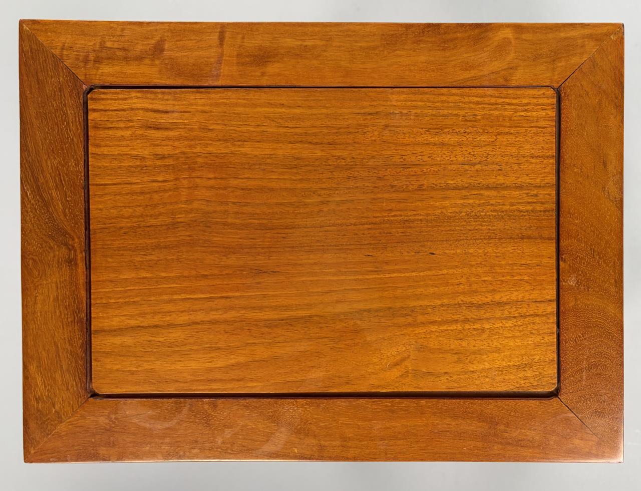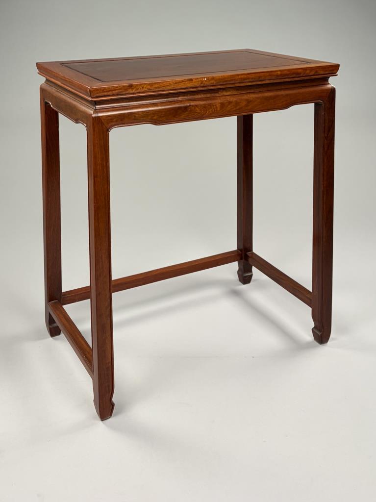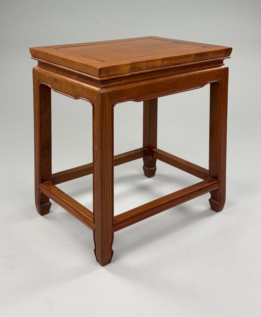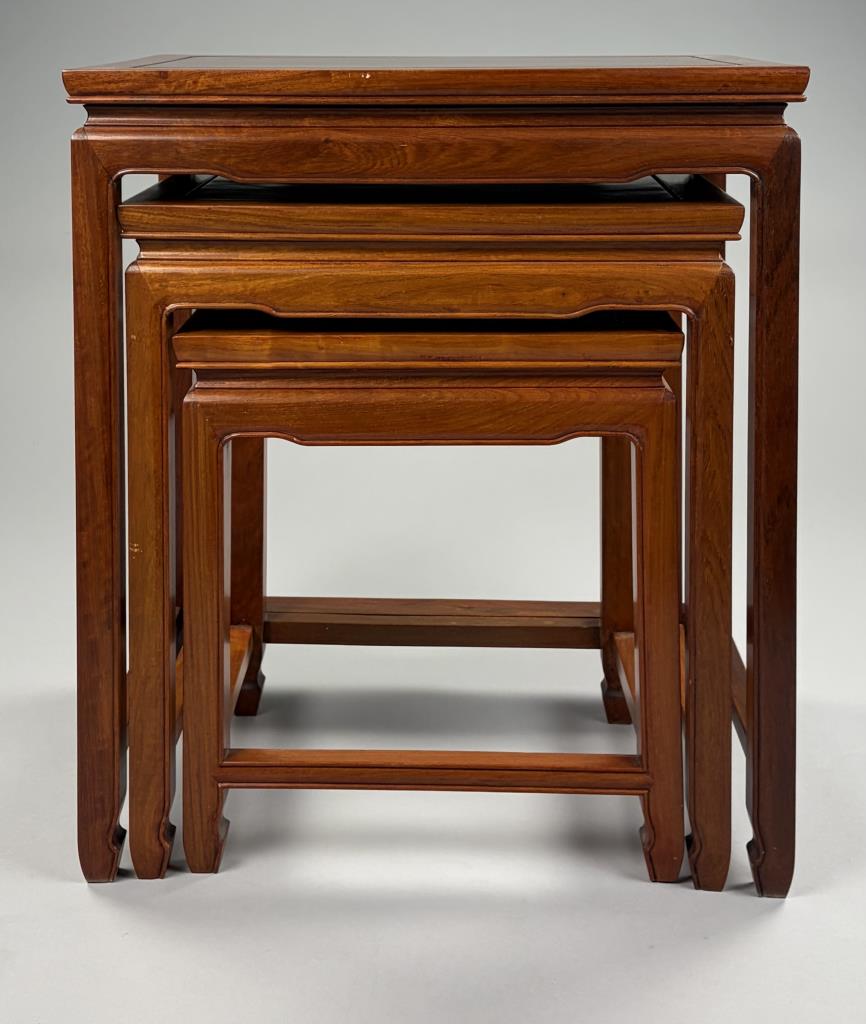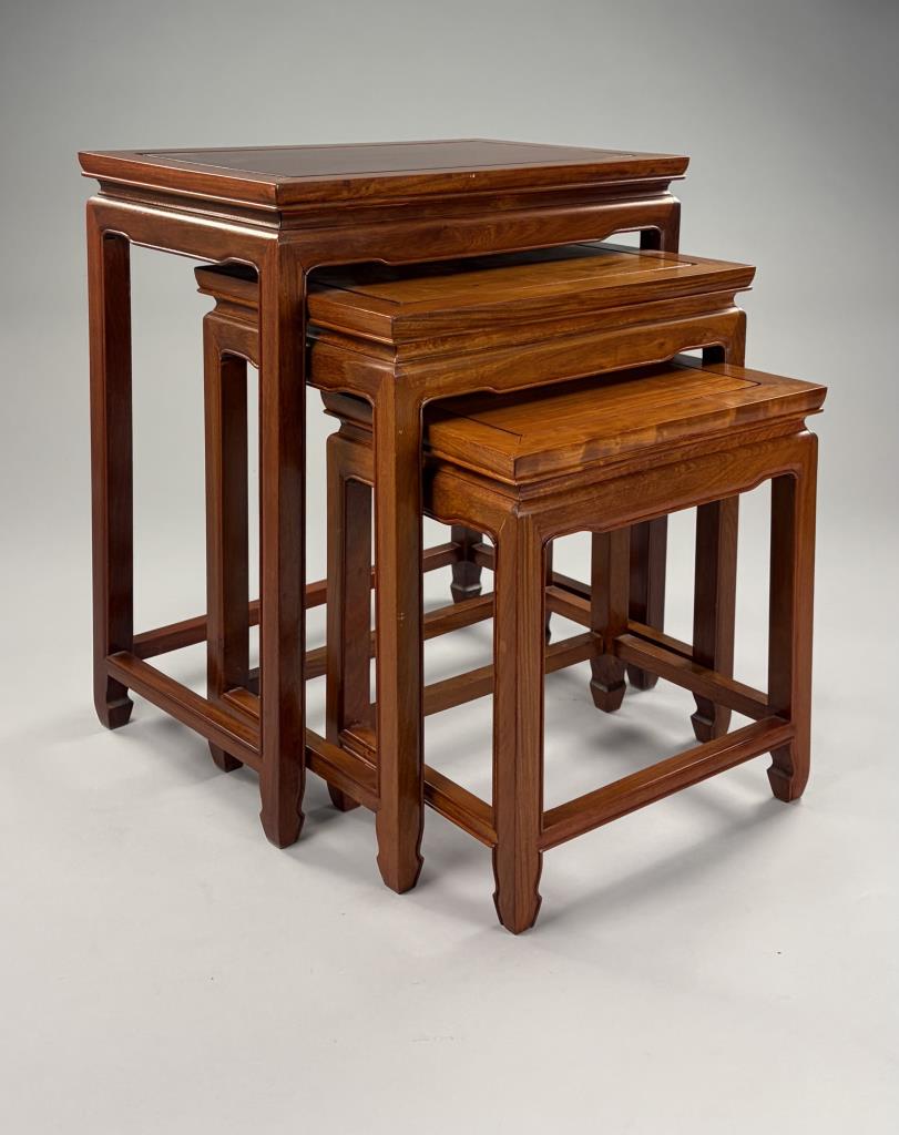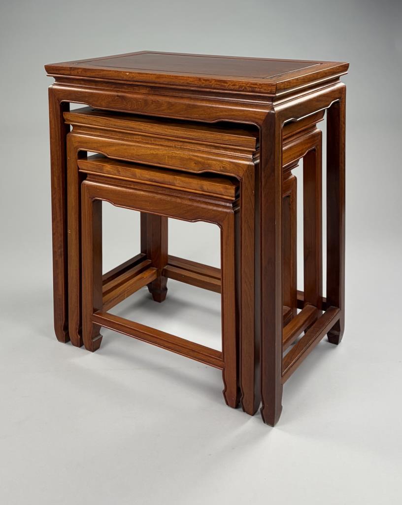 Set of three Chinese nesting tables, Asian hardwood, 30th Century, the largest measures 14″ x 22″ 24″.