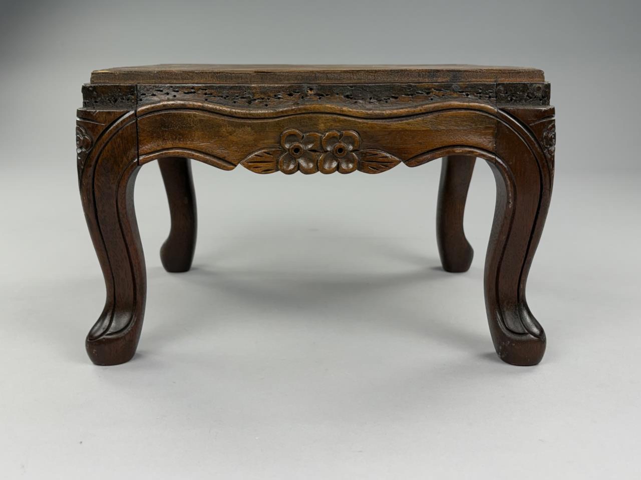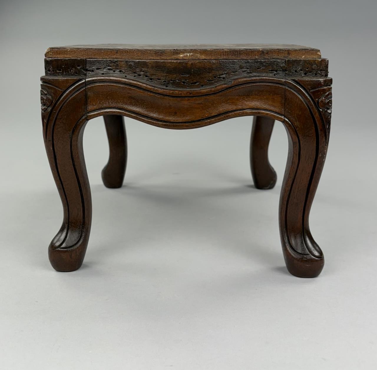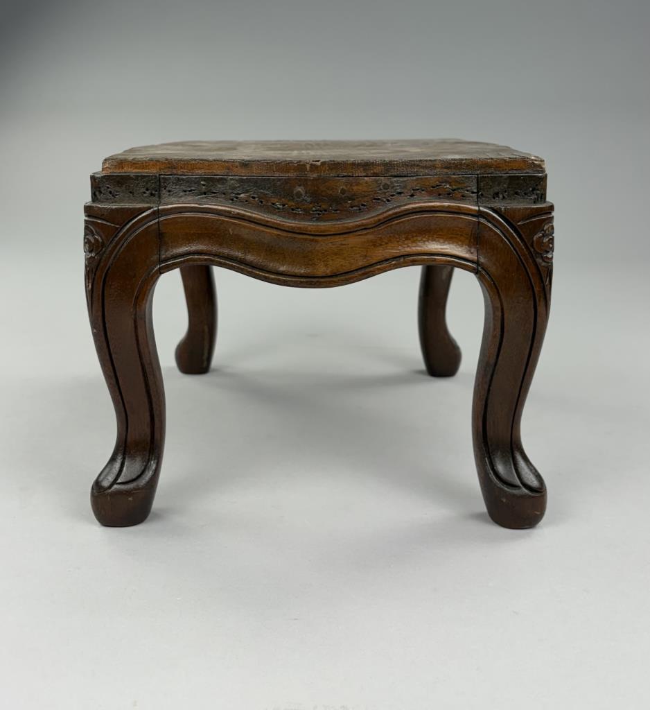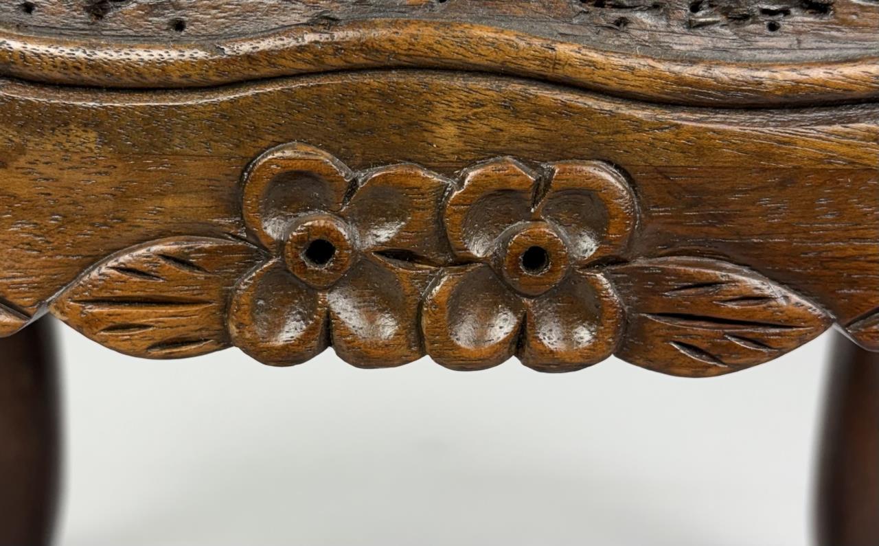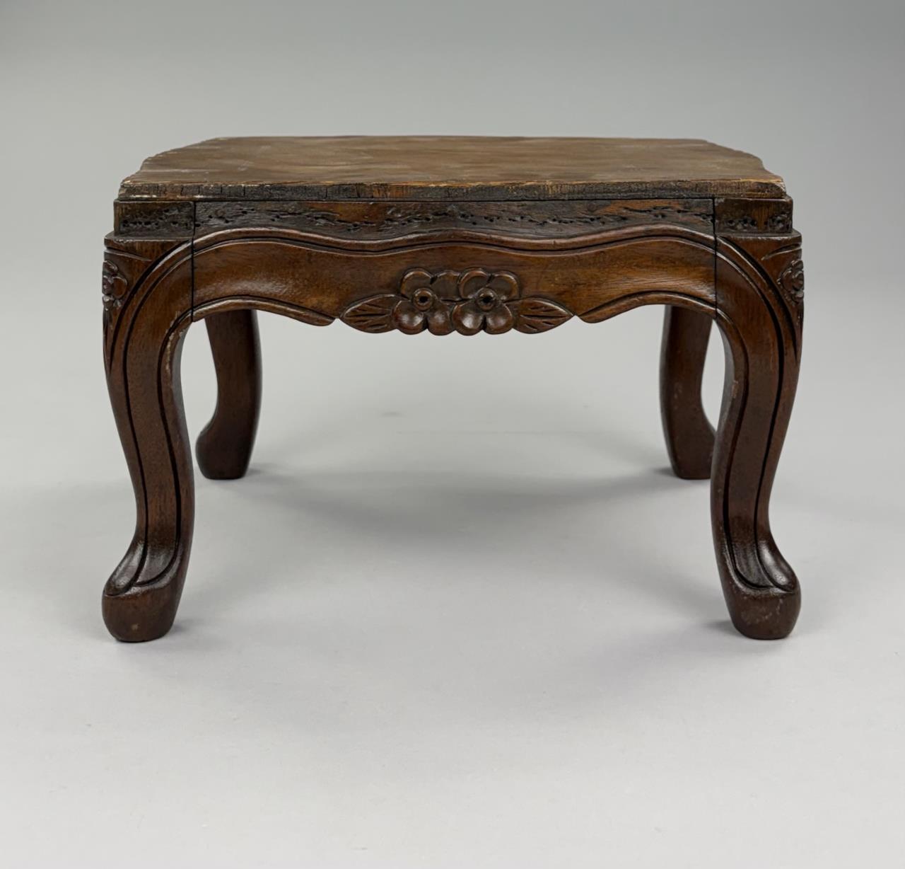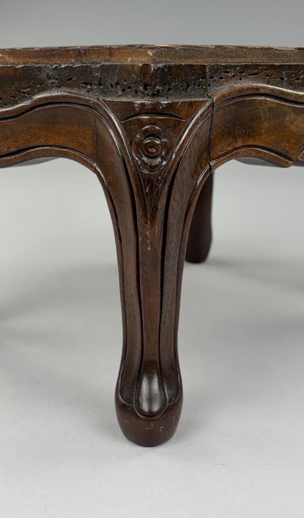 Antique French provincial Louis XV style carved footstool frame, circa early 20th Century, 11-3/8″ x 14-1/2″ x 8-5/8″.