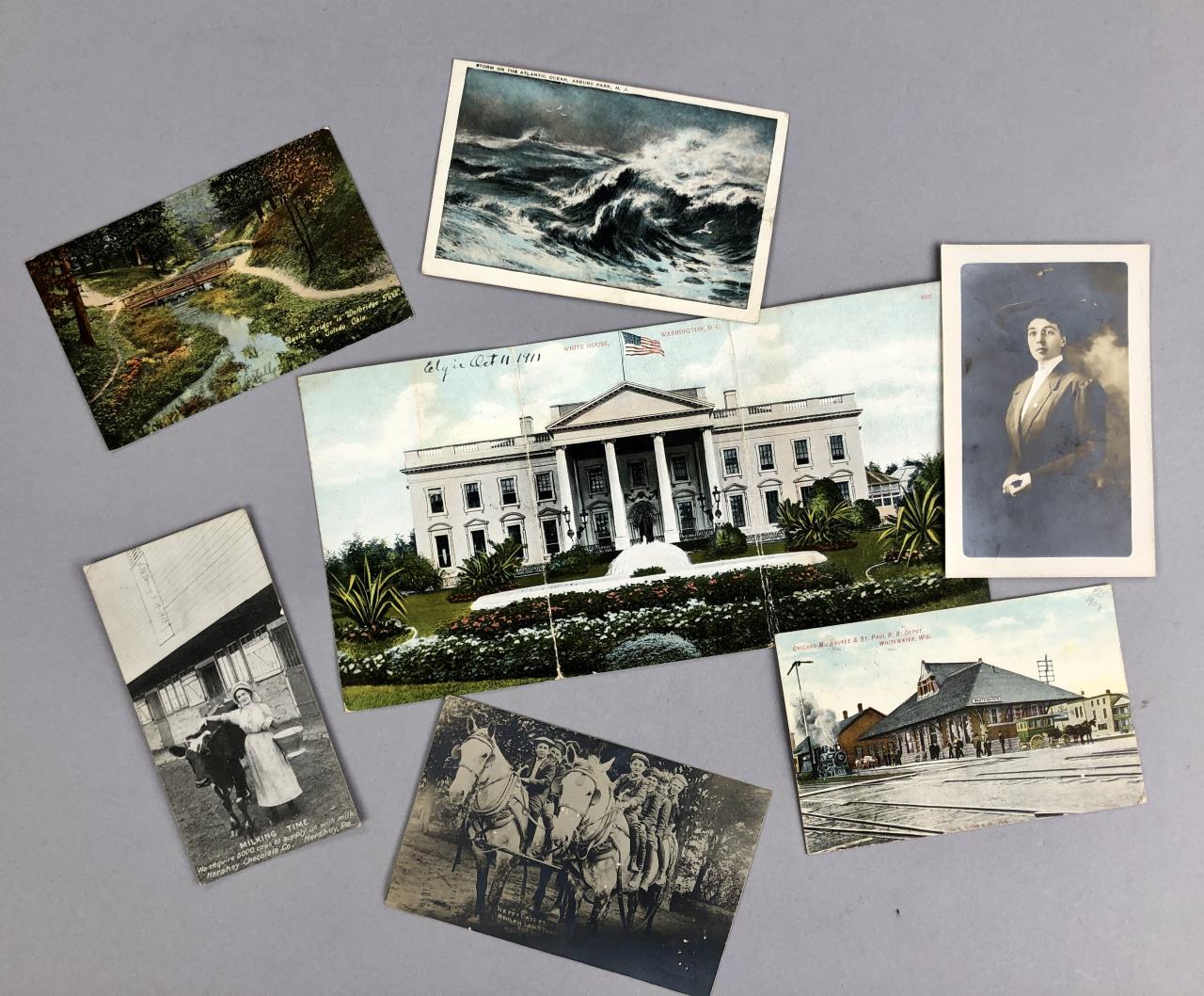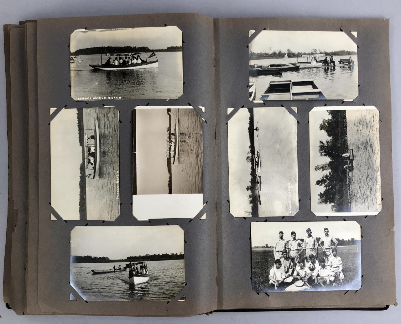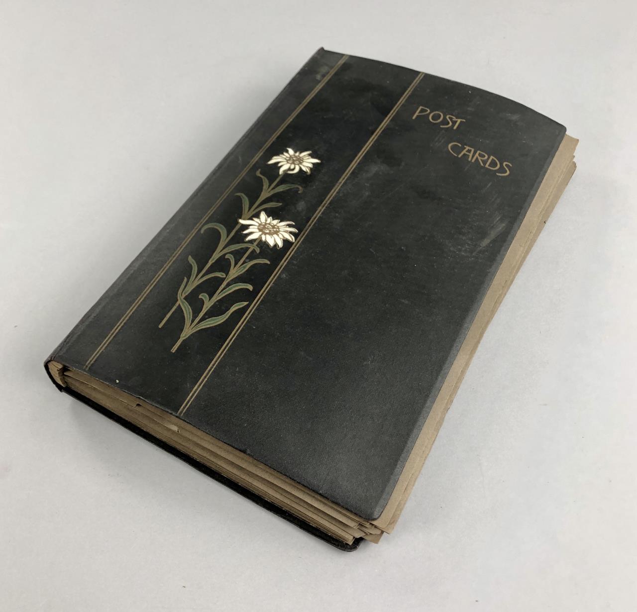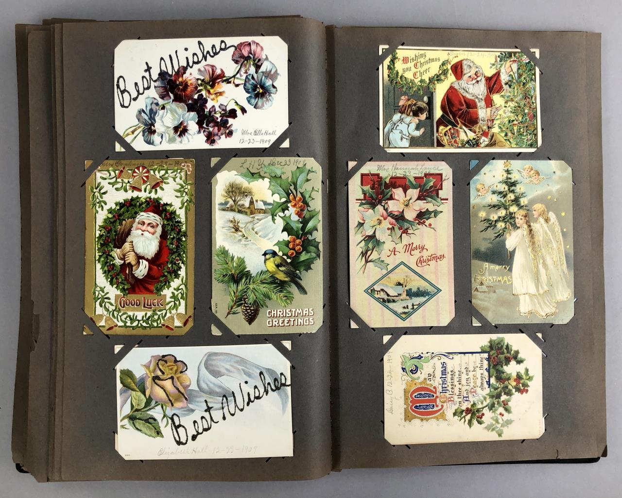 Antique post card album with more than 300 post cards, many real photos, including early baseball, President Taft, Christmas, Fourth of July, Thanksgiving, New York, Washington D.C., Ohio, Illinois, and the lost town of Merle Beach Michigan, supposedly somewhere between