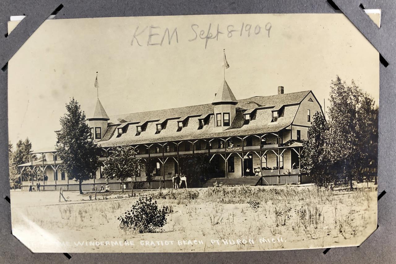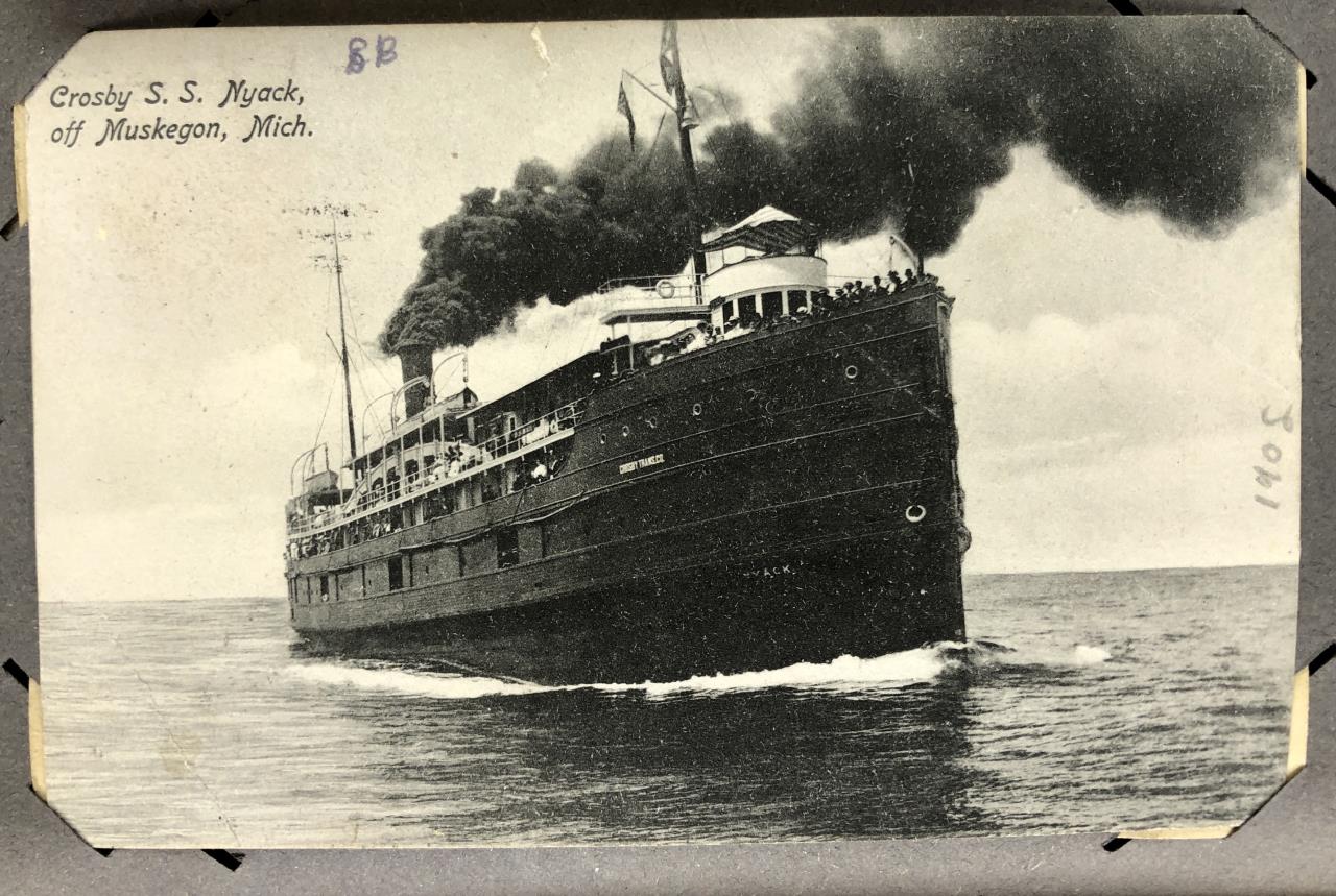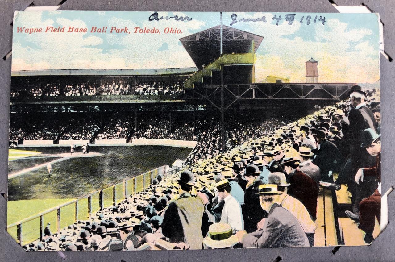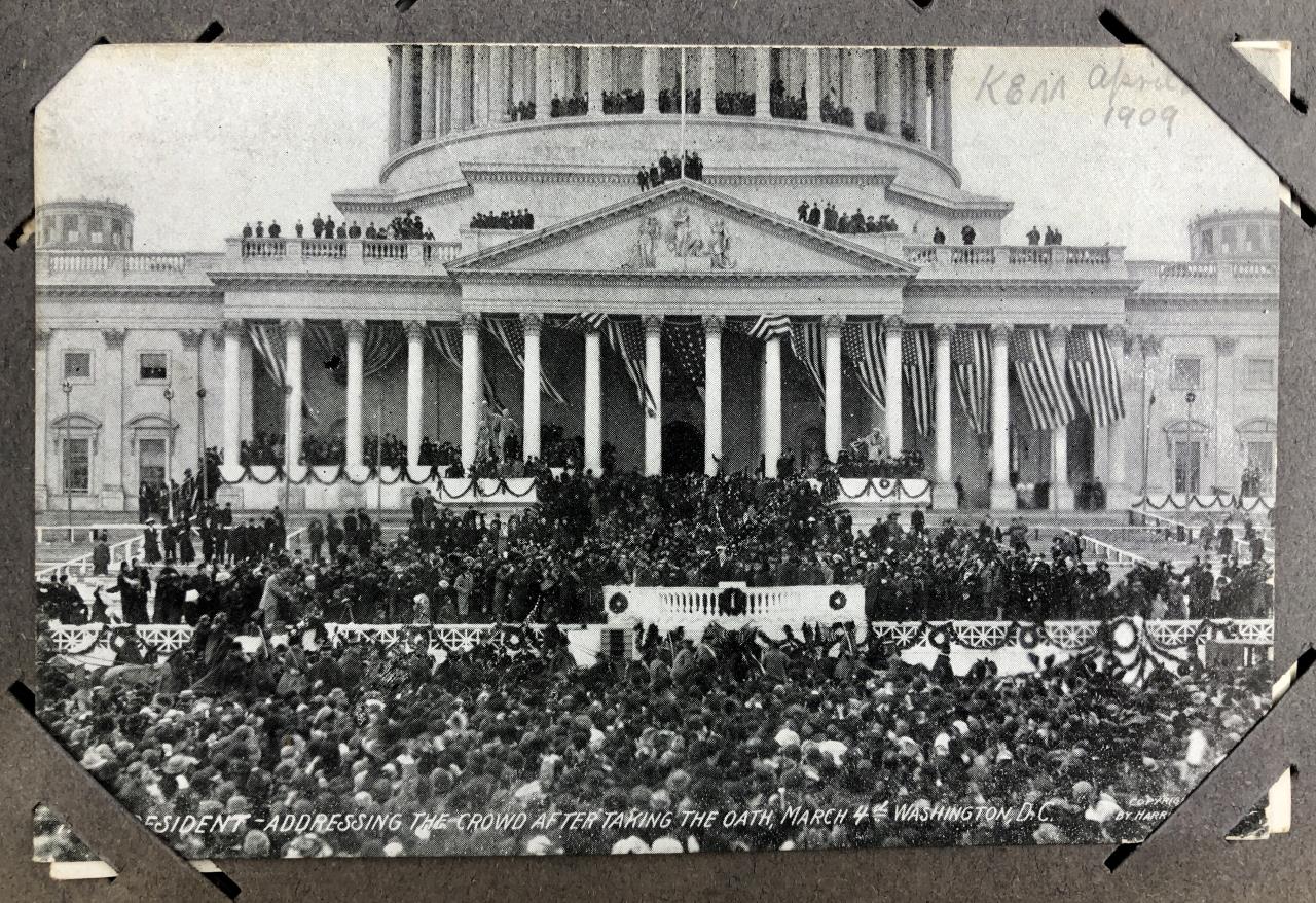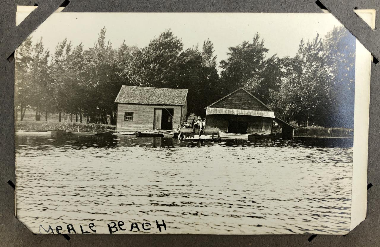 Antique post card album with more than 300 post cards, many real photos, including early baseball, President Taft, Christmas, Fourth of July, Thanksgiving, New York, Washington D.C., Ohio, Illinois, and the lost town of Merle Beach Michigan, supposedly somewhere between