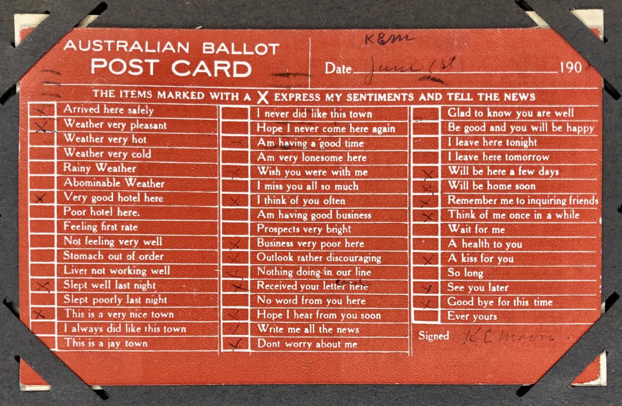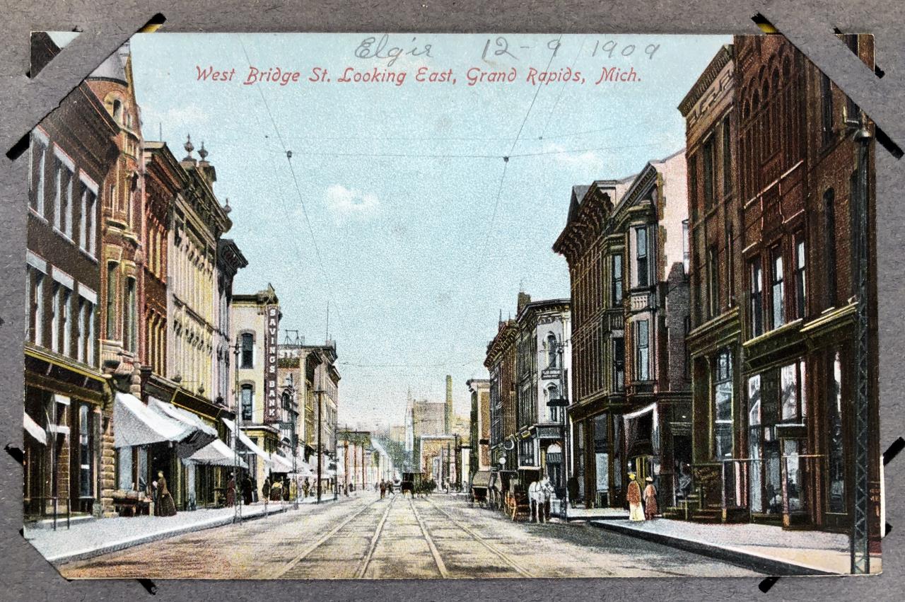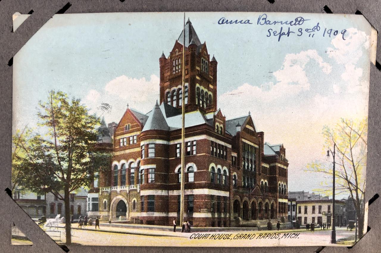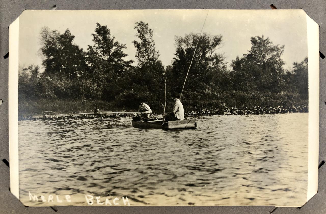 Antique post card album with more than 300 post cards, many real photos, including early baseball, President Taft, Christmas, Fourth of July, Thanksgiving, New York, Washington D.C., Ohio, Illinois, and the lost town of Merle Beach Michigan, supposedly somewhere between