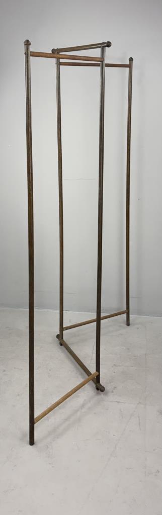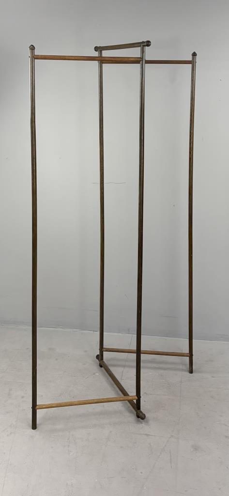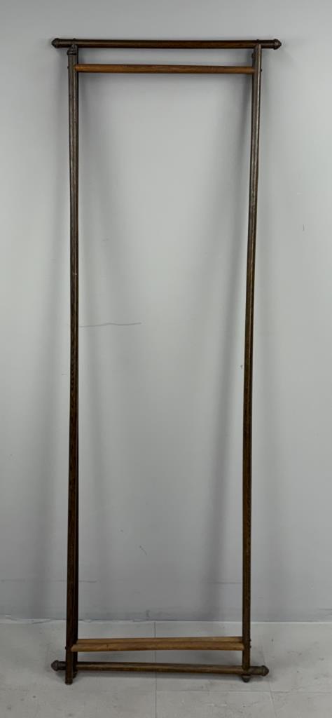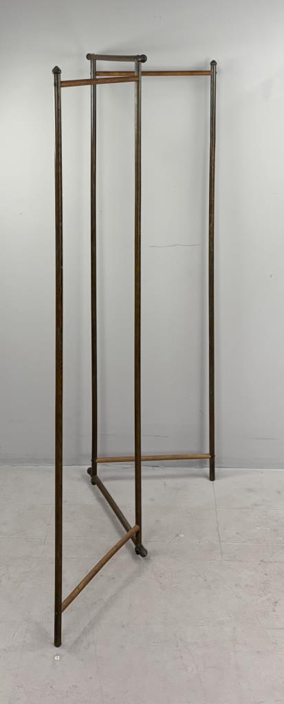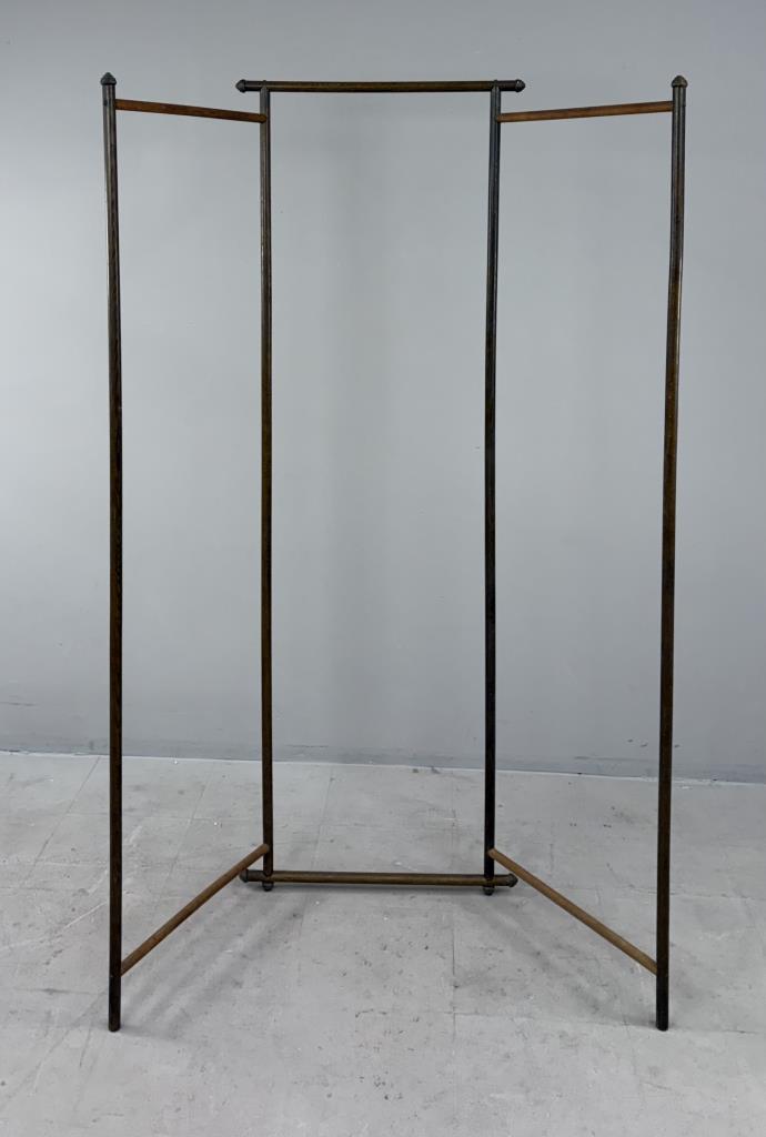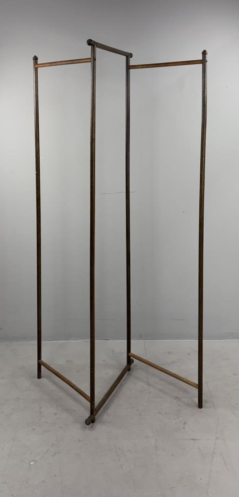 Antique, folding tri-sectional screen or room divider, mixed woods, late 19th / early 20th Century, approximately 58-1/2″ x 67″.