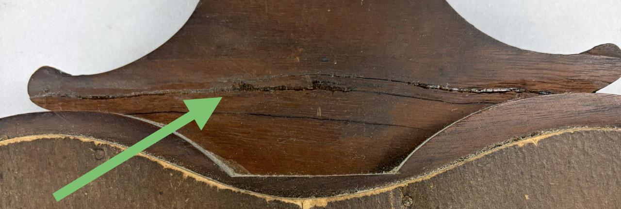 CONDITION: The top carved crest has been broken and repaired, please see photos.