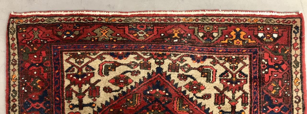 Persian Hamedan rug, hand-knotted, wool pile on a cotton warp and weft, contemporary, approximately 7’1″ x 4’4″.