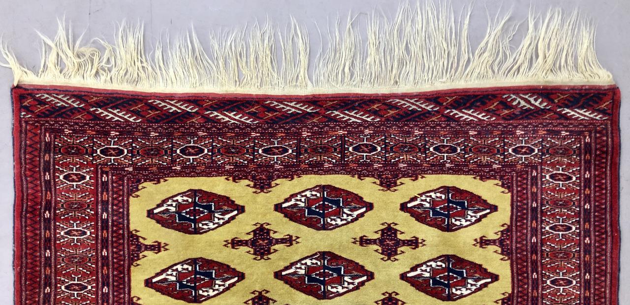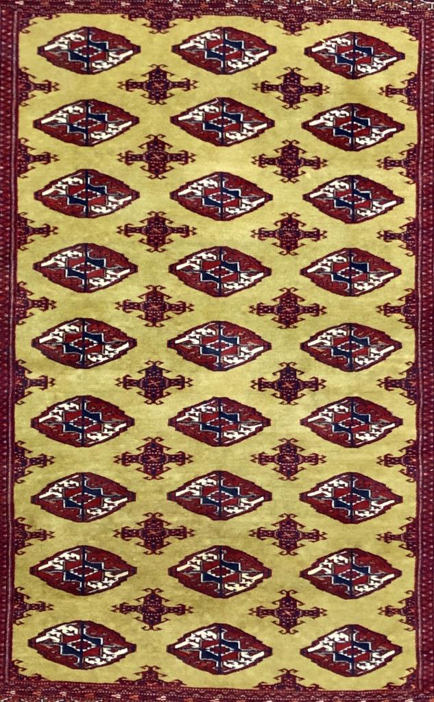 Persian Turkoman Tekke rug, hand-knotted, wool, approximately 5’8″ x 4’4″.