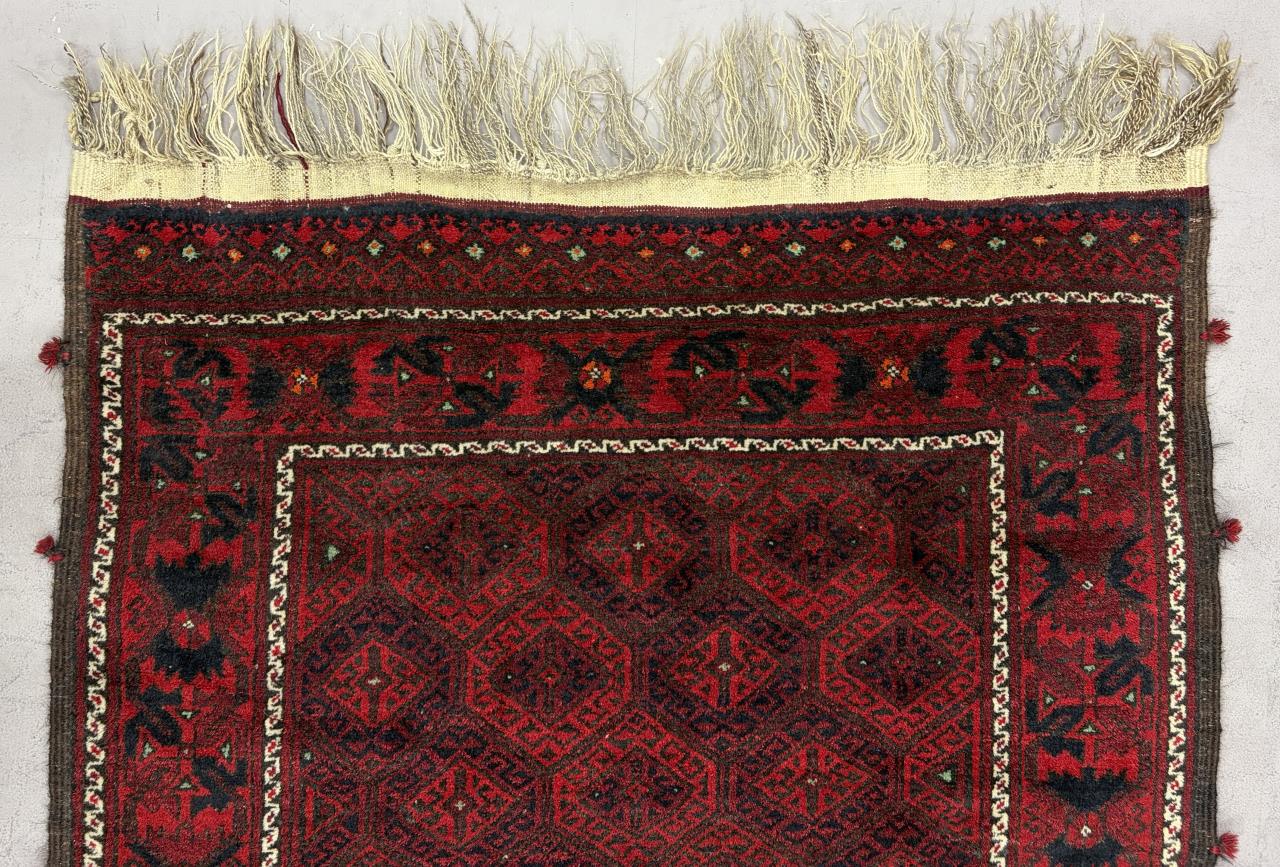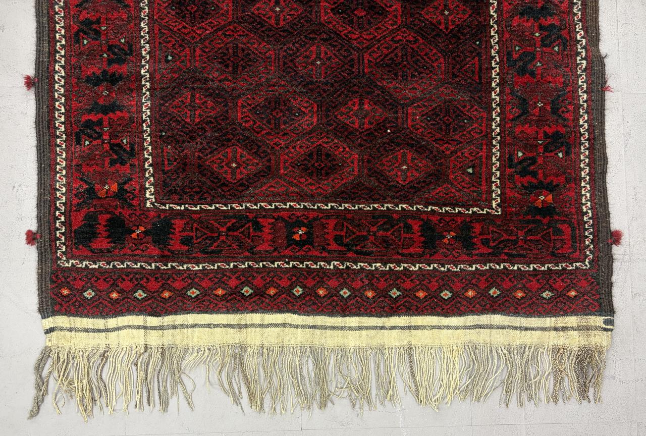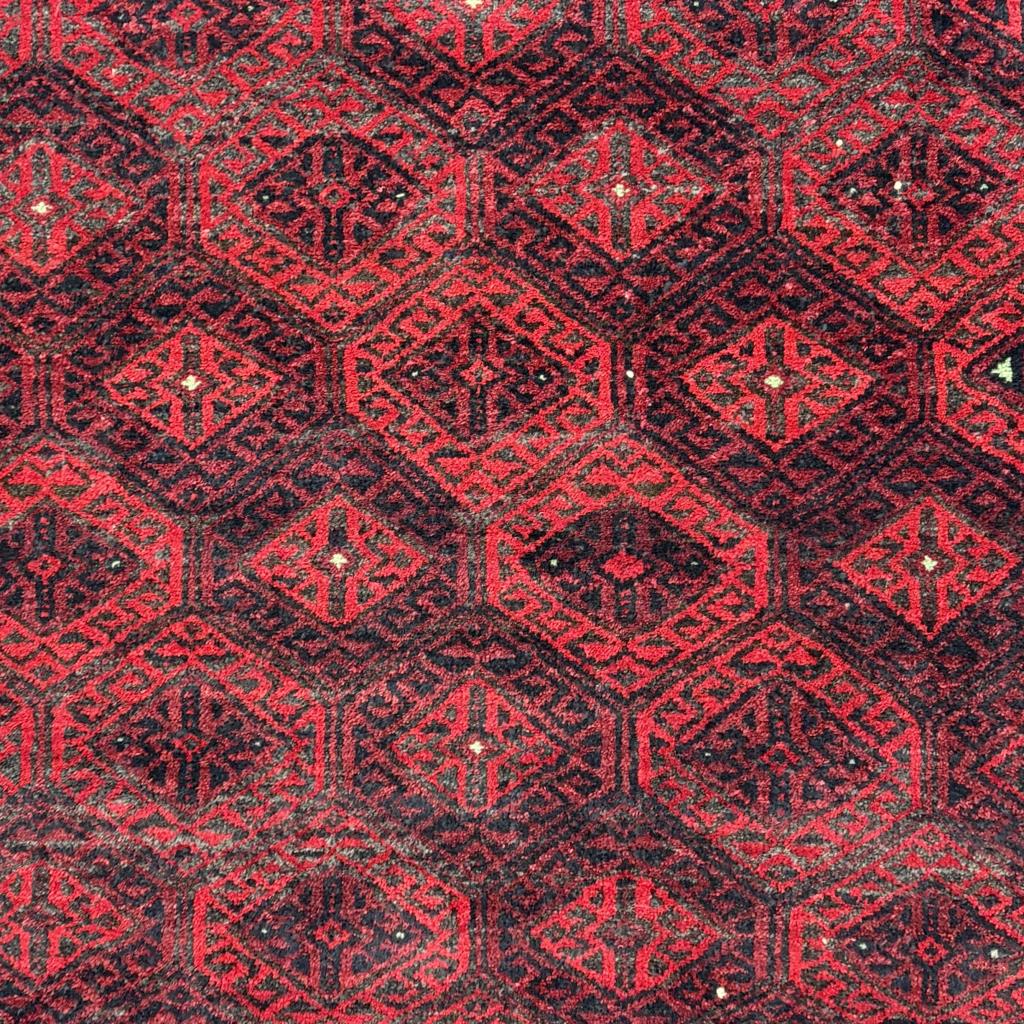 Turkoman Bokhara rug, hand-knotted, wool pile on a cotton warp and weft, contemporary approximately 7’8″ x 3’5″.