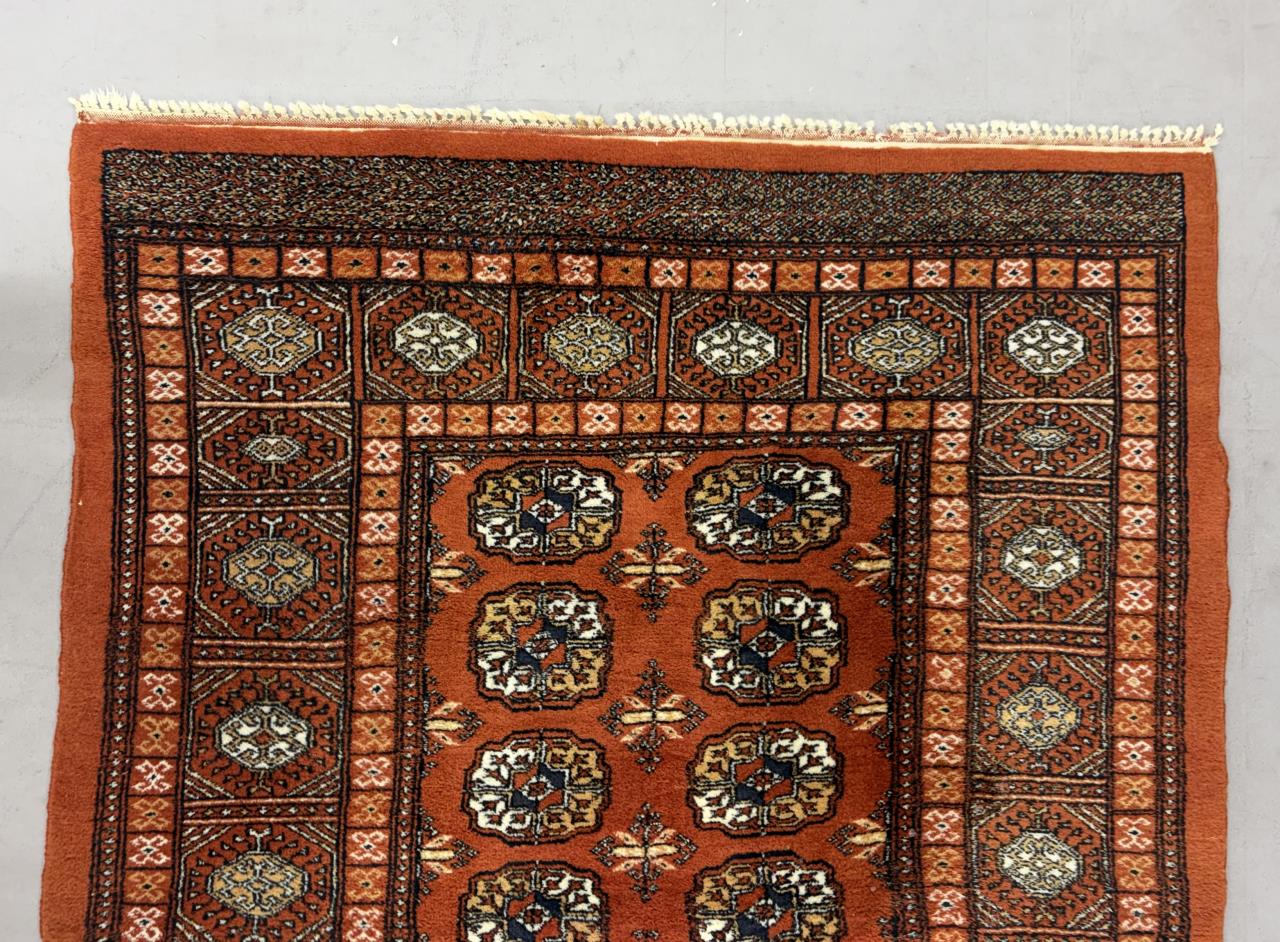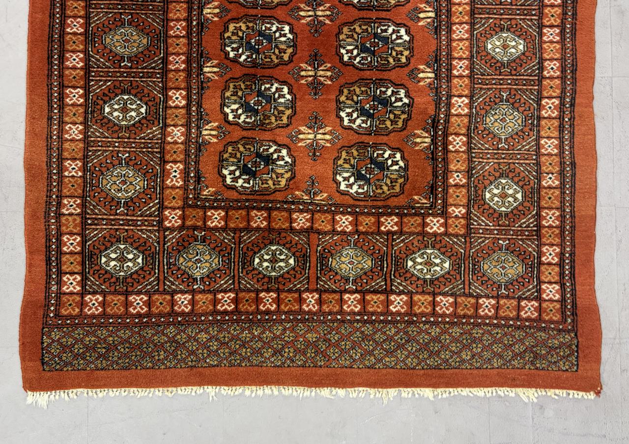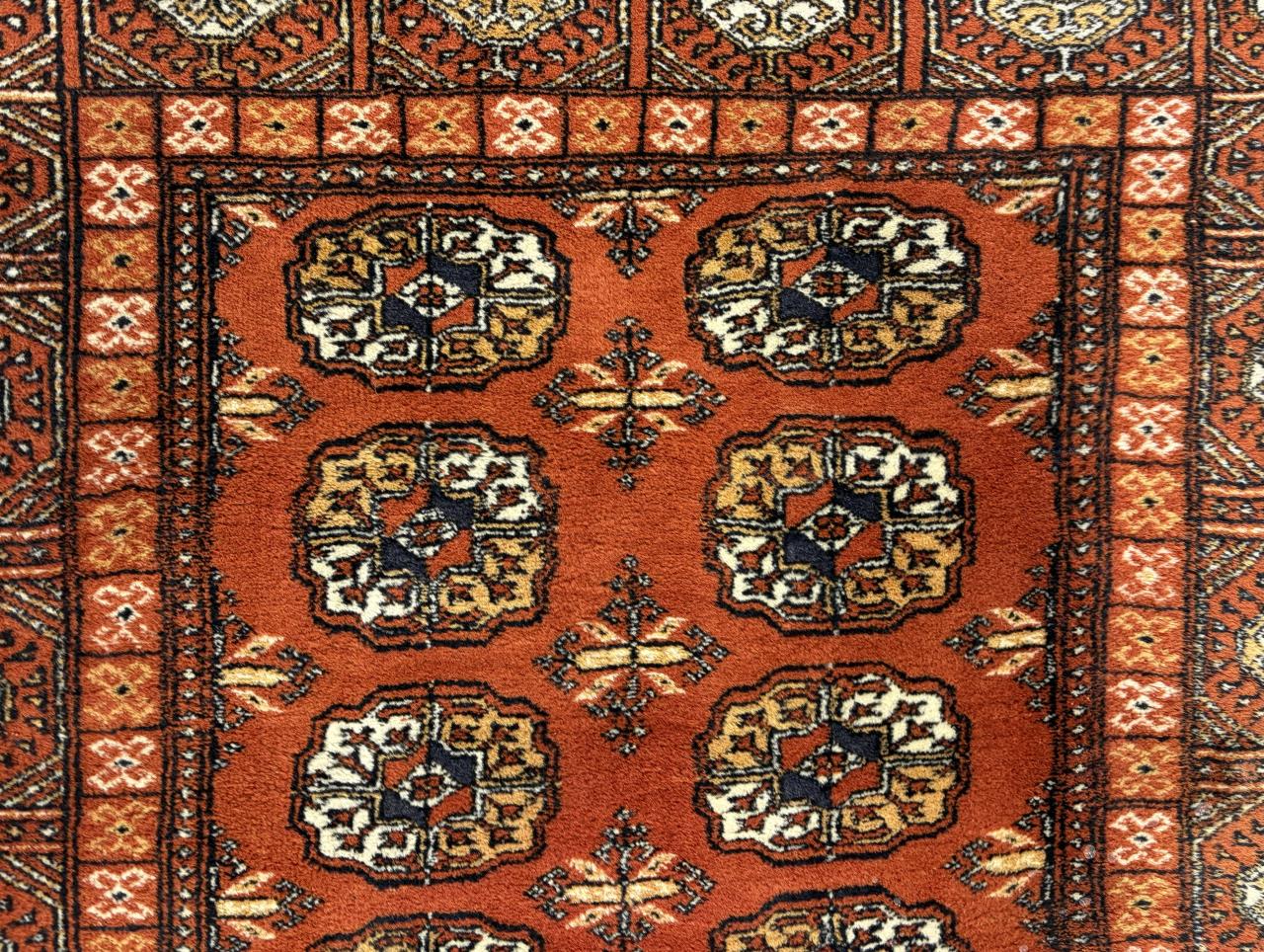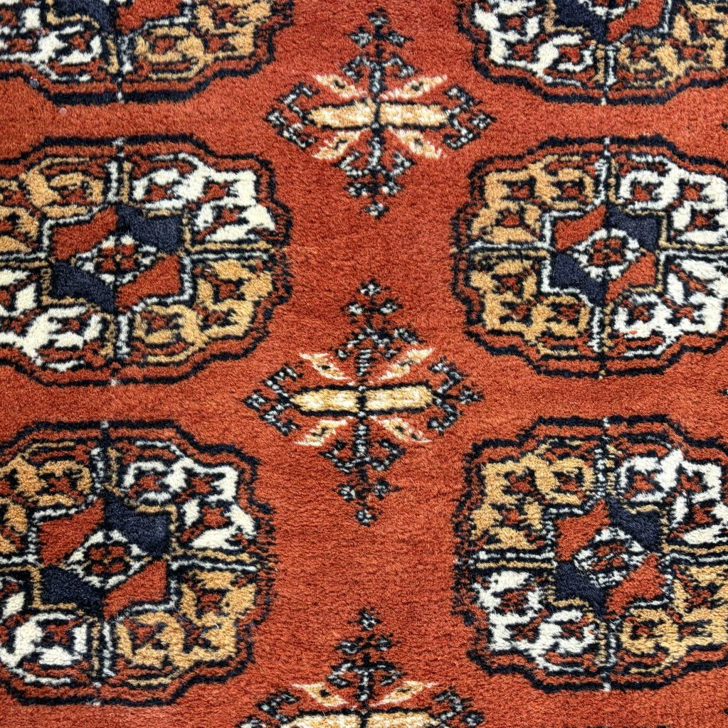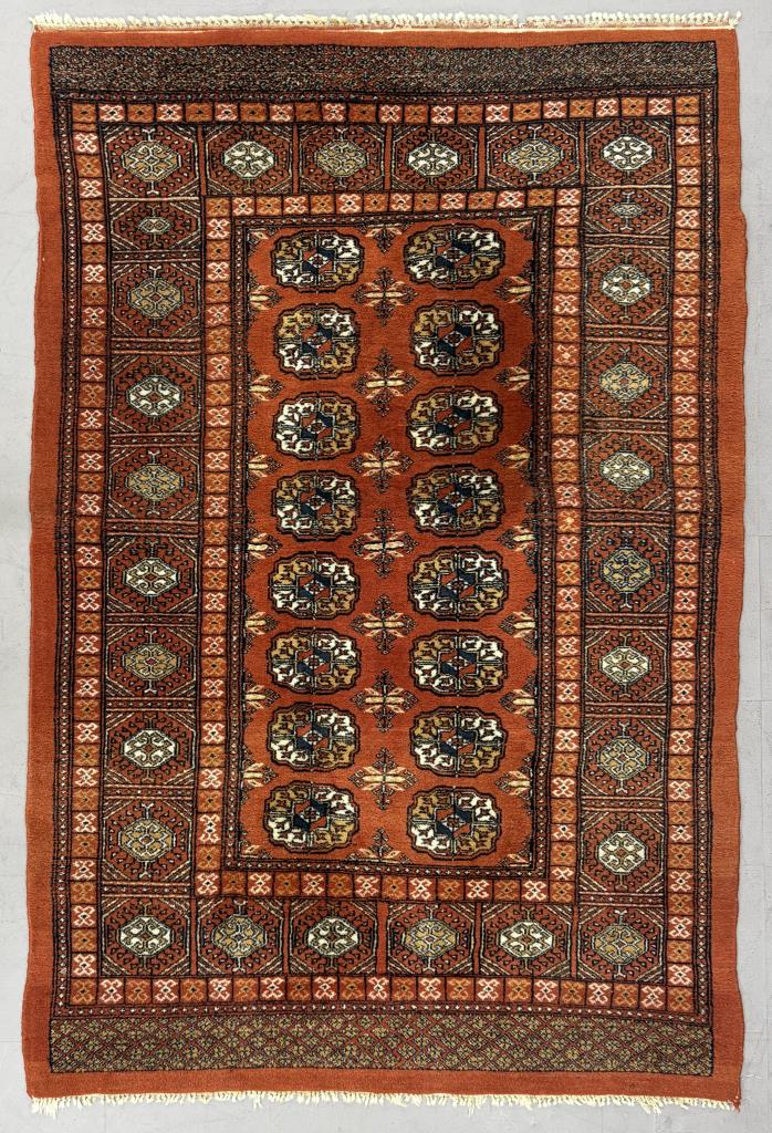 Pakistani Tekke Bokhara rug, hand-knotted, wool pile on a cotton warp and weft, approximately 6’6″ x 4’4″.