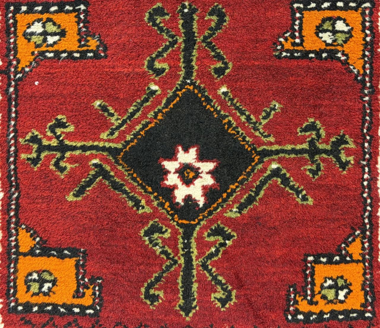 Turkish Yastik rug, hand-knotted, wool pile on a cotton warp and weft, contemporary, approximately 2’11” x 1’11”.