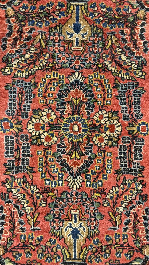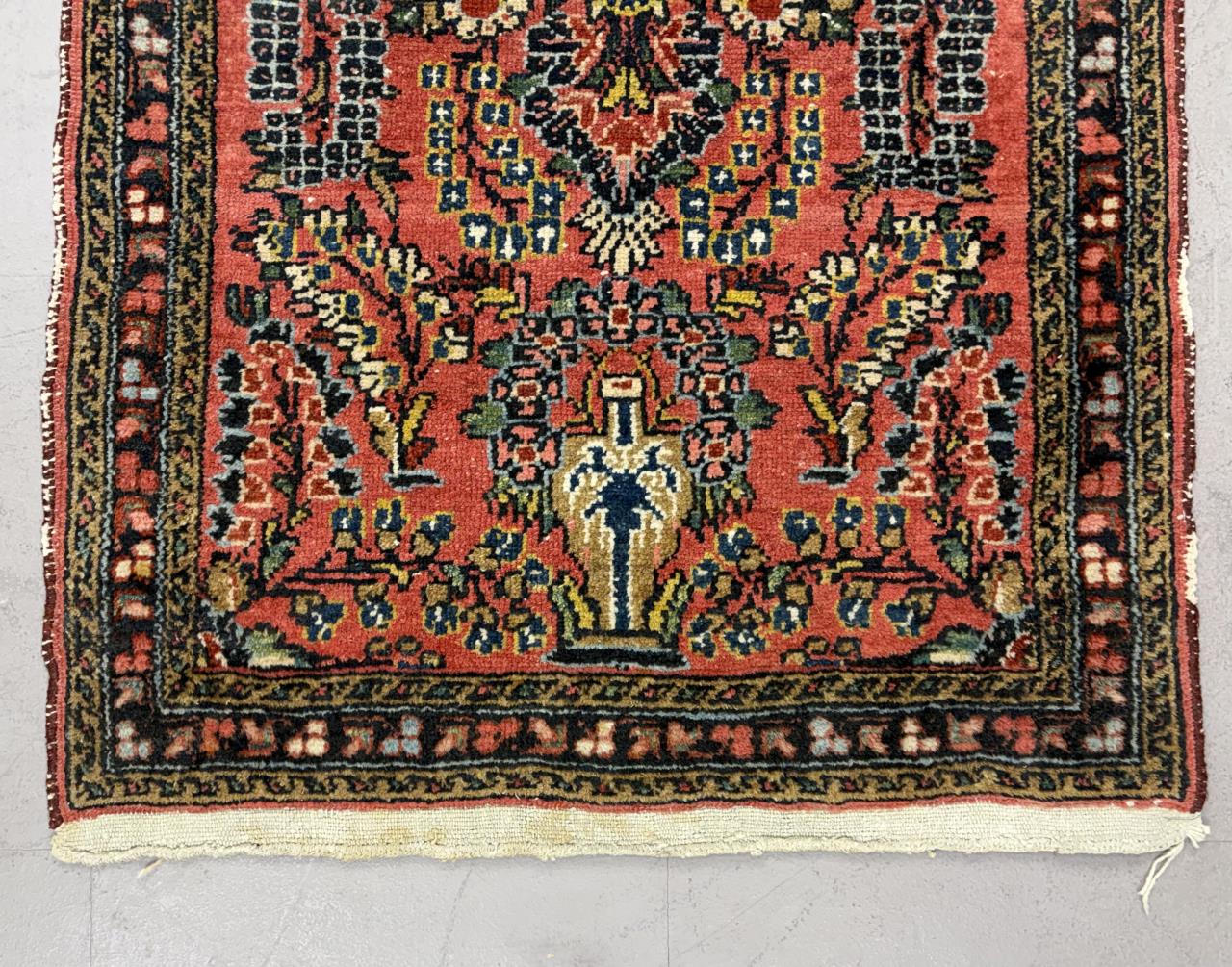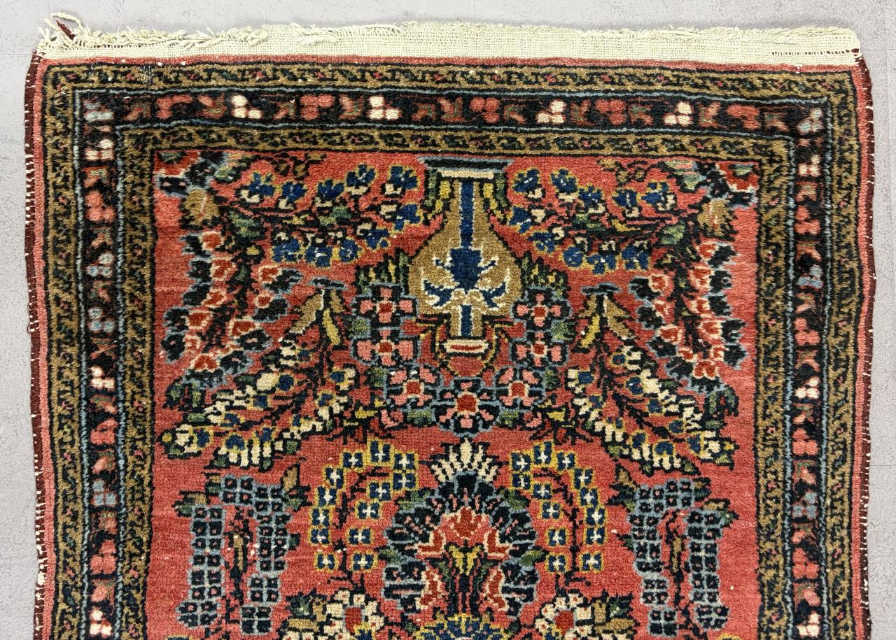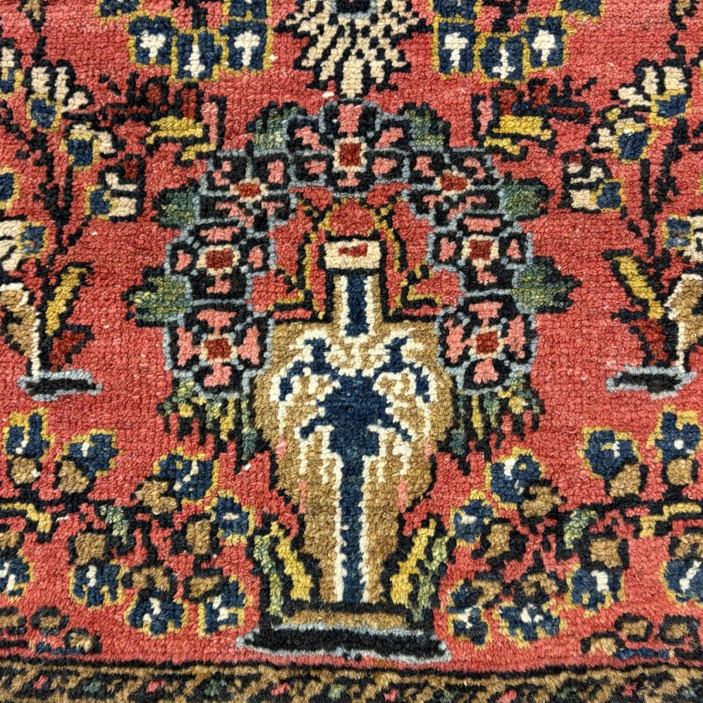 Persian Senna Kurd rug, hand-knotted, wool pile on a cotton warp and weft, circa late 1940s, approximately 3′ x 2′.
