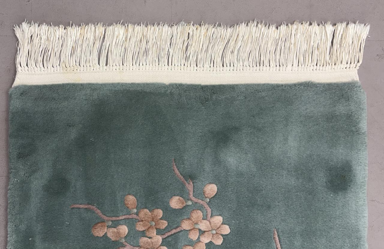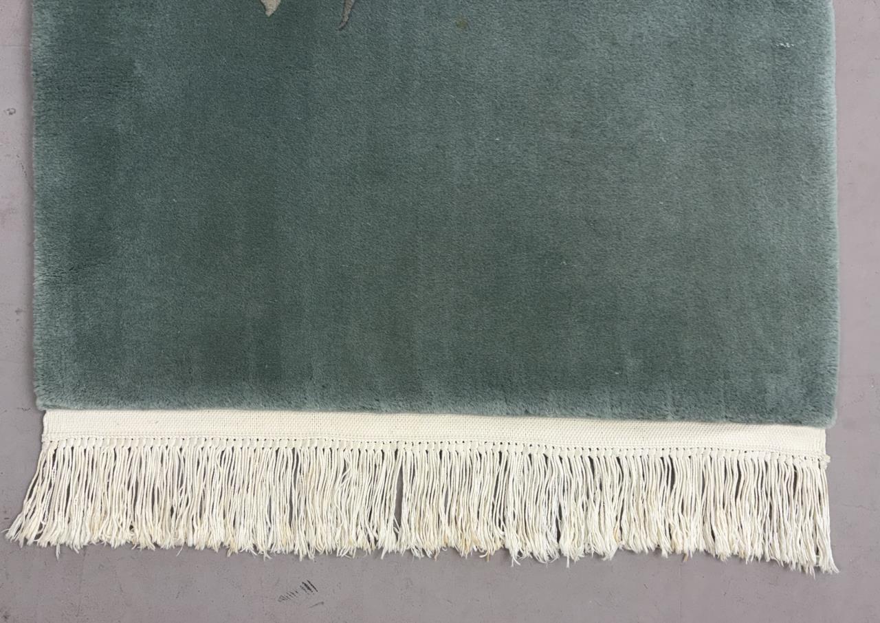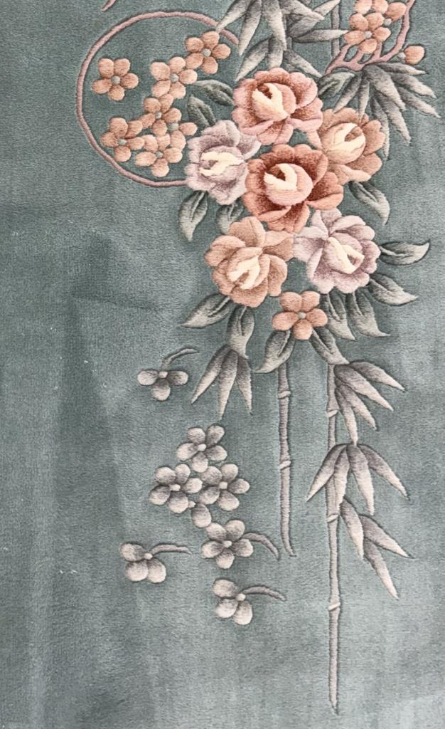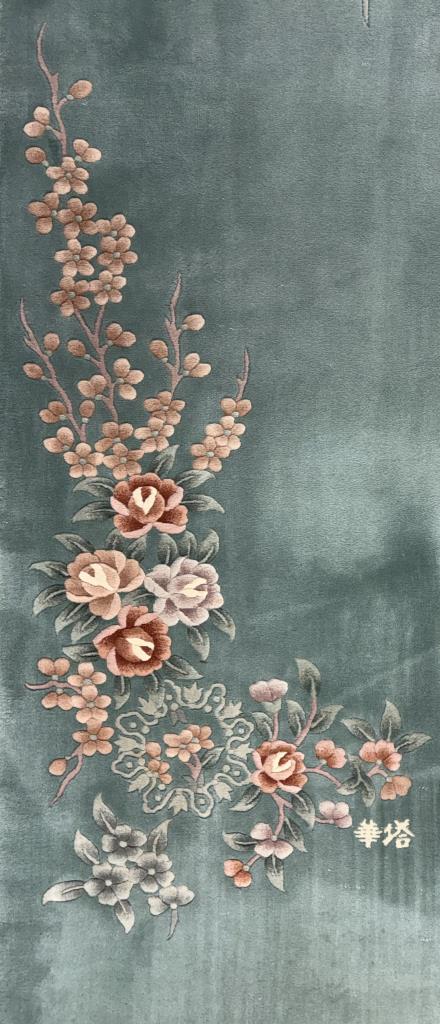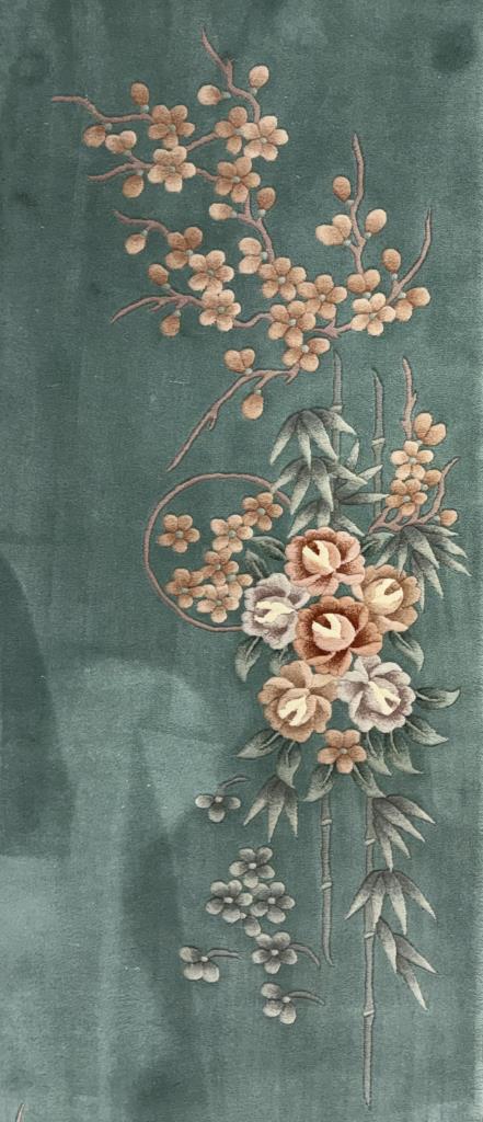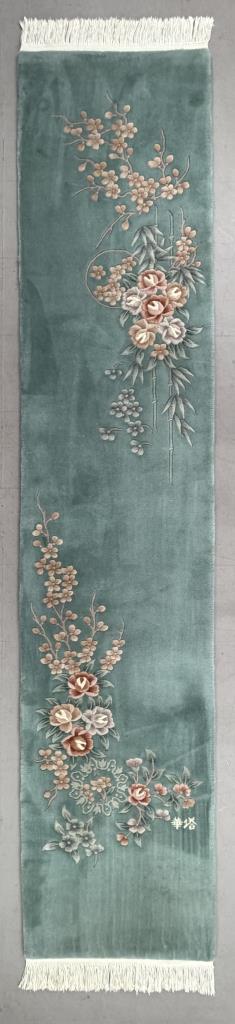 Indo-Chinese Aubusson style runner, hand-knotted, wool pile on a cotton warp and weft, approximately 12′ x 2’6″.