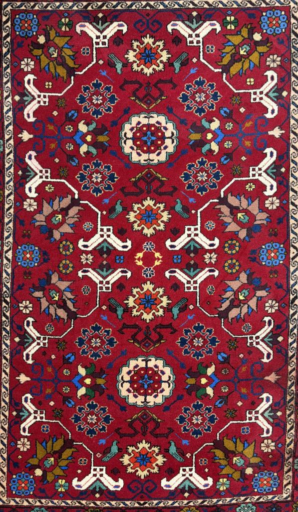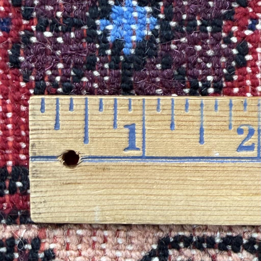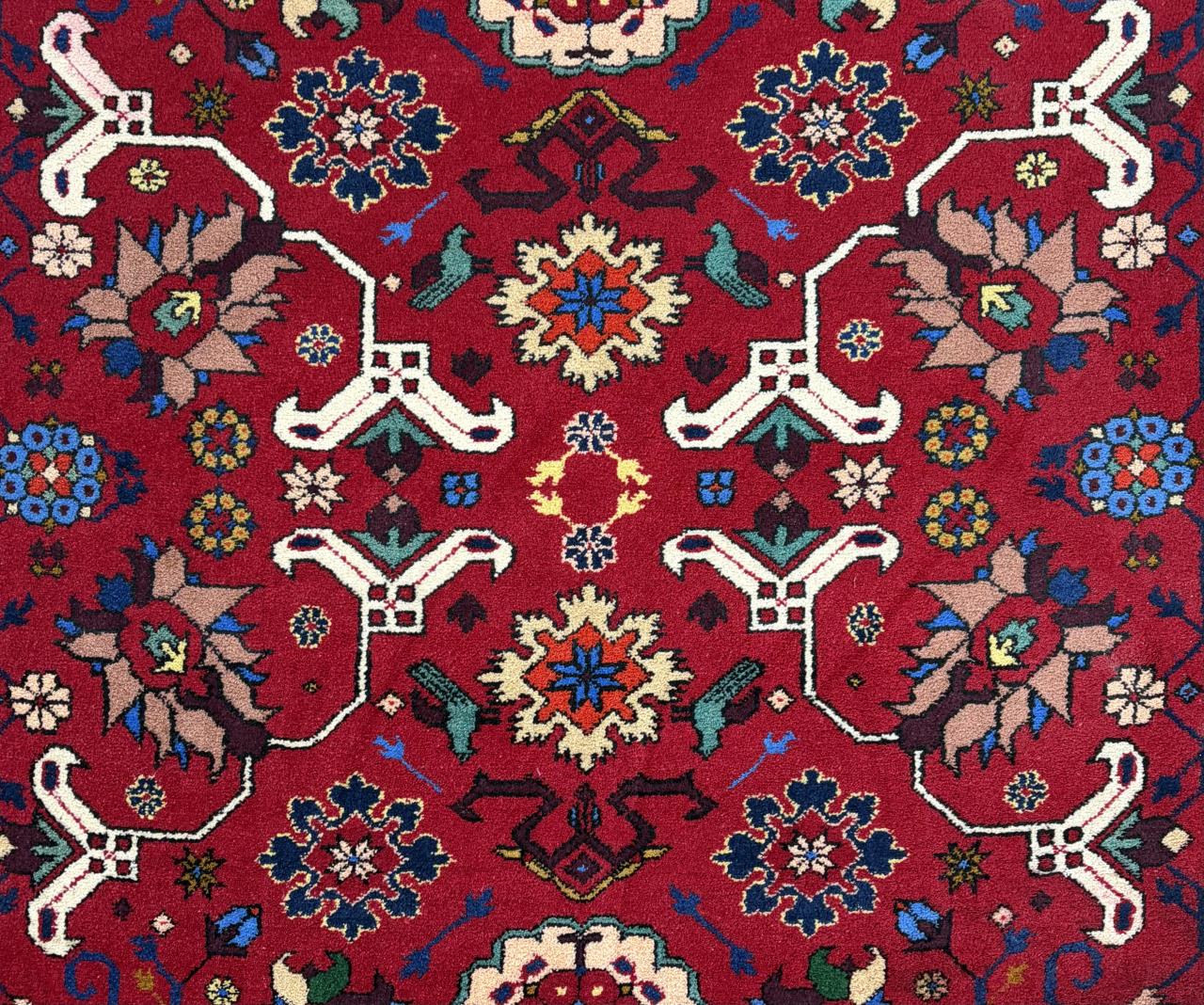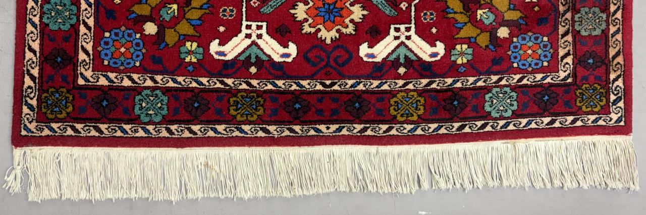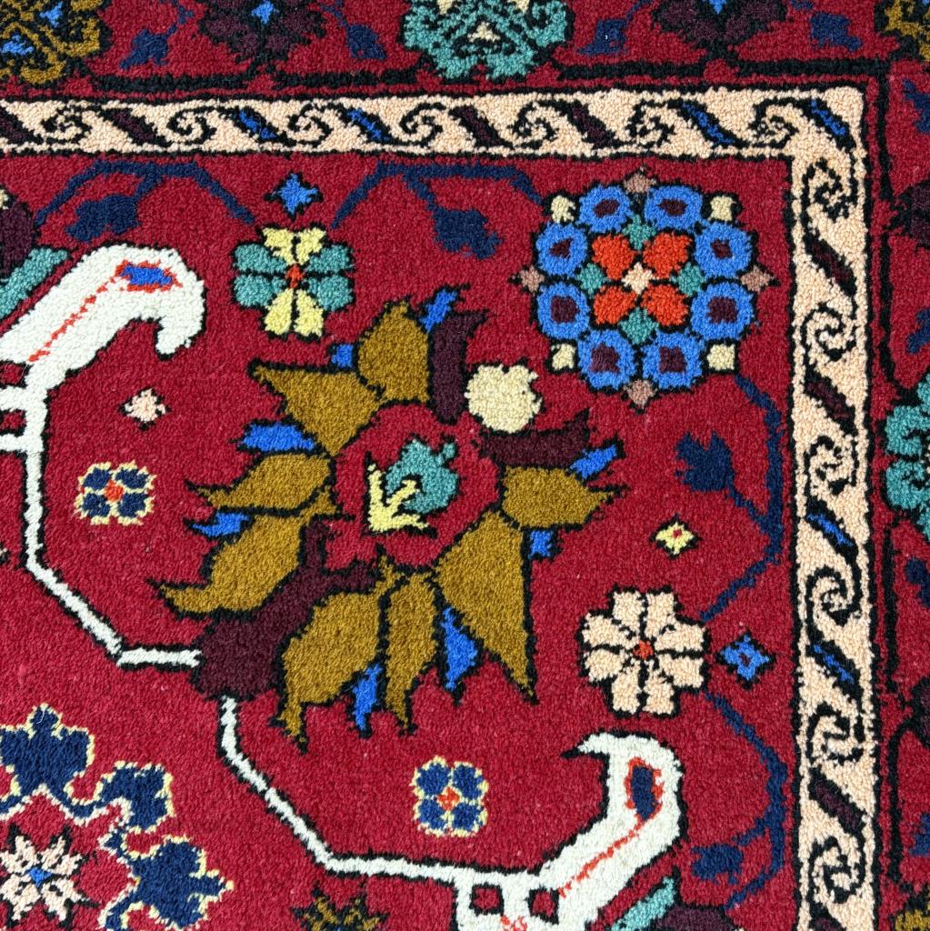 Pakistani rug, hand-knotted, wool pile on a cotton warp and weft, approximately 7’4″ x 4’10”.