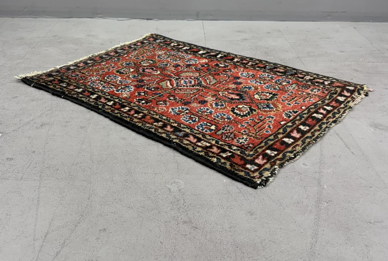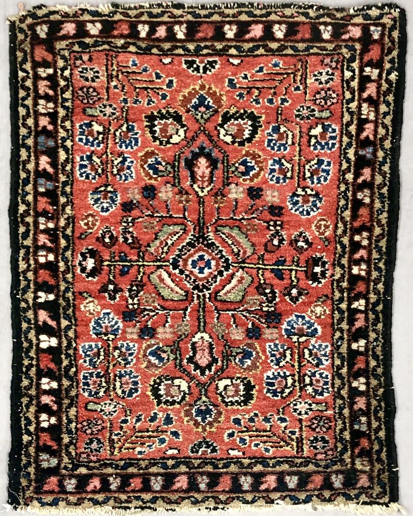 Persian Lilihan rug, hand-knotted, wool pile on a cotton warp and weft, circa 1940s, approximately 2’8″ x 2′.