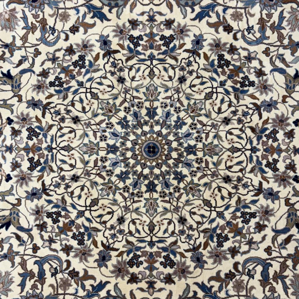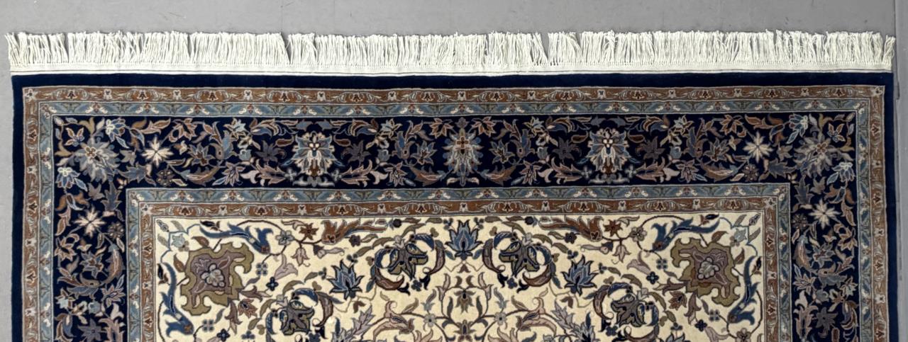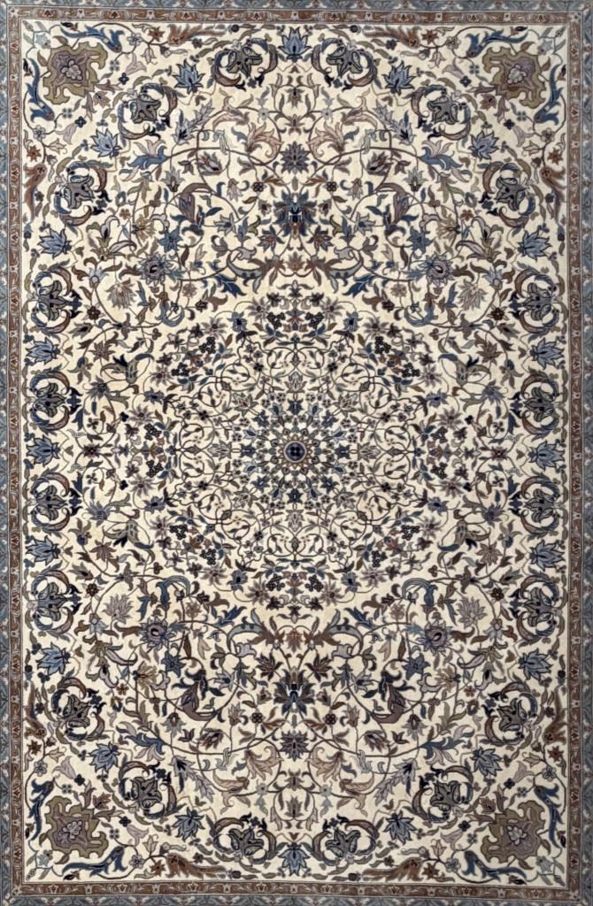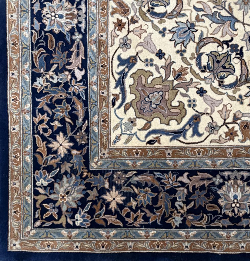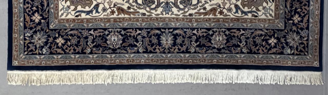 Indo-Persian Nain style rug, hand-knotted, wool pile on a cotton warp and weft, approximately 12’8″ x 7’6″.