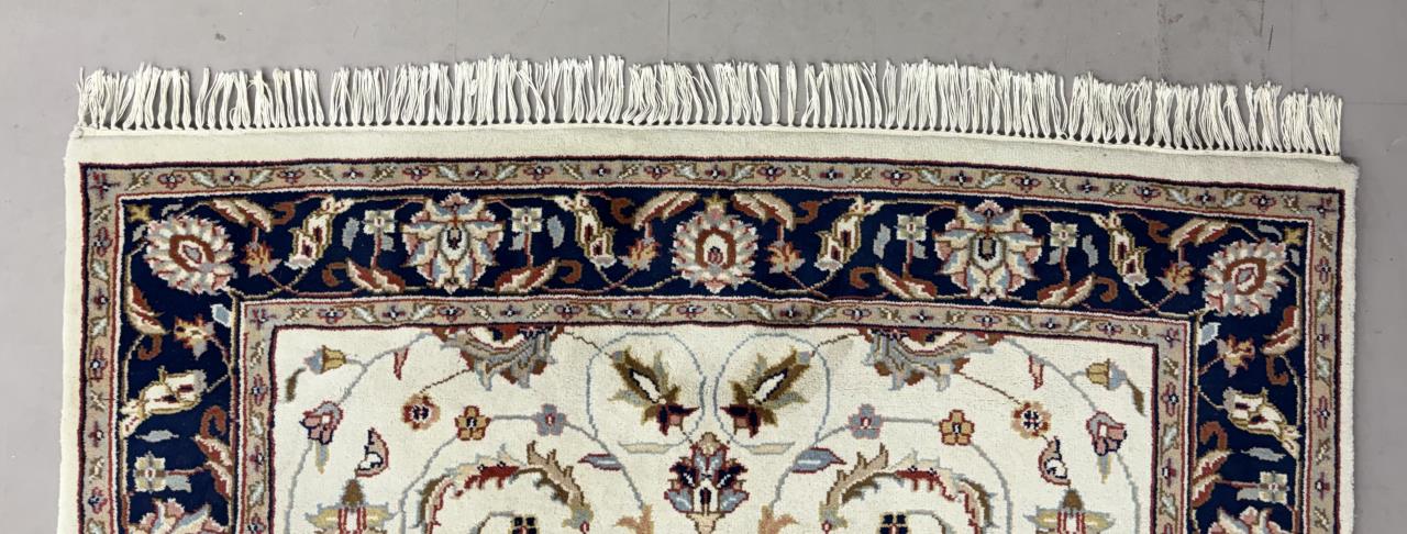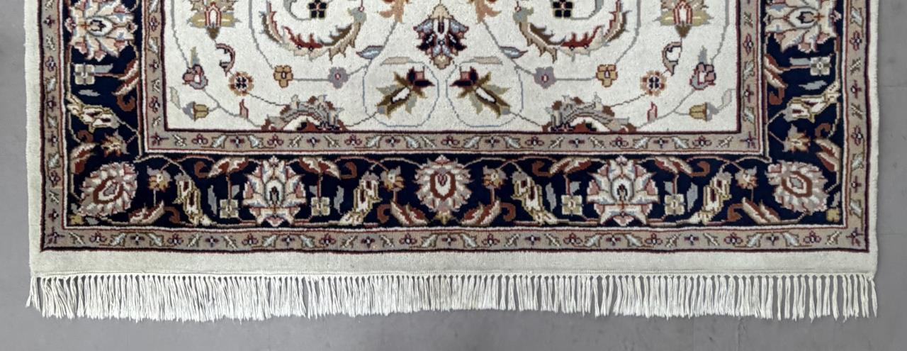 Indo Persian Kashan rug, hand-knotted, wool pile on a cotton warp and weft, contemporary, approximately 9’1″ x 6′.