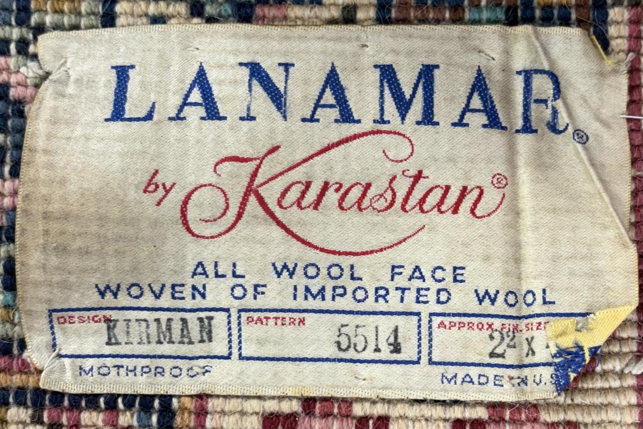 Lanamar by Karastan (Eden, North Carolina) “Kirman” (#5514) style wool rug, machine-made, approximately 4′ x 2’2″.