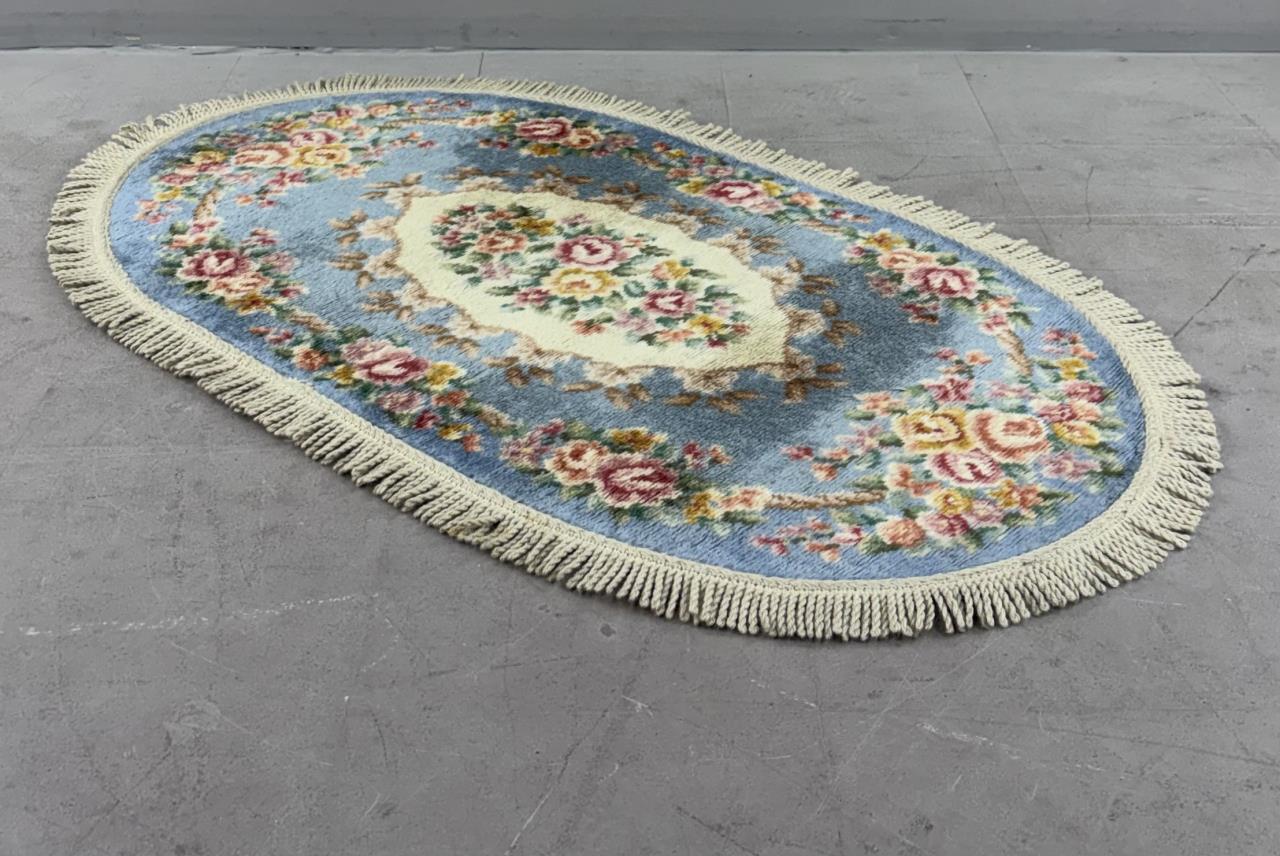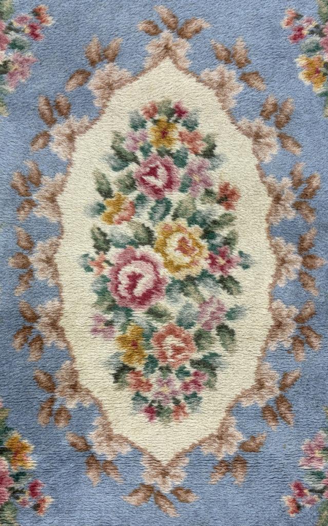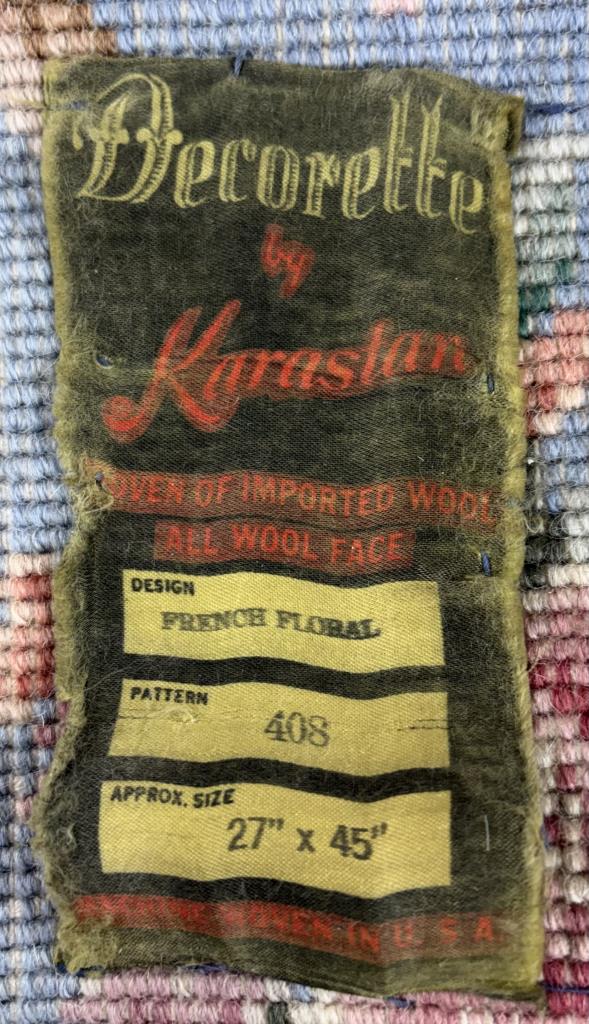 Decorette by Karastan (Eden, North Carolina) “French Floral” (#408) style wool rug, machine-made, approximately 3’9′ x 2’1″.