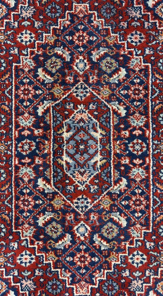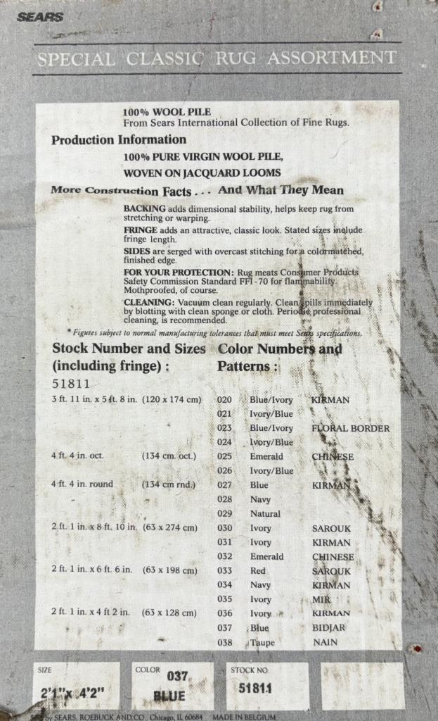 Pair of Belgian Kirman style wool rugs, made for Sears, Roebuck, and Company, machine-made, each measuring approximately 3’6″ x 2′.