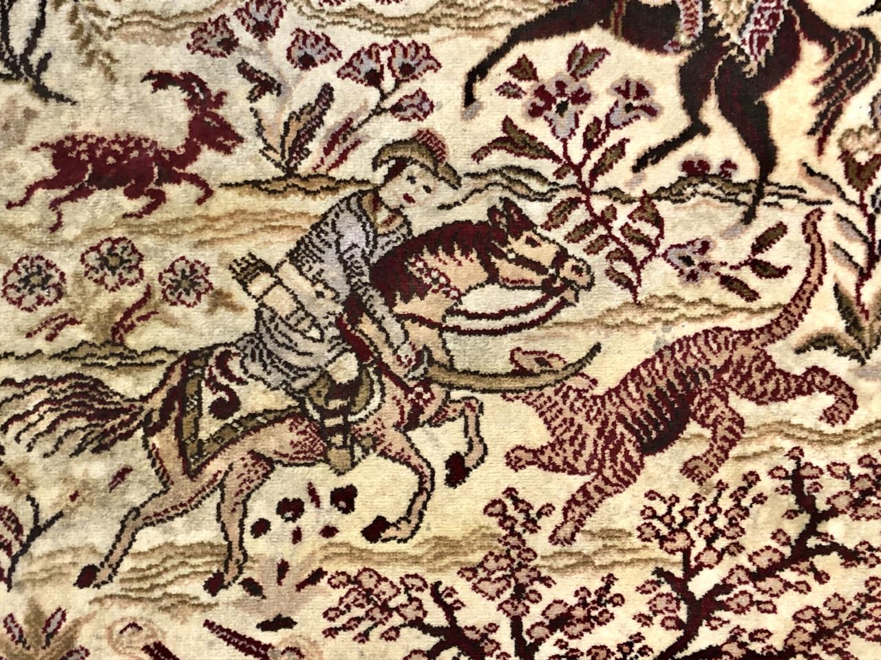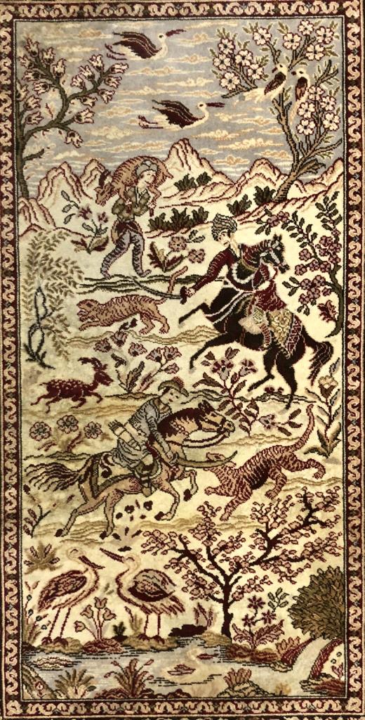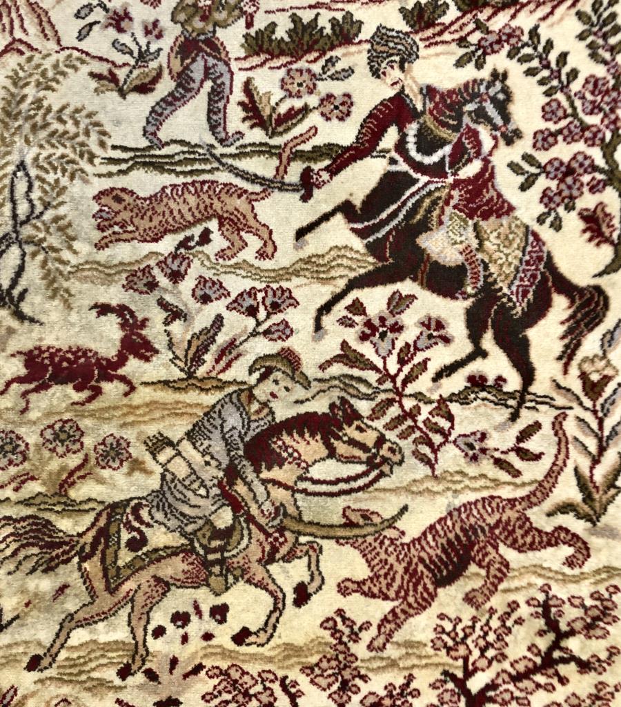 Belgian Wool Rug Persian Hunting Scene 4'3"x2'8"