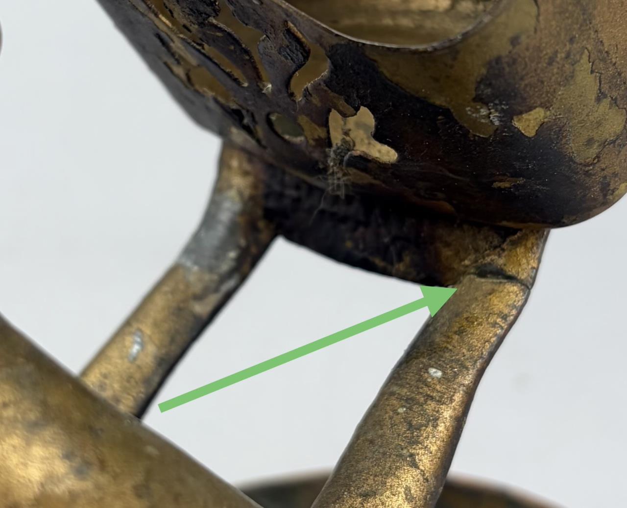 CONDITION: Flaking and loss of paint in areas, crack at right wrist on underside, please see photos