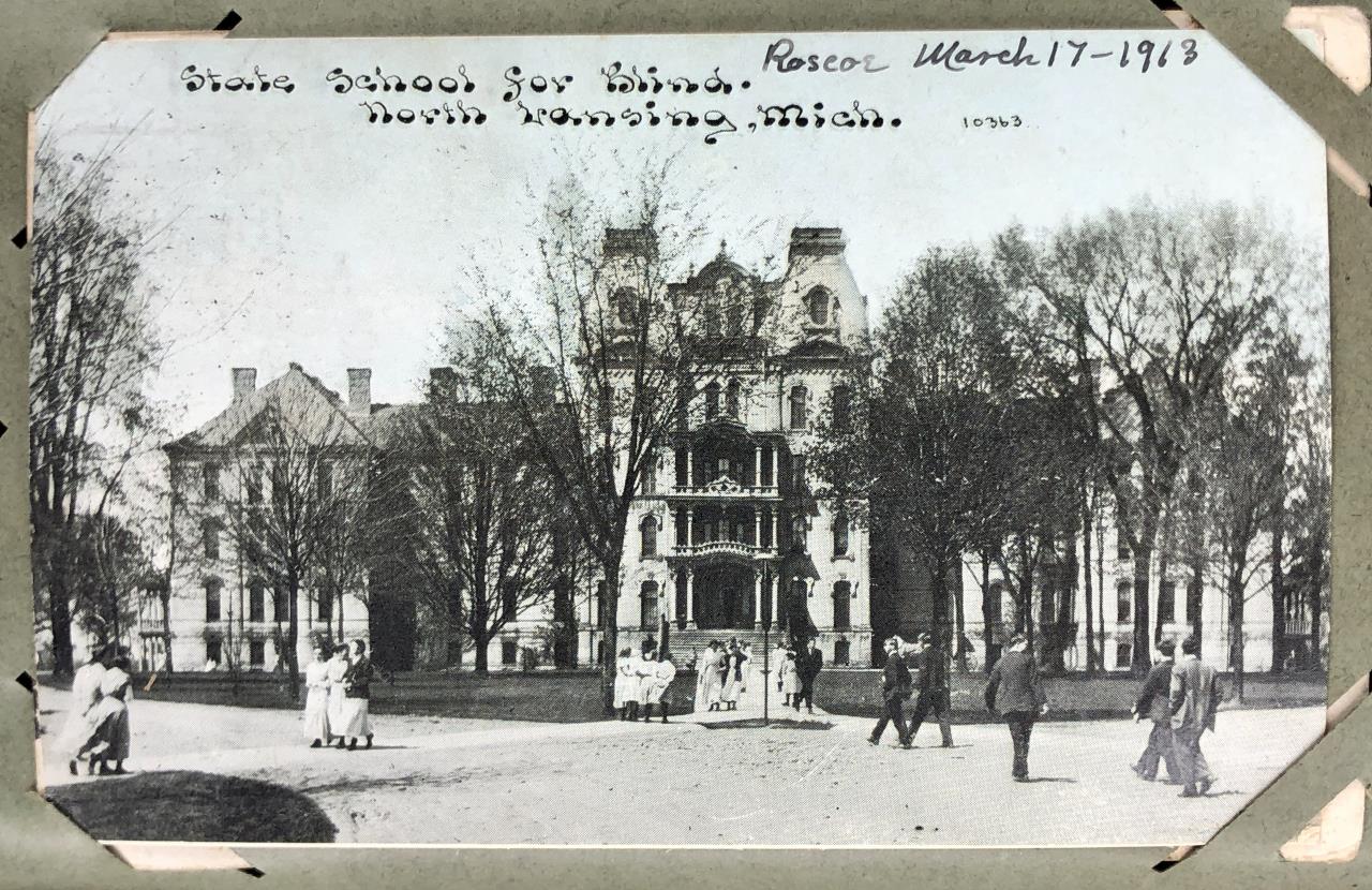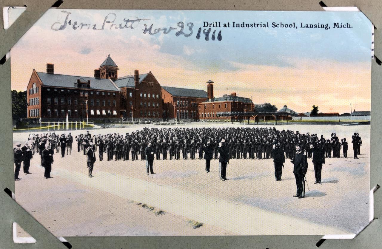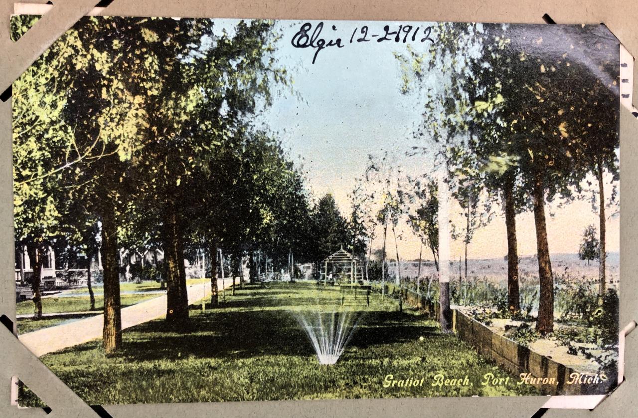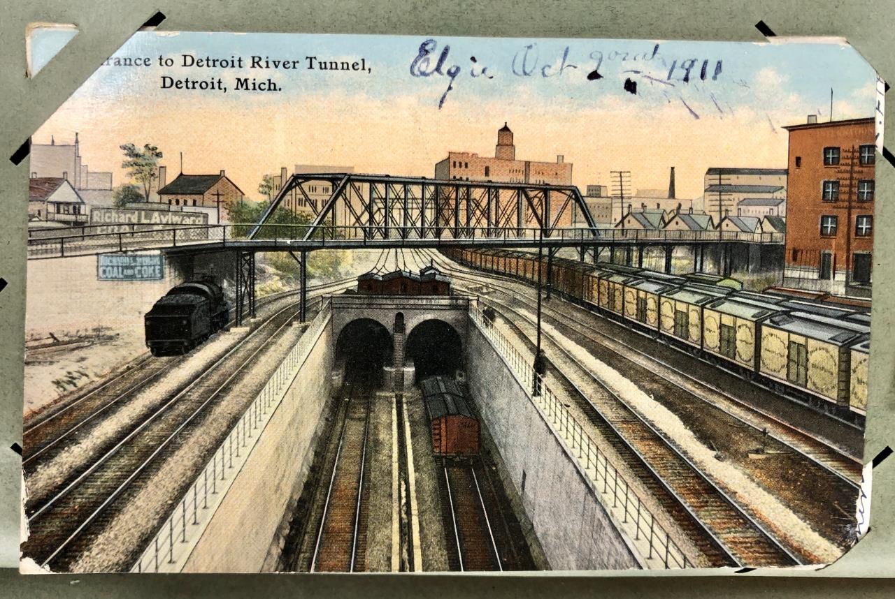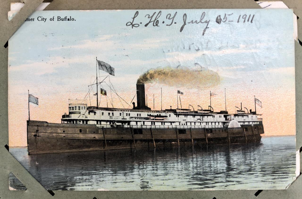 Antique post card album with almost 500 post cards, some real photos, New Year’s, Christmas, Fourth of July, Thanksgiving, Detroit, Grand Ledge, Michigan Agriculture College (Michigan State University), Lansing, Michigan, West Virginia, Ohio, stream ships, Washington D.C., Boston, and many more, circa 1905-1915