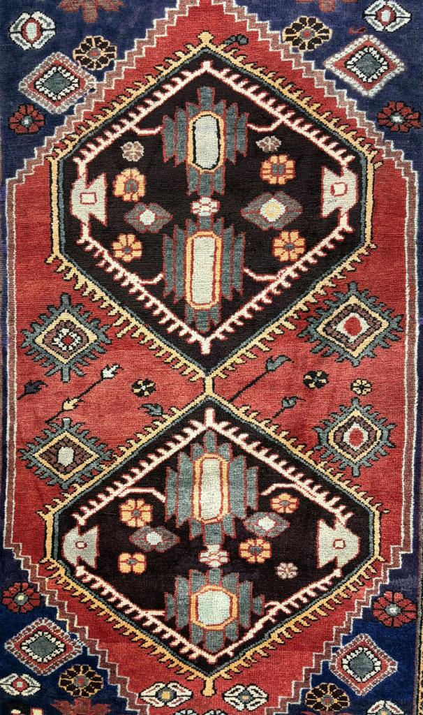 Pakistani rug, hand-knotted, wool pile on a cotton warp and weft, contemporary, approximately 6’8″ x 3’8″.
