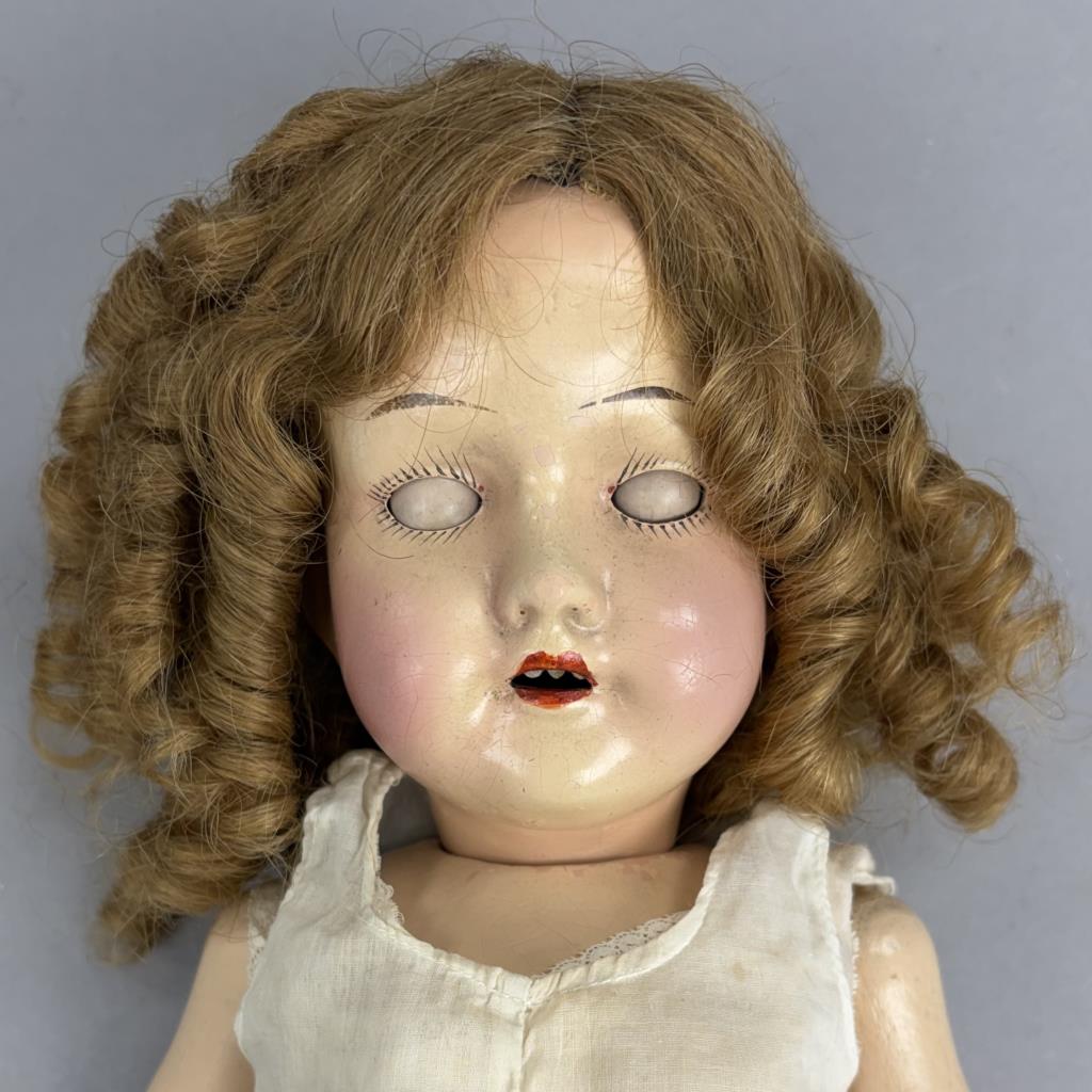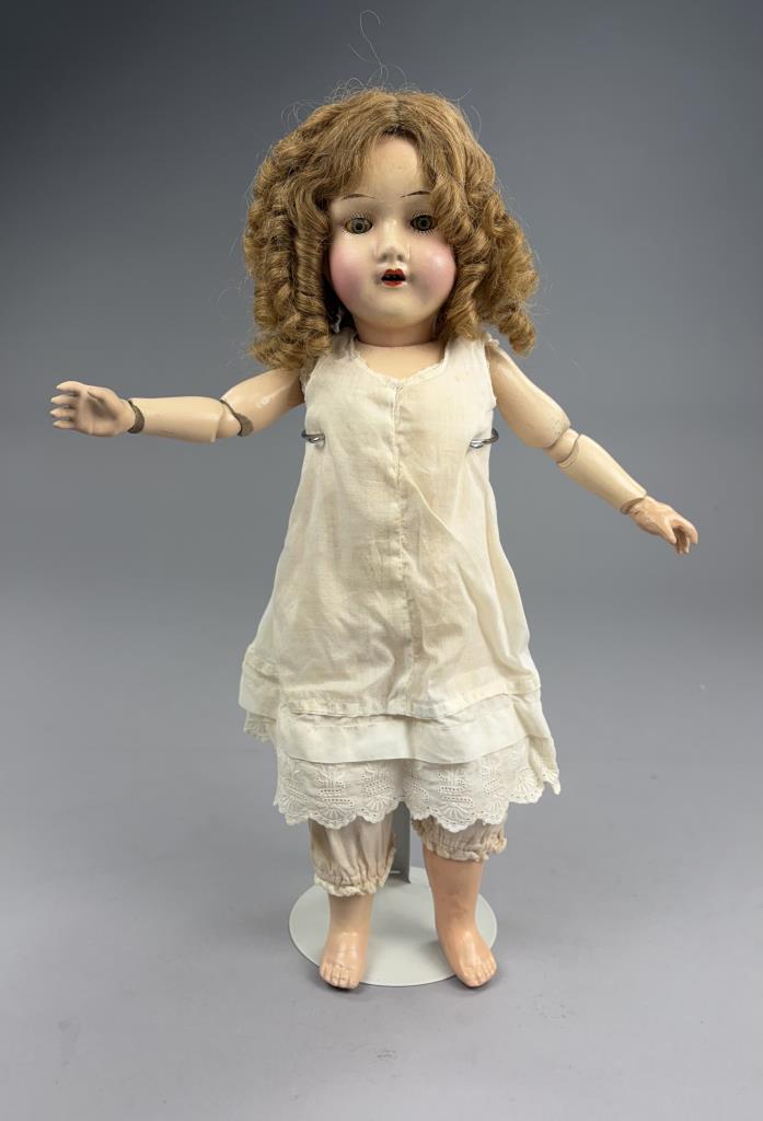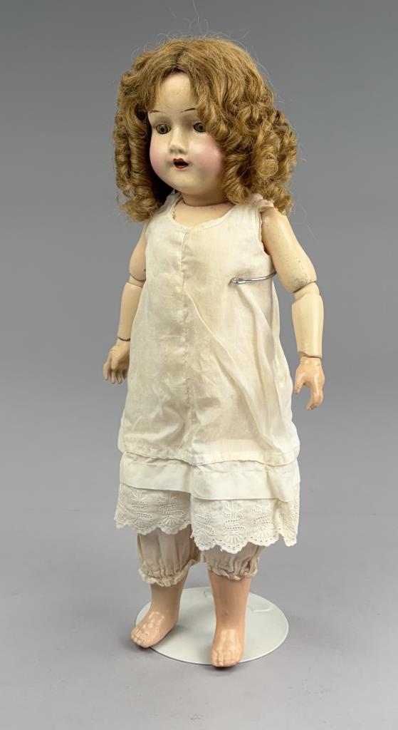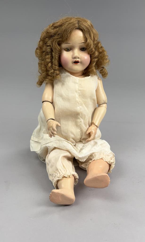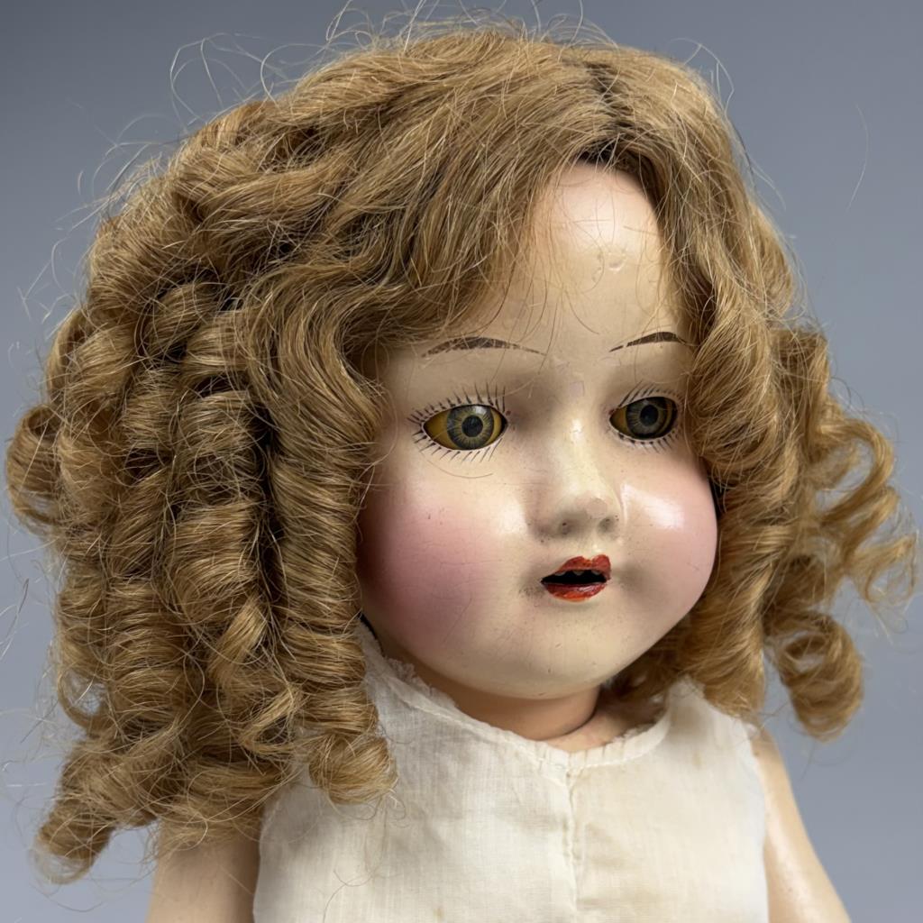 TRECO – The Reliable Toy Company (Canada / USA), composition jointed doll with sleep eyes, circa 1920s, 18″ (L).