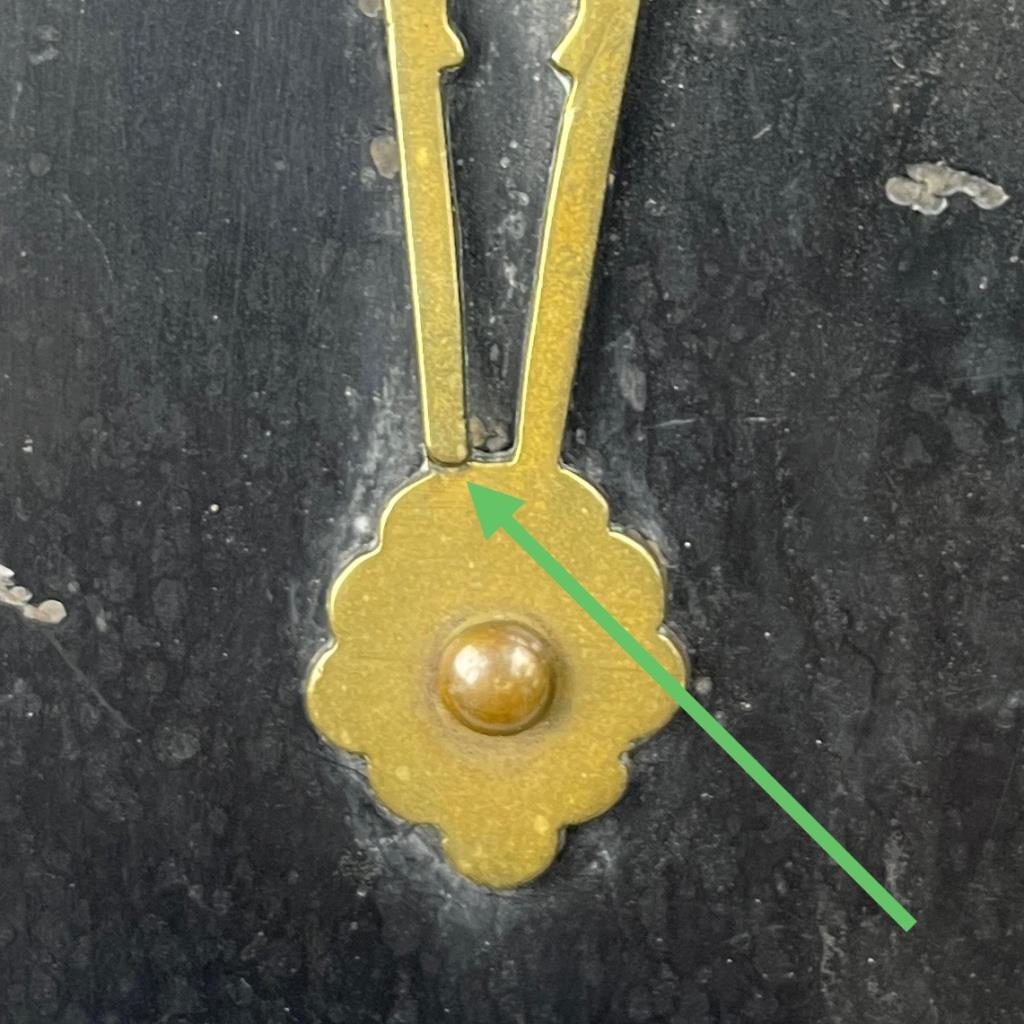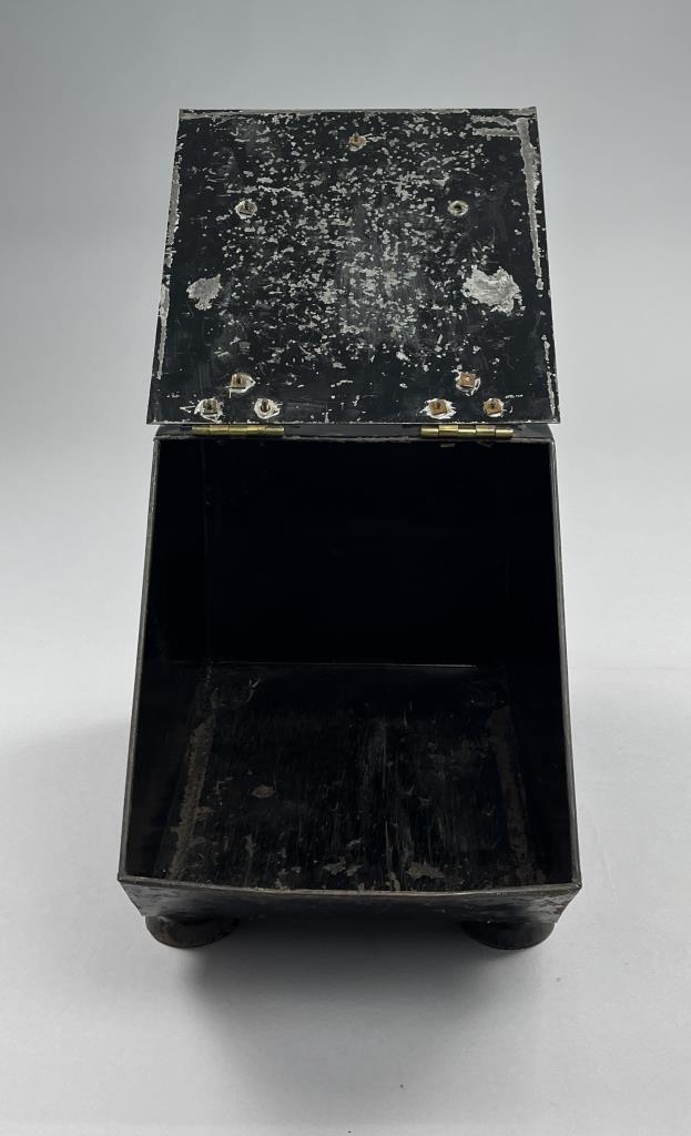 CONDITION: Surface scratches and areas of loss to paint, commensurate with age and use. Minor brake in one of the brass hinges as well as a missing river. Please see photos.