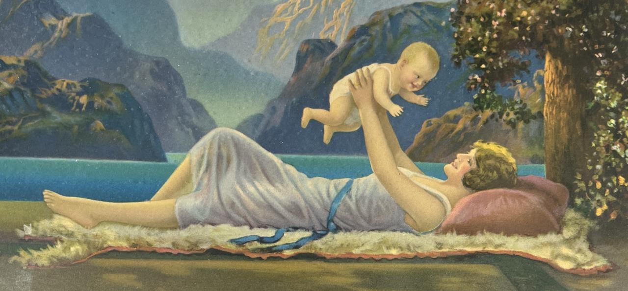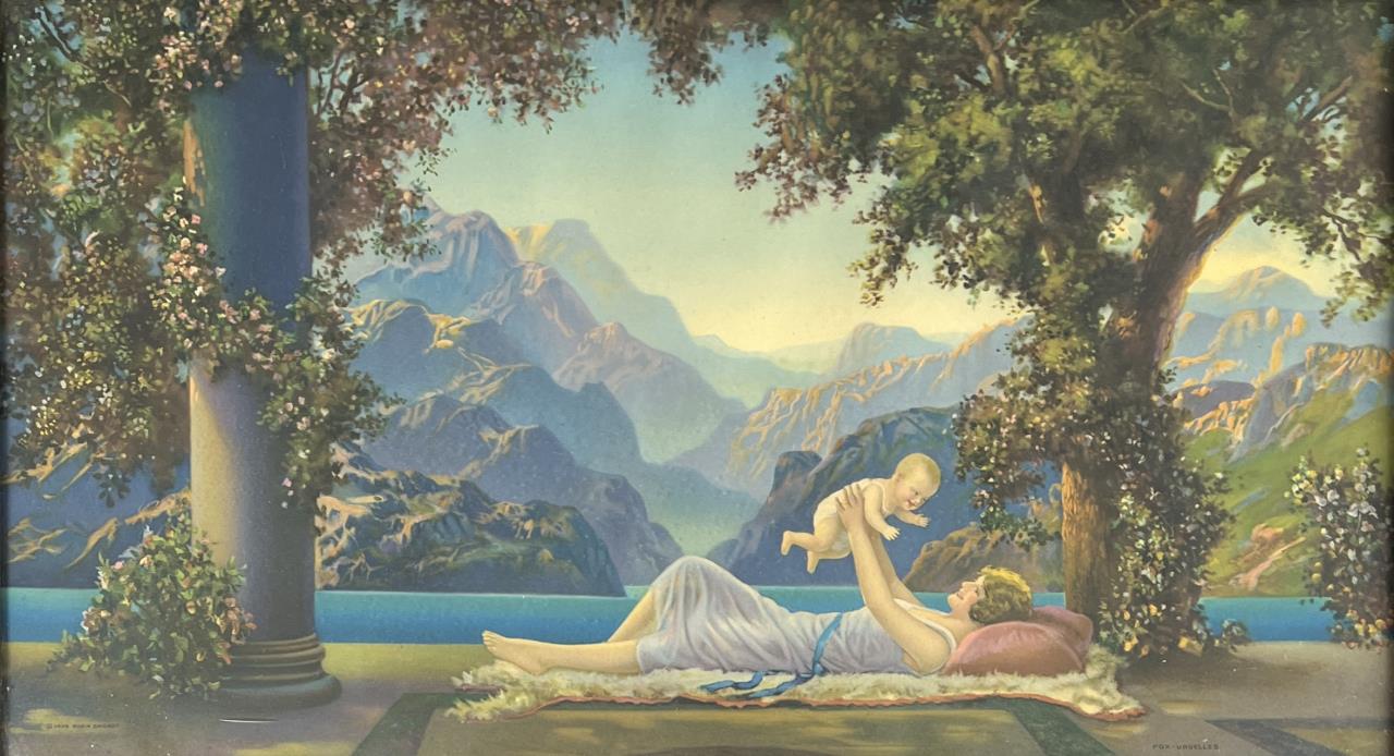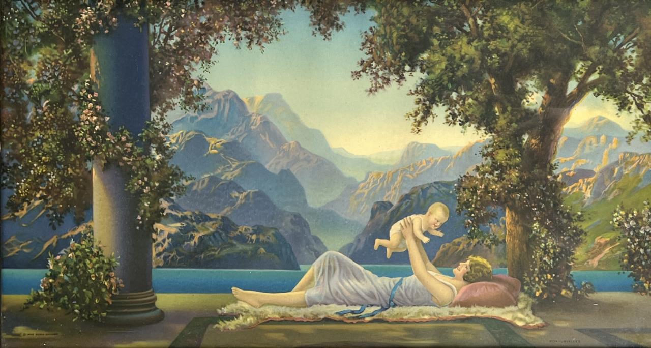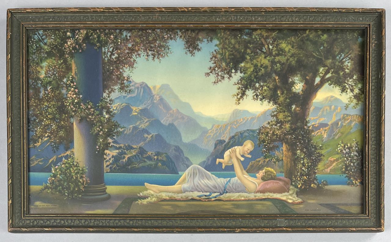 Robert Atkinson Fox (American, 1860-1935), “Love’s Paradise” (also known as “Mother & Child”) 1925 lithograph, in a period gilt and painted frame measuring 11-9/16″ x 19-5/8″.