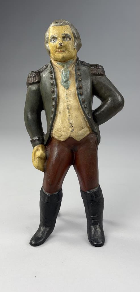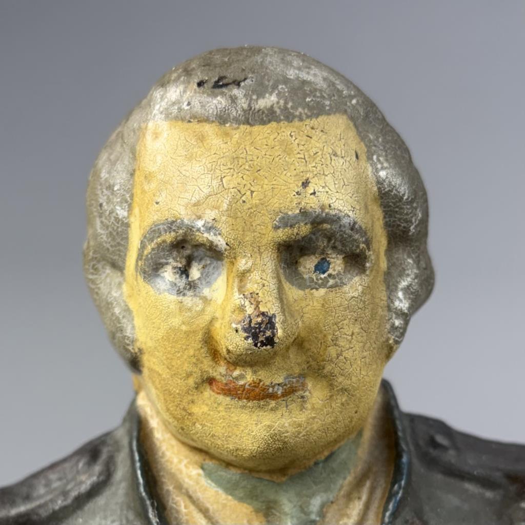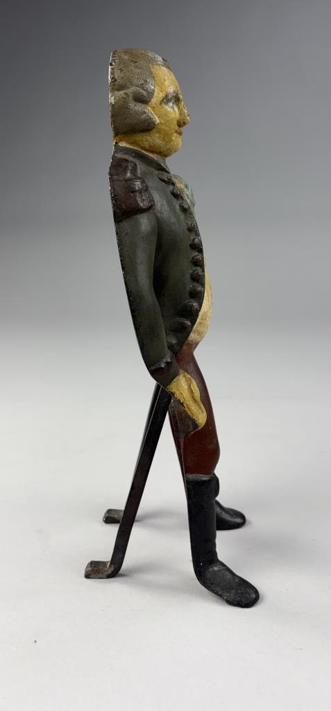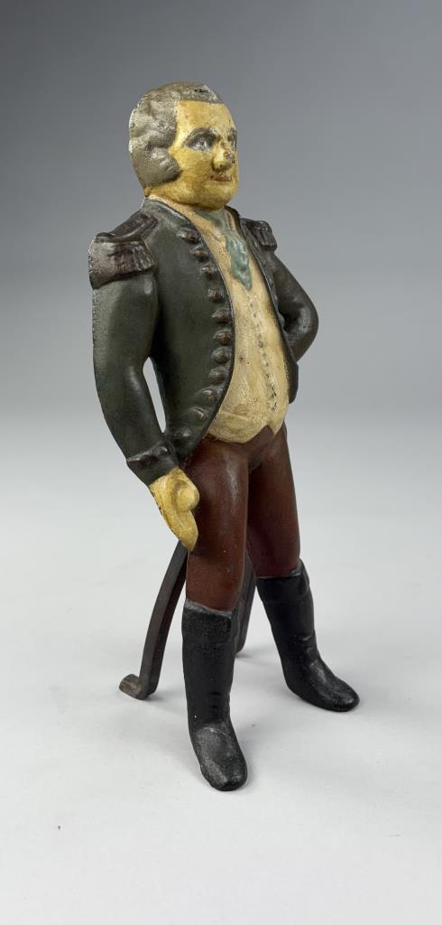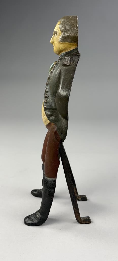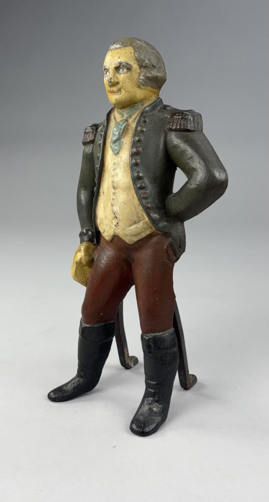 Antique George Washington figural single andiron, hand painted cast iron,14-1/2″ (H).