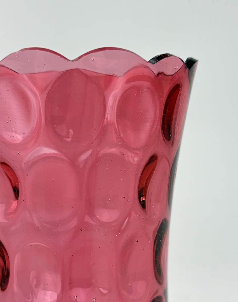 Antique Cranberry Thumbprint Glass Vase
