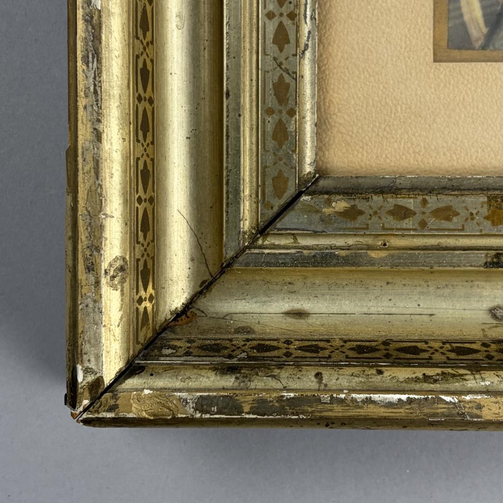 CONDITION: Scratching, flaking, staining, and discoloration to frame, please see photos.