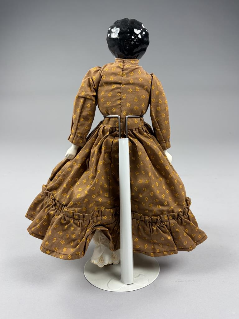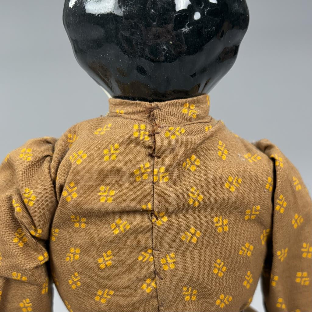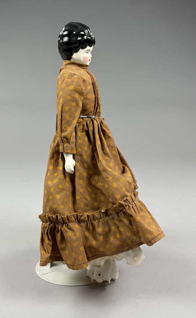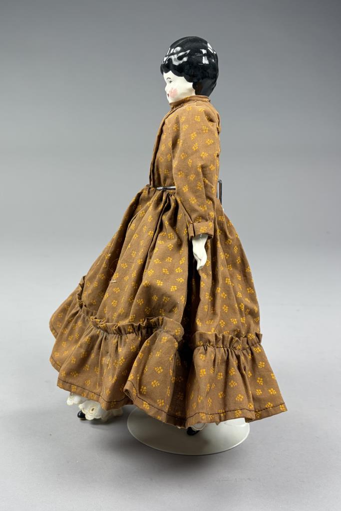 Victorian style china doll, cloth body with china arms and feet, 16″ (L).